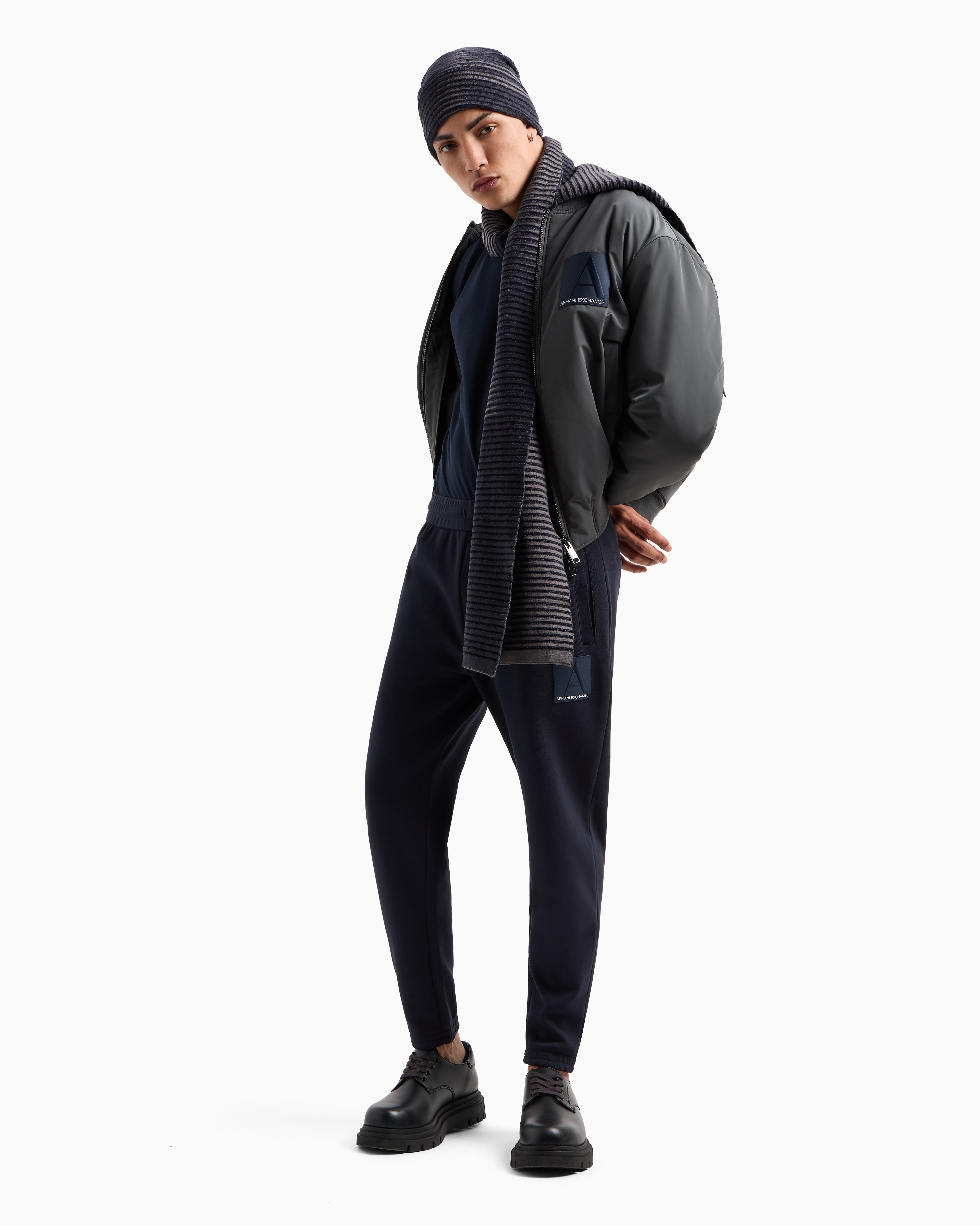 Make a statement with this cross-gender bomber jacket from the A Line Collection. Crafted from recycled nylon micro ripstop, it features zipped welt pockets and a satin logo patch on the chest, offering a perfect blend of style, durability, and sustainability