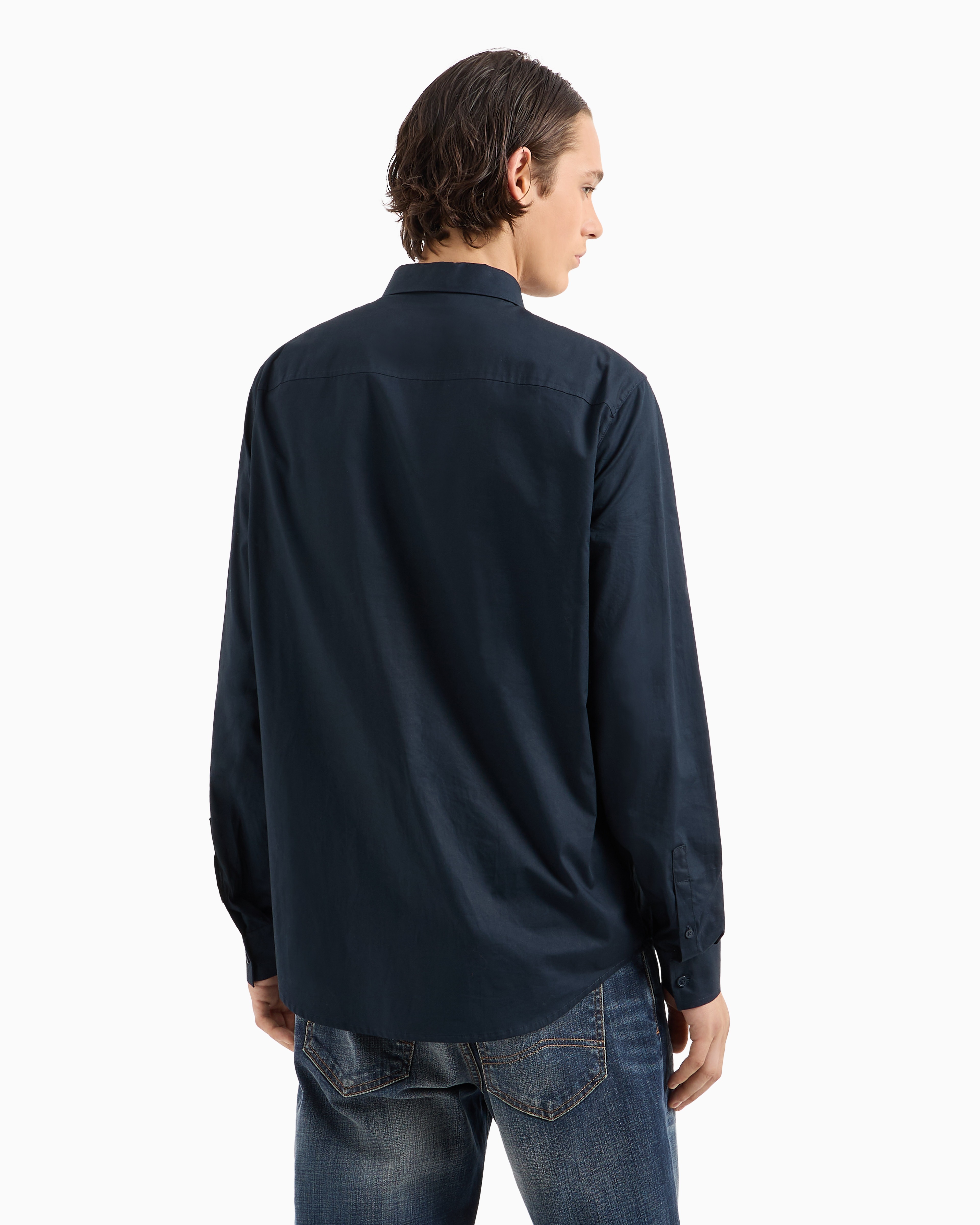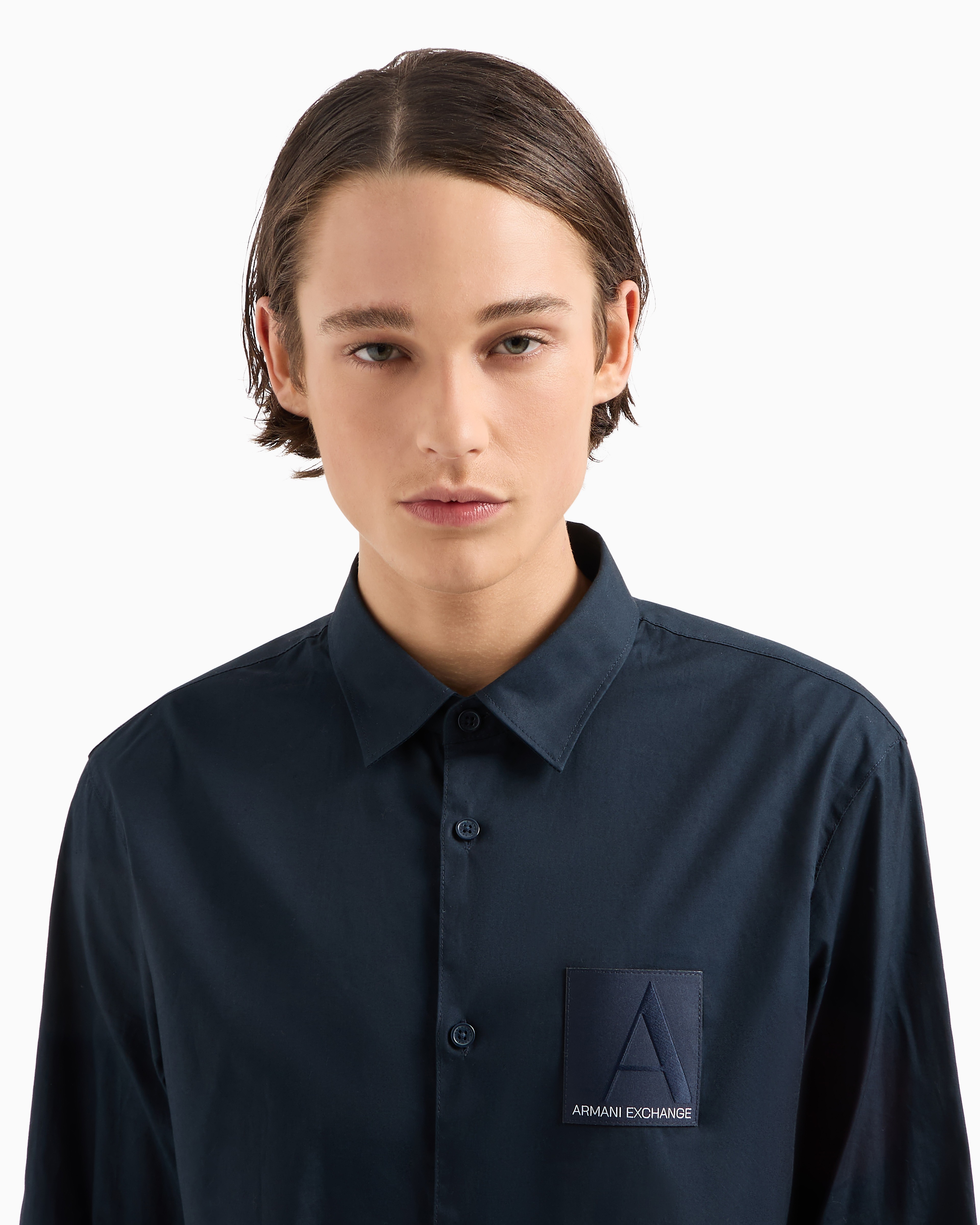 Experience versatile style with this cross-gender shirt from the A Line Collection. Crafted from organic cotton poplin, it features a sleek satin logo patch on the chest, combining sustainability with a contemporary, minimalist design.