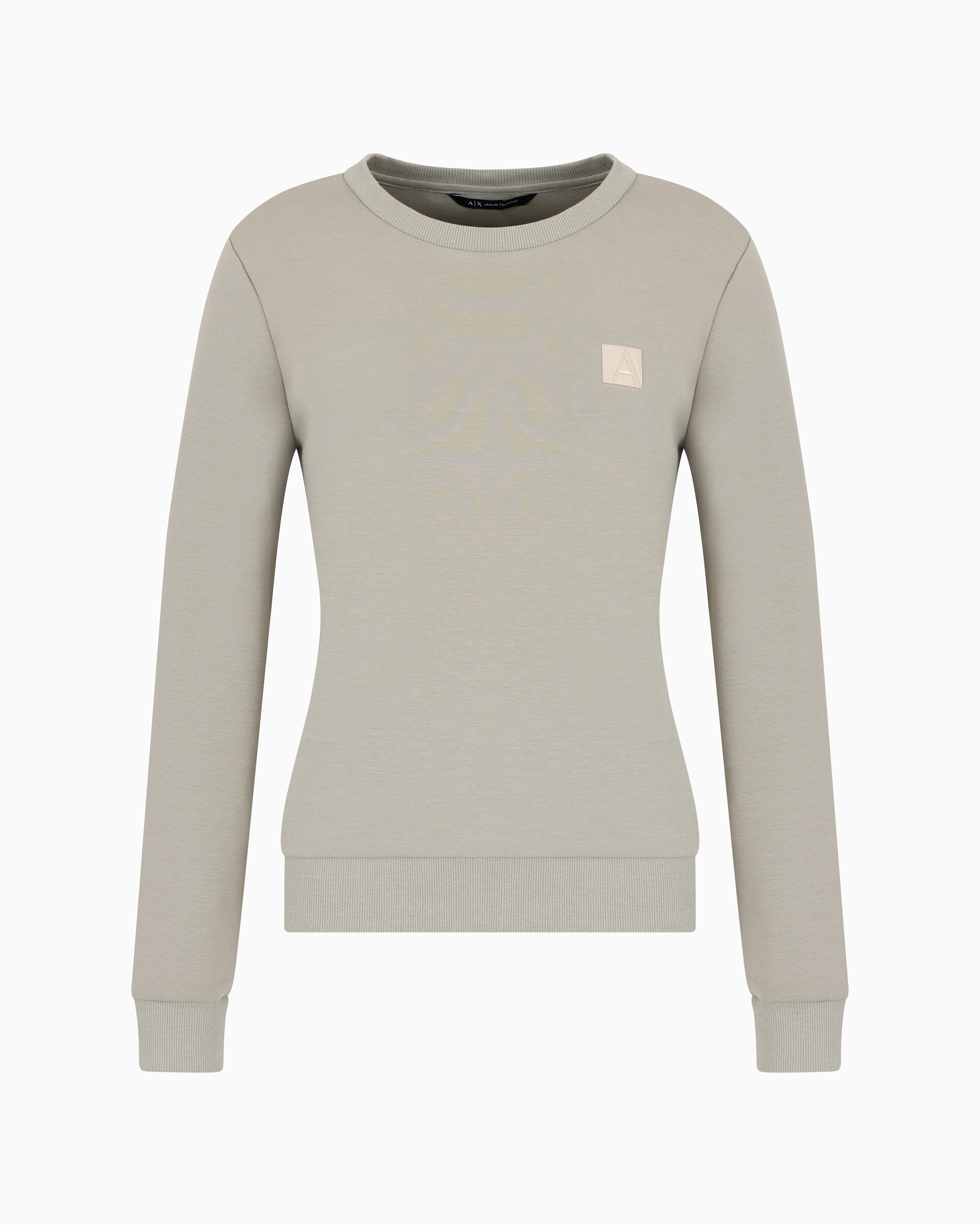The A-Line sweatshirt by Armani Exchange, designed with a cross-gender appeal, is crafted from poly cotton stretch double knit for a comfortable fit. Featuring a logo patch in the center, this sweatshirt combines modern style with versatile functionality, making it a standout piece for any casual wardrobe