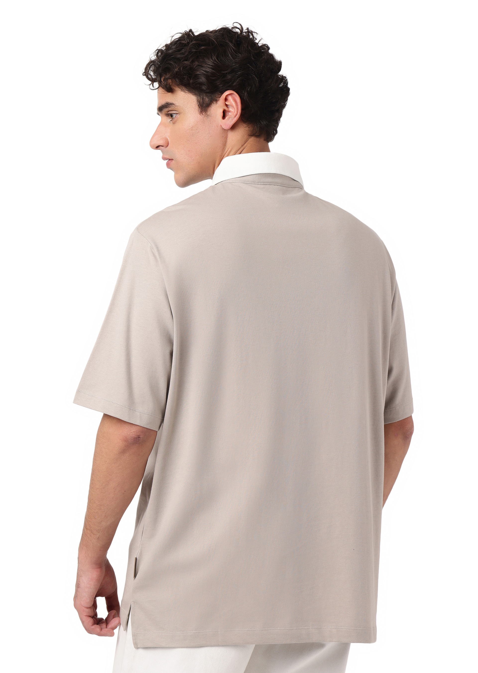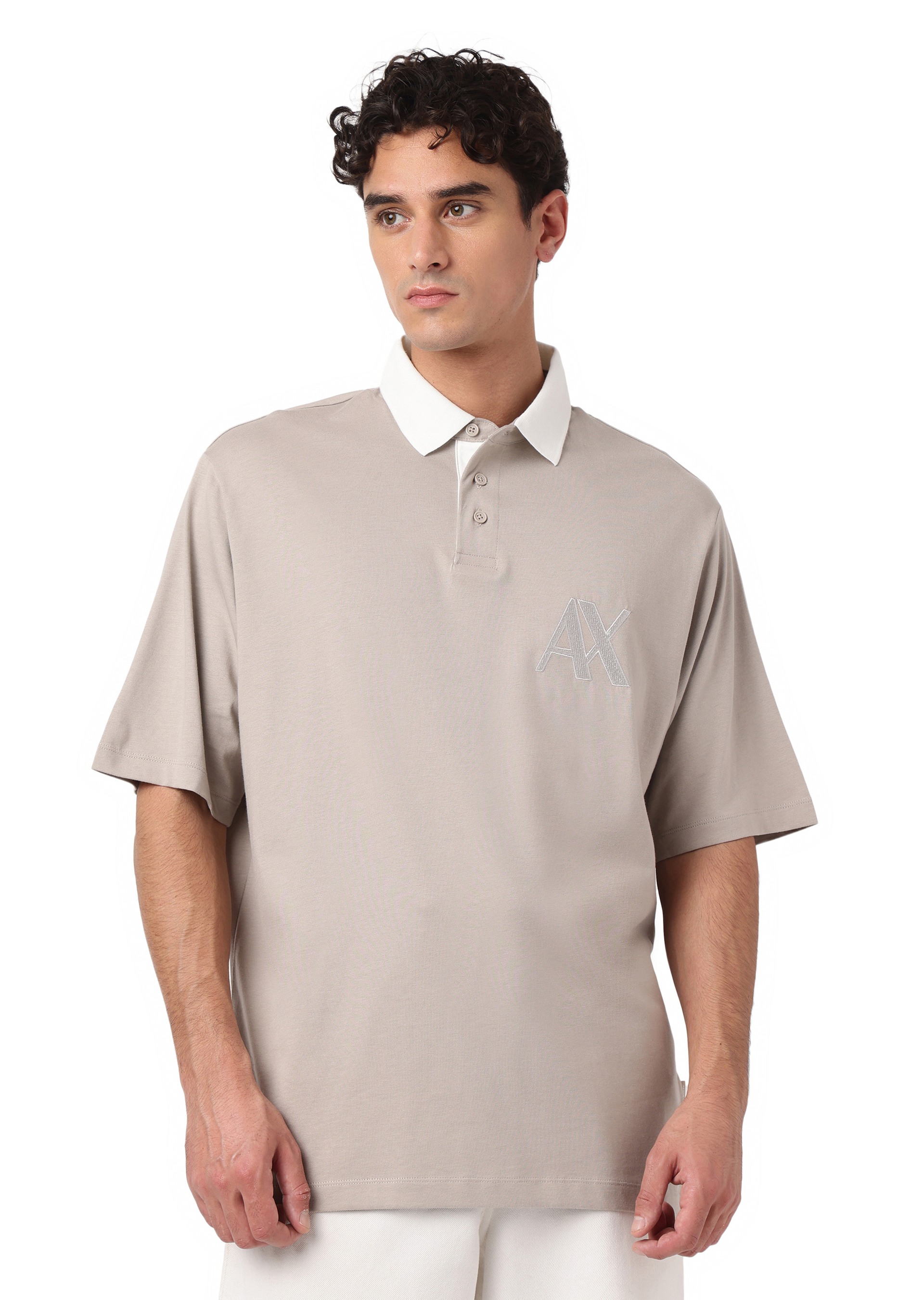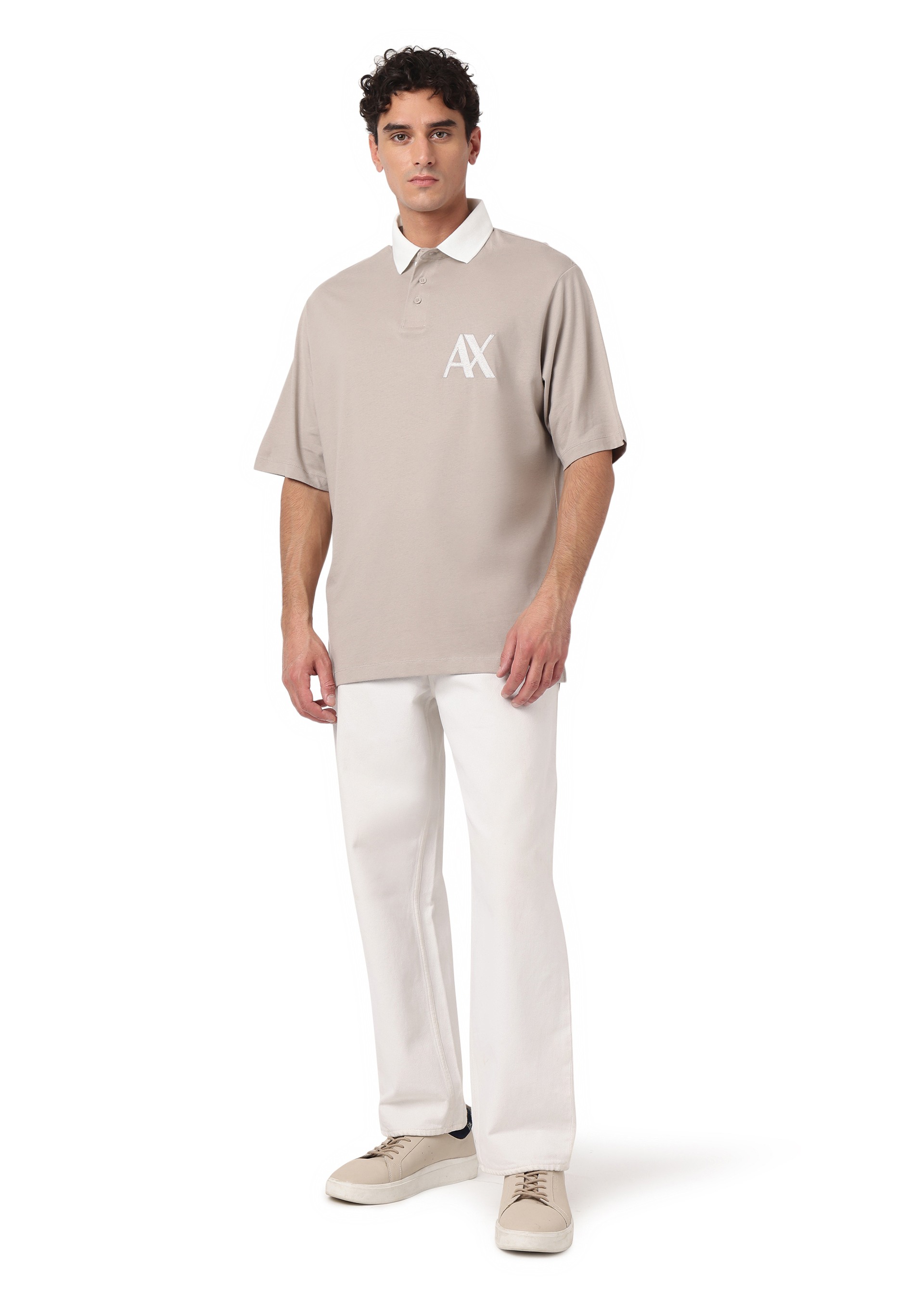 - Heavy Cotton Jersey, Ribbed Collar in Contrast Colour, Embroidered Logo on Chest