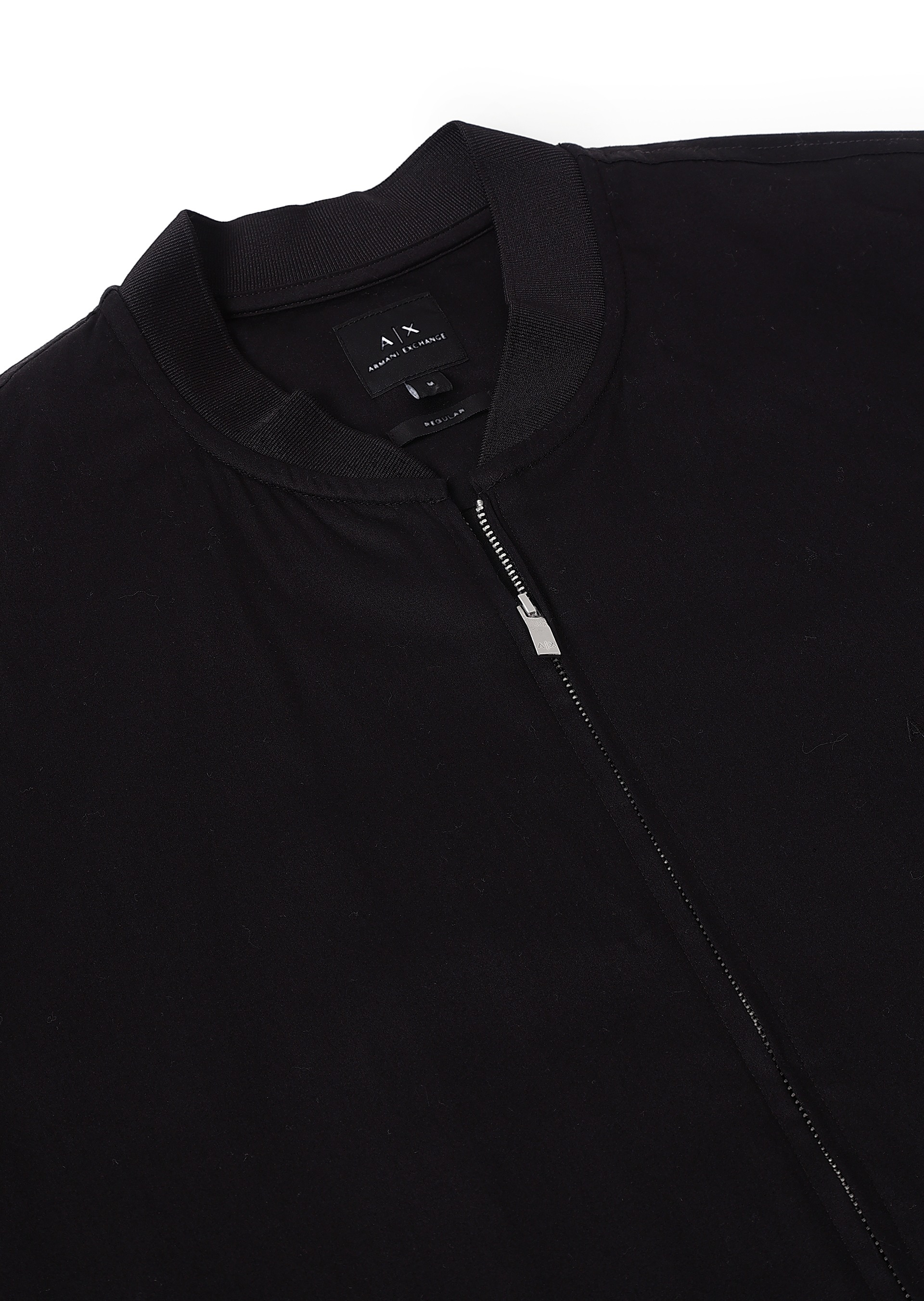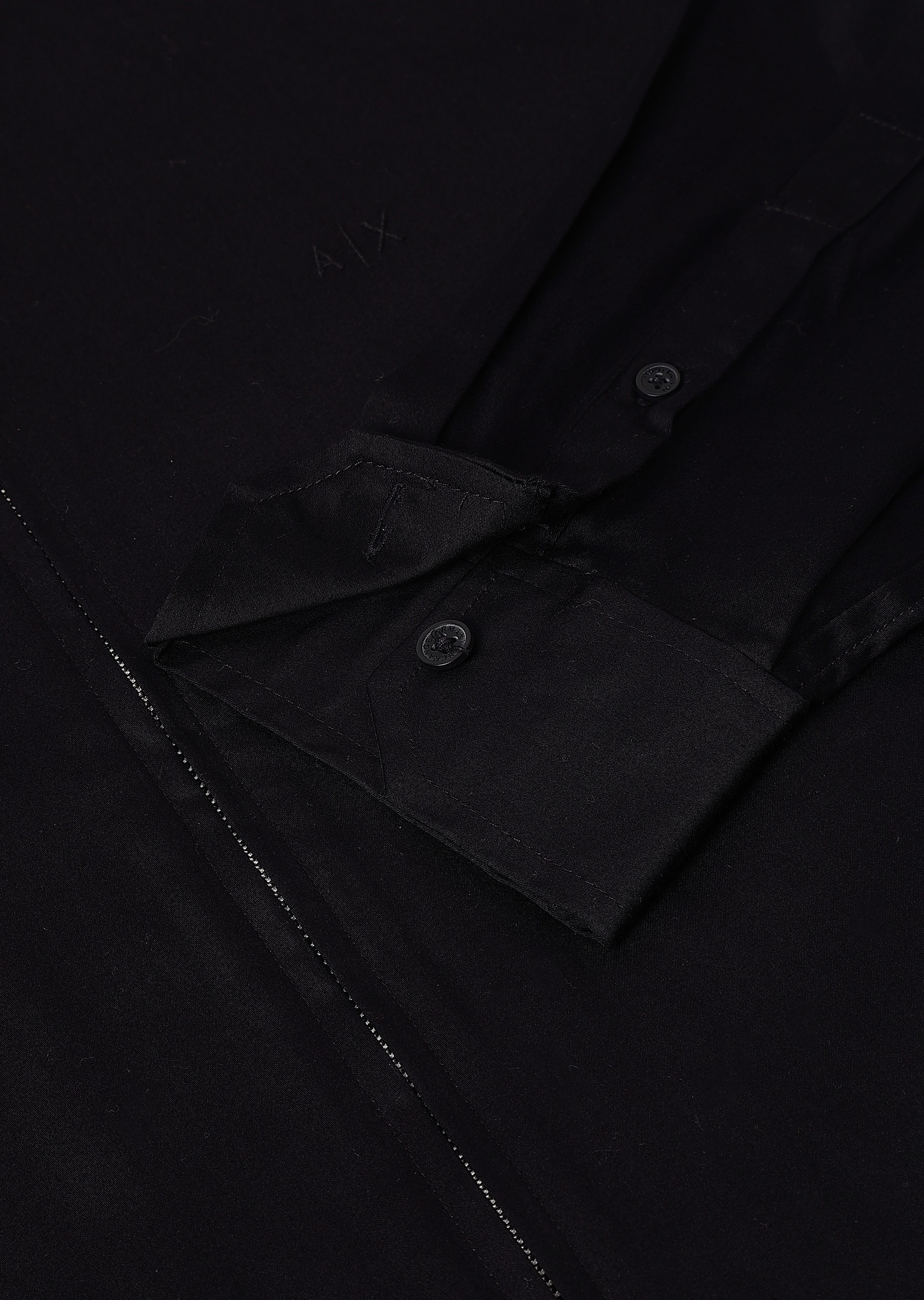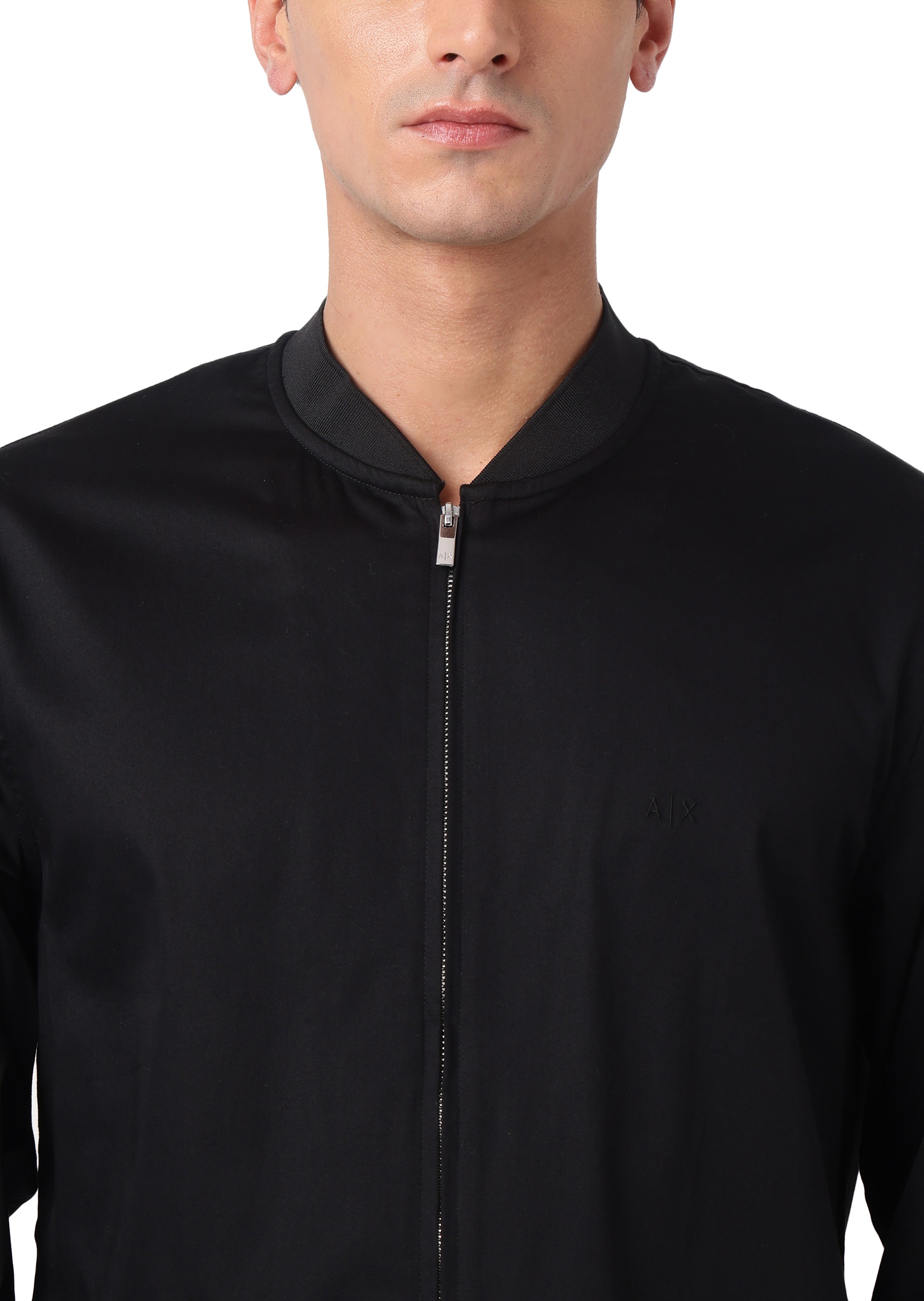 Step up your style with this full-zip shirt from the Armani Classics collection. Crafted from stretch cotton satin, it features a bomberneck and an embroidered logo on the chest, offering a modern blend of sophistication and casual elegance.