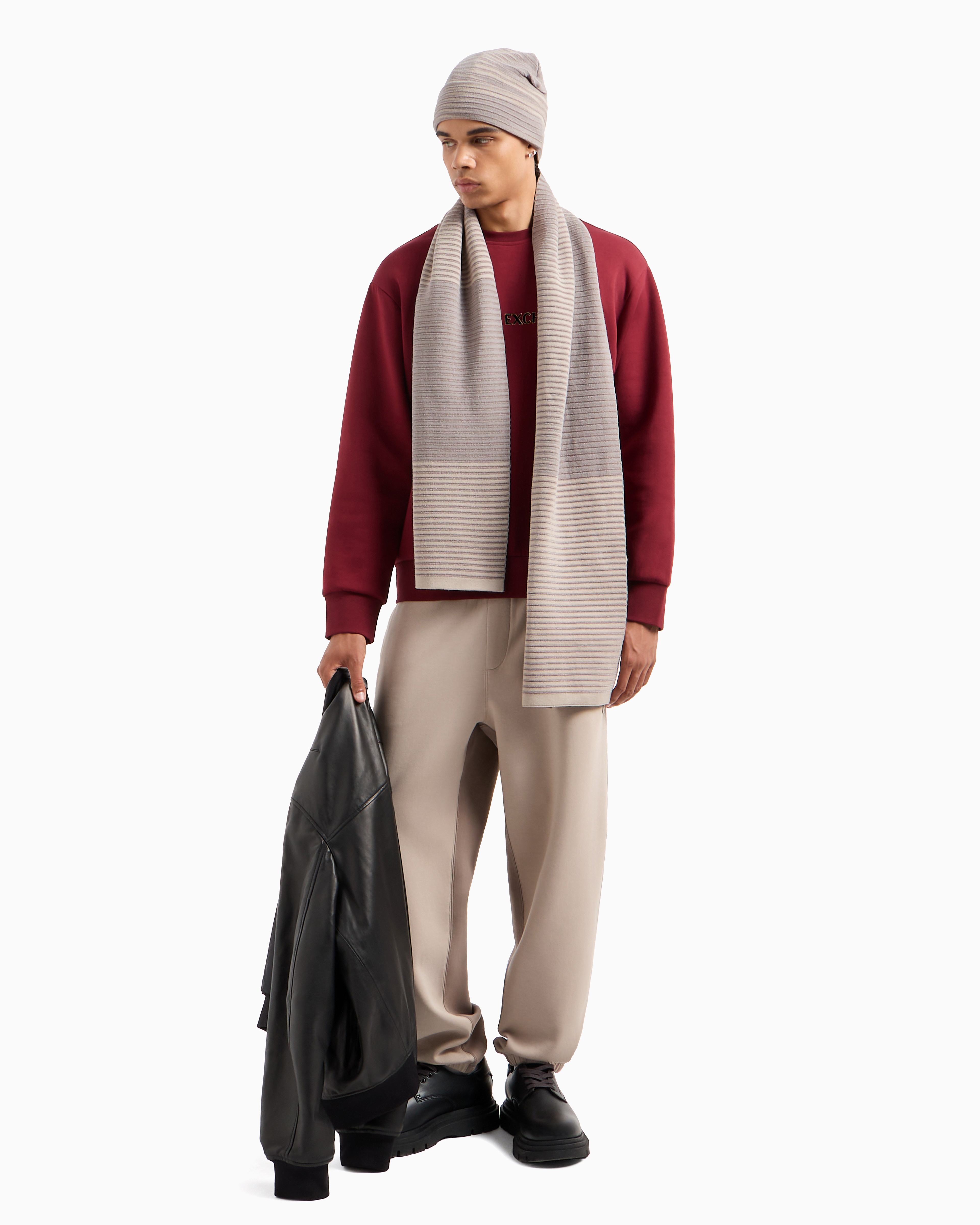 Elevate your casual style with this sweatshirt from the Armani Classics Collection. Crafted from a stretch poly-cotton blend, it features a bold flock and foil logo script, offering a sleek and modern design perfect for any occasion.