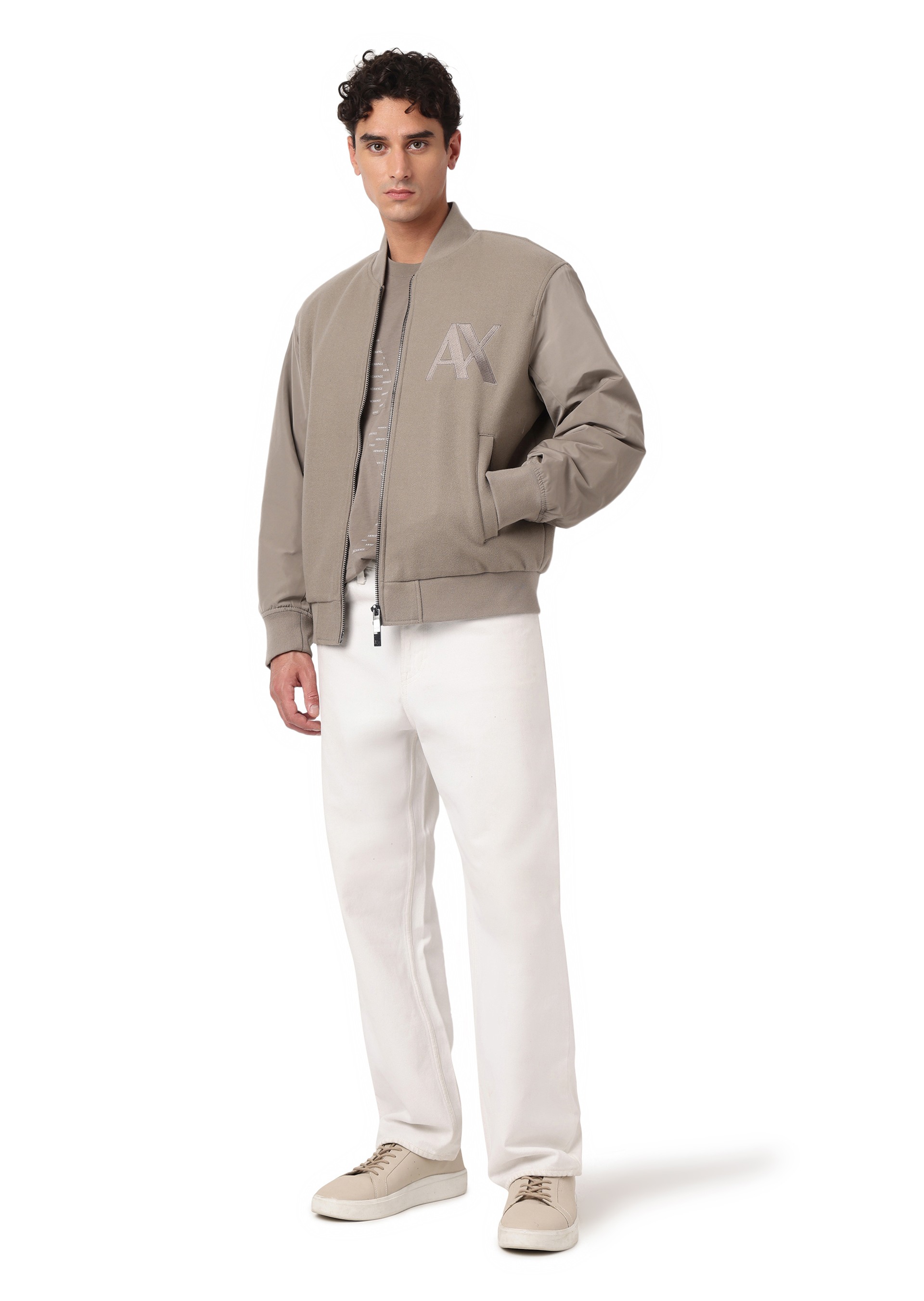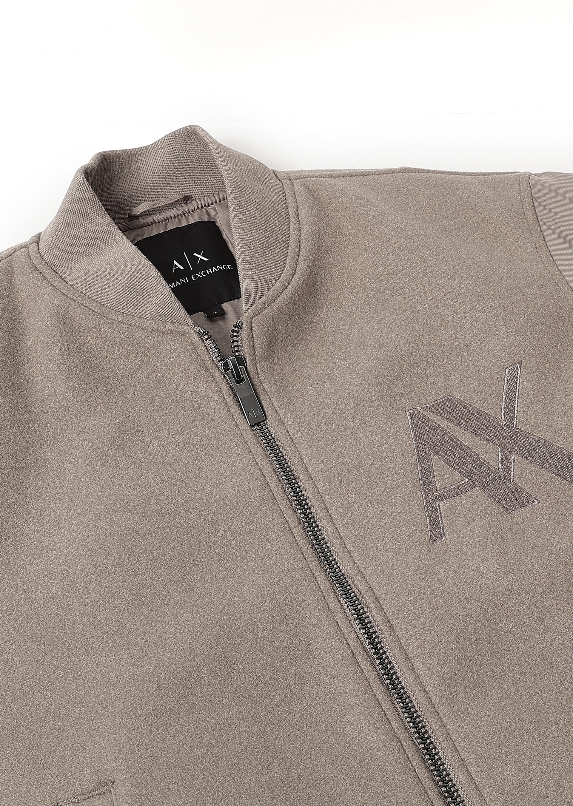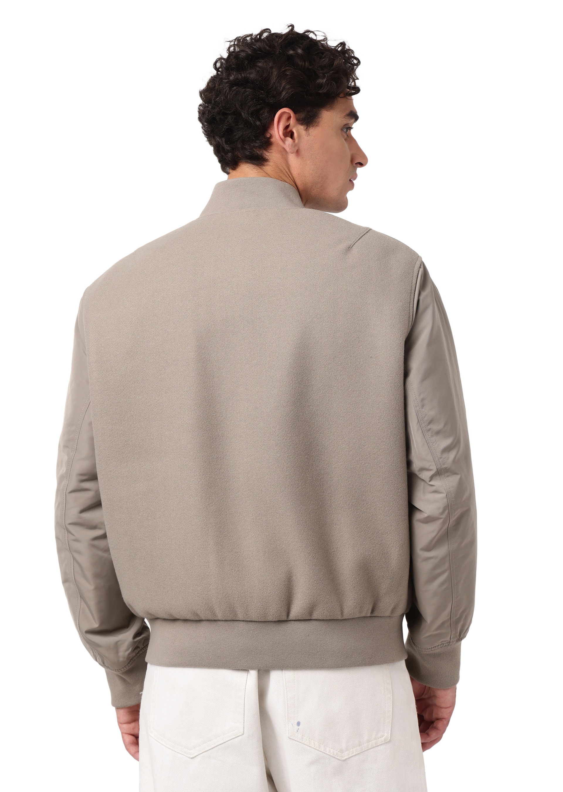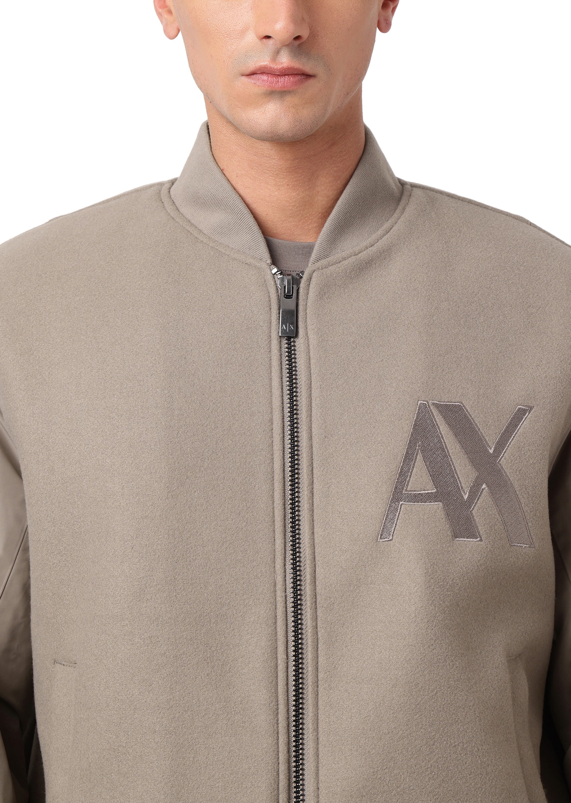 - Padded Bomber, Wool Mix, Nylon Viscose on Sleeves, Embroidered Logo on Chest and Back Neck