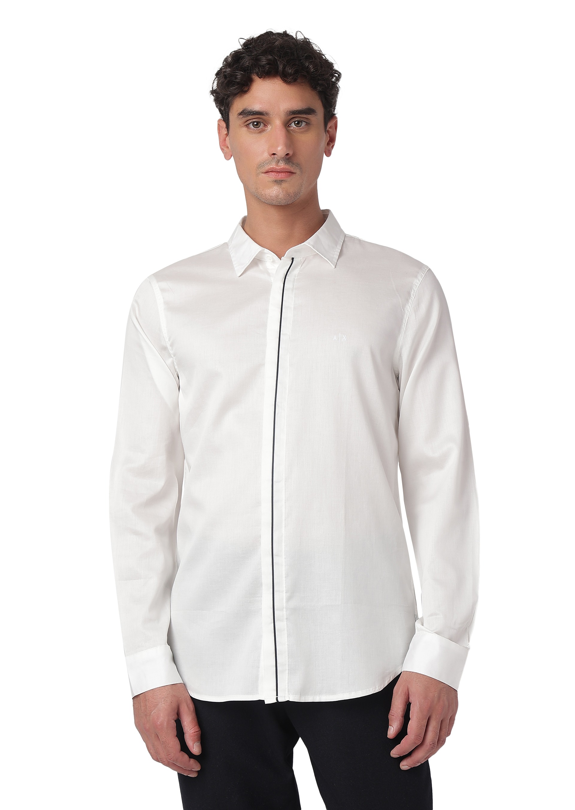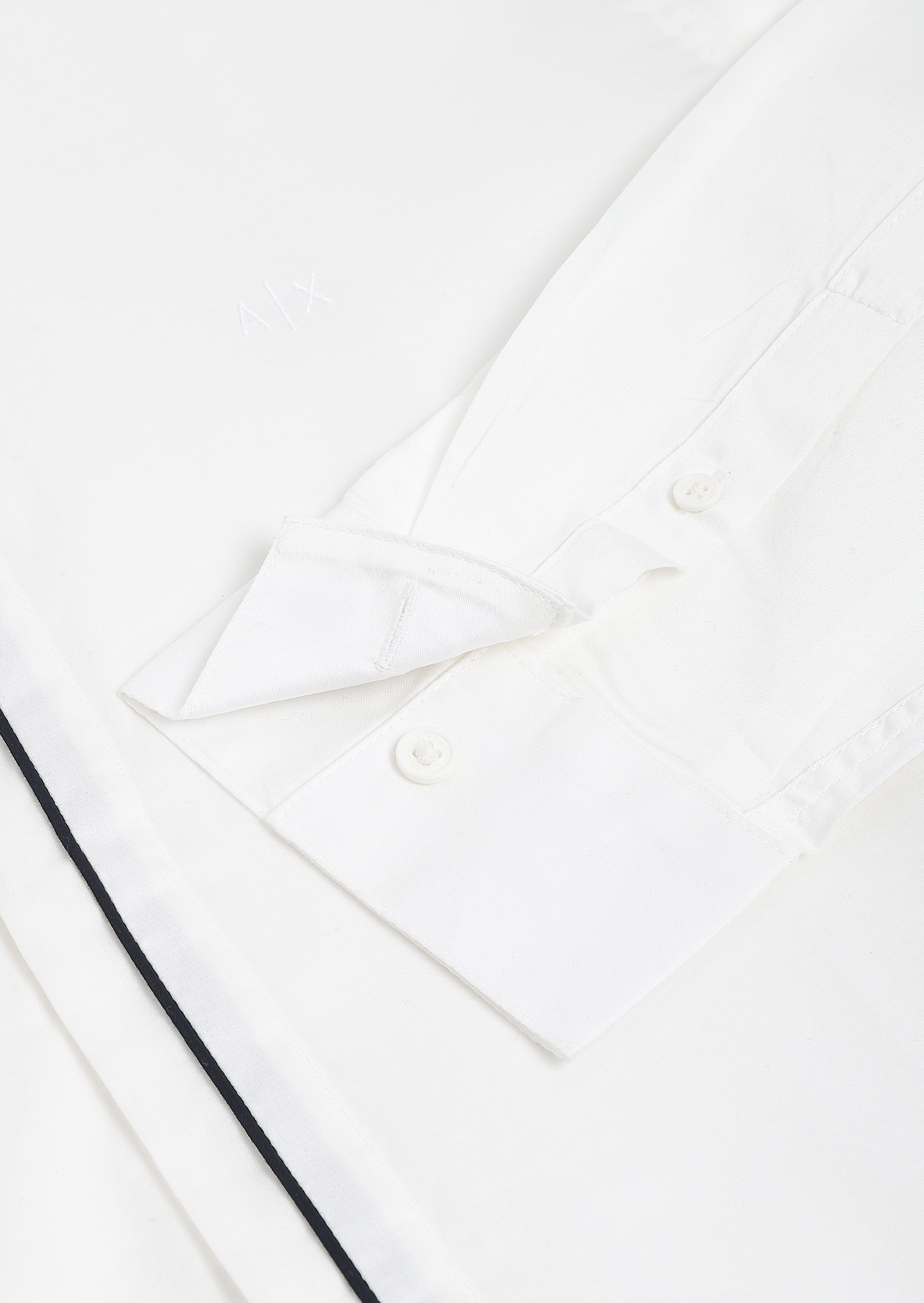 Add a touch of sophistication to your wardrobe with this shirt from the Armani Classics Collection. Crafted from smooth cotton satin, it features a bold flock logo on the chest, blending luxury with modern style for any occasion.