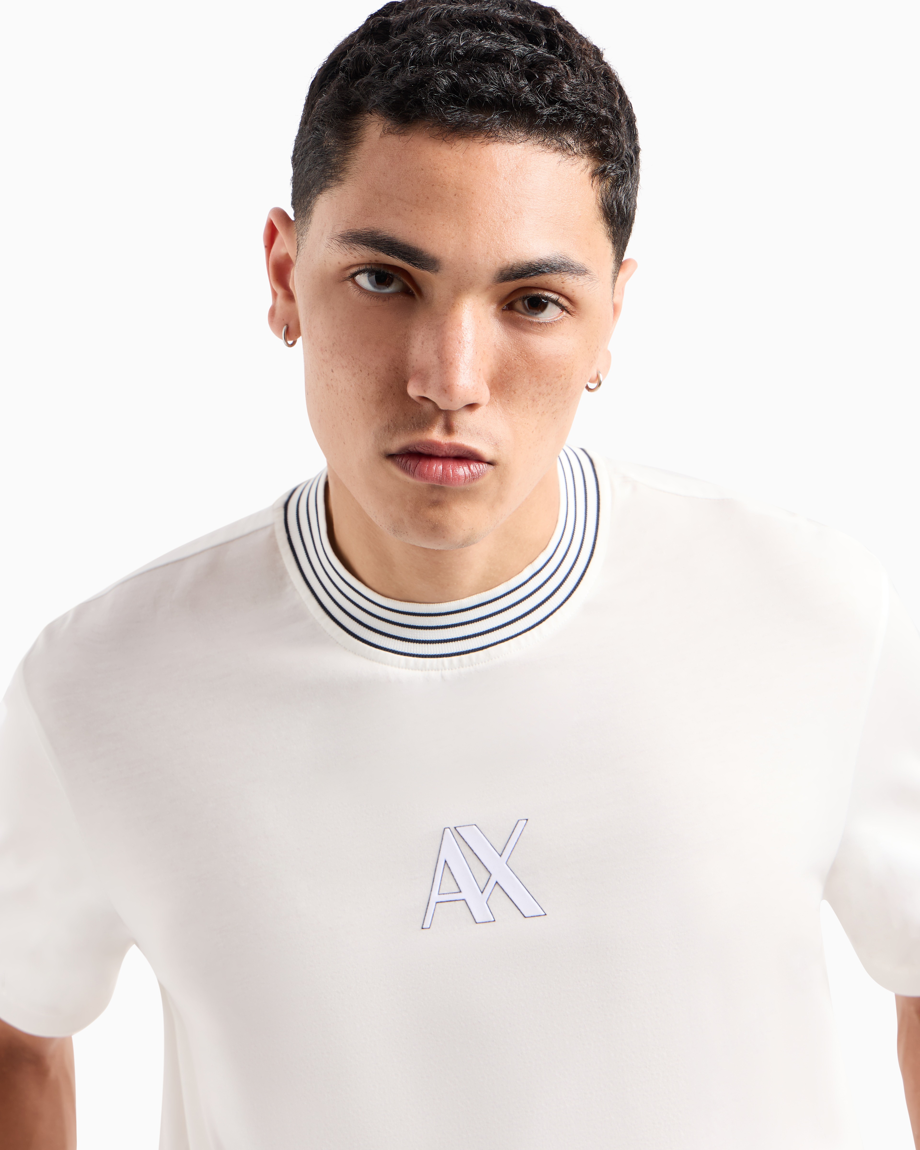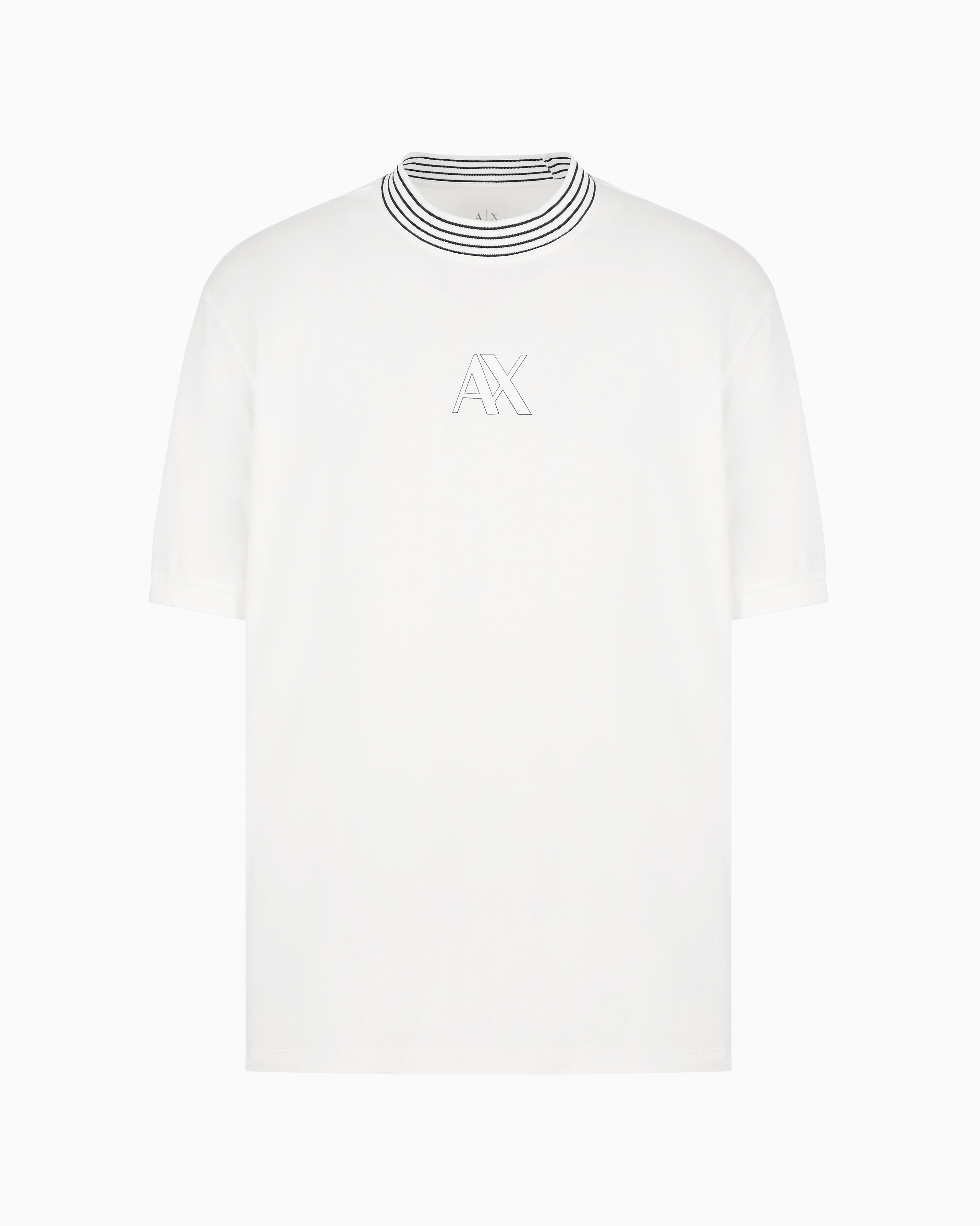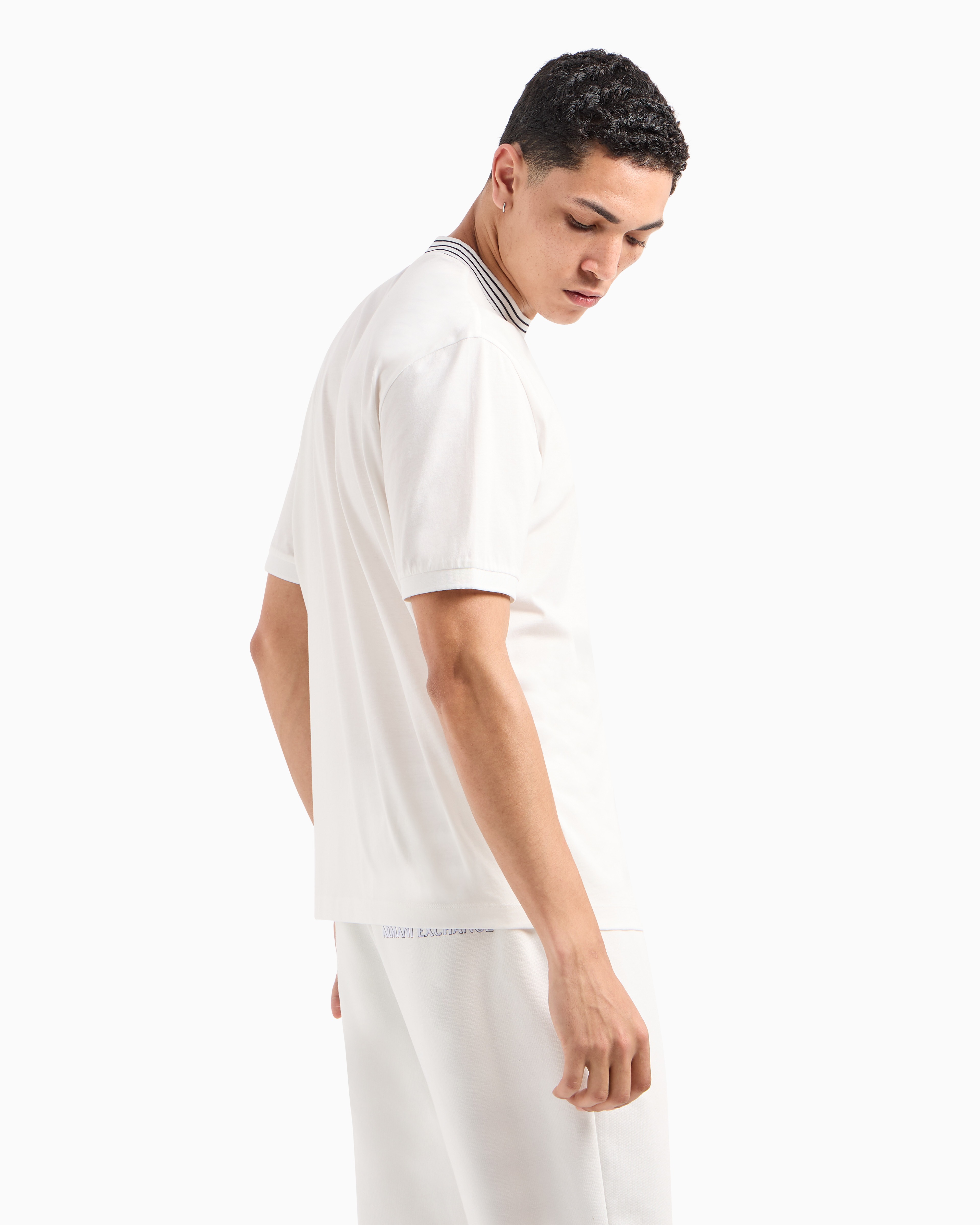 Elevate your wardrobe with this t-shirt from the Armani Classics collection. Crafted from mercerized cotton jersey, it features a flock and plastisol logo, complemented by contrast tipping on the collar, offering a refined and stylish look perfect for any occasion.
