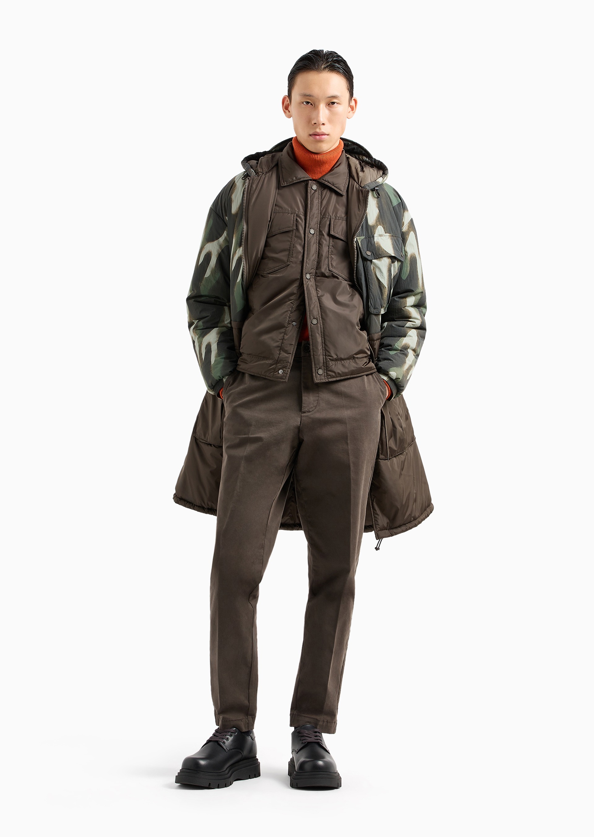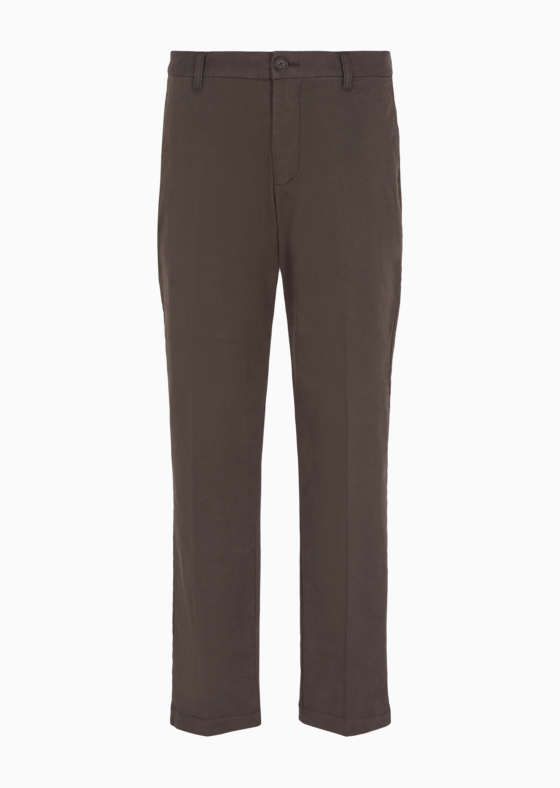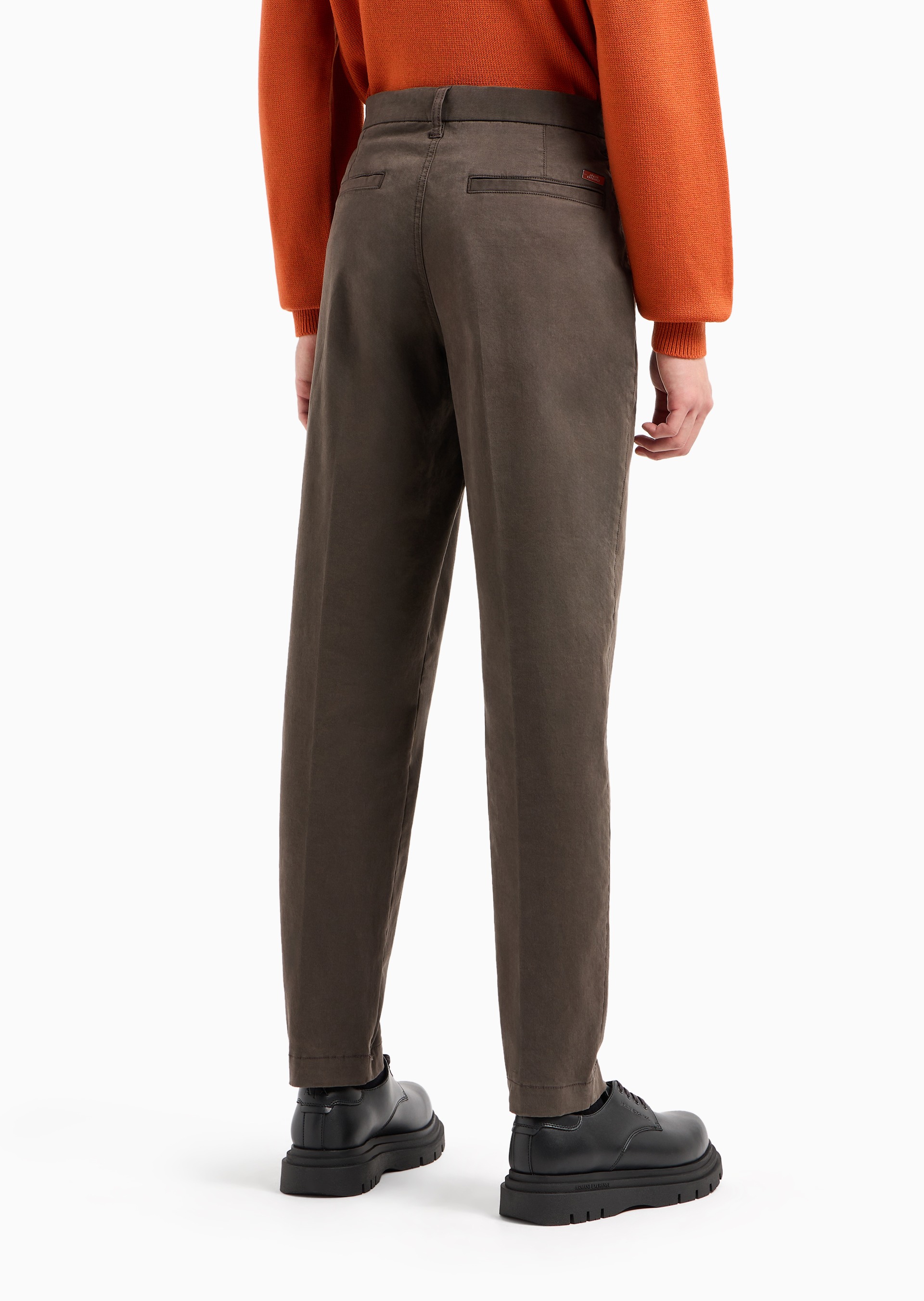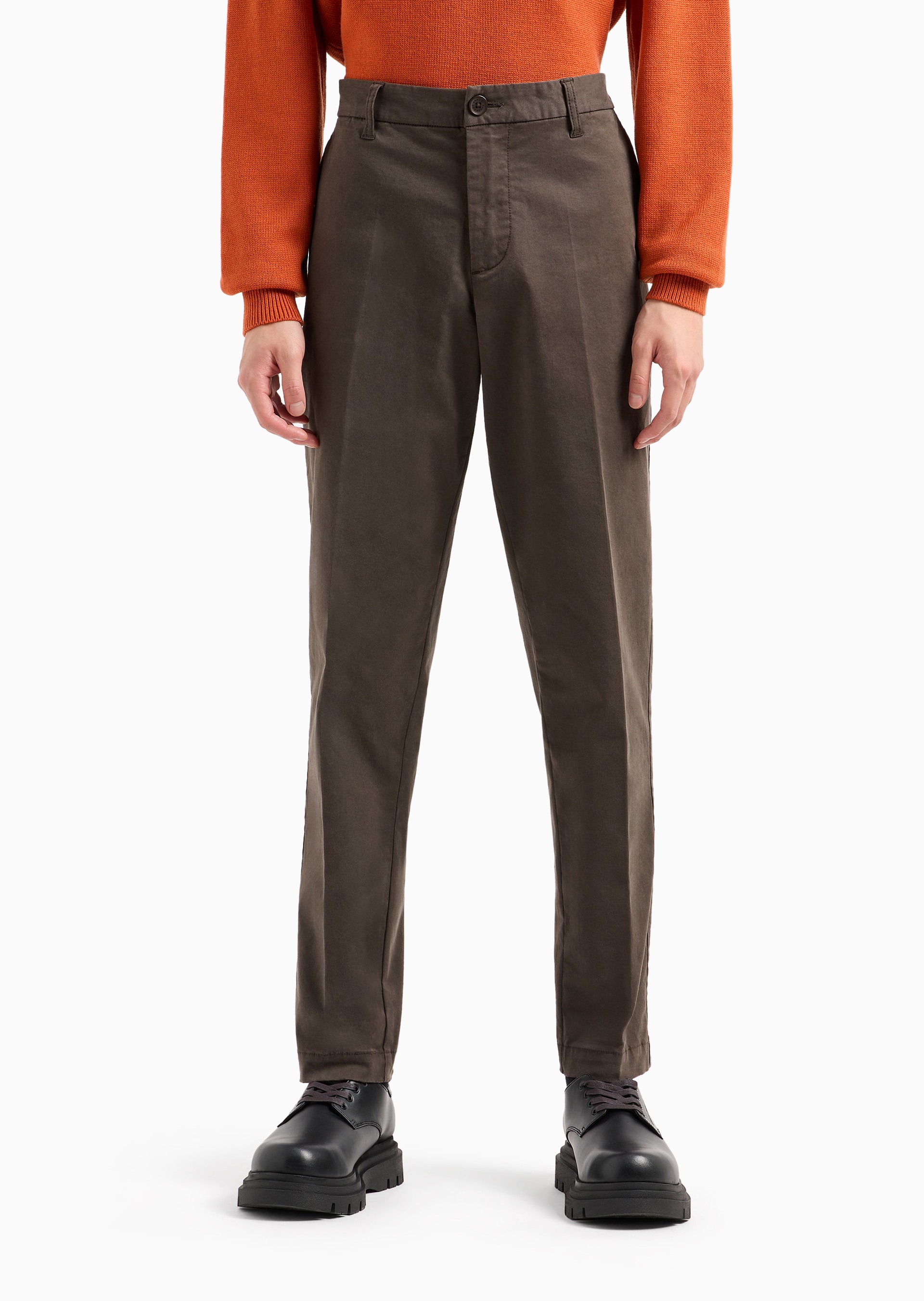 Upgrade your wardrobe with these chino pants from the Armani Classics Collection. Crafted from stretch cotton twill for a soft touch, they feature classic pleats and are finished with a metal logo plate on the back, offering a perfect blend of comfort and timeless style.