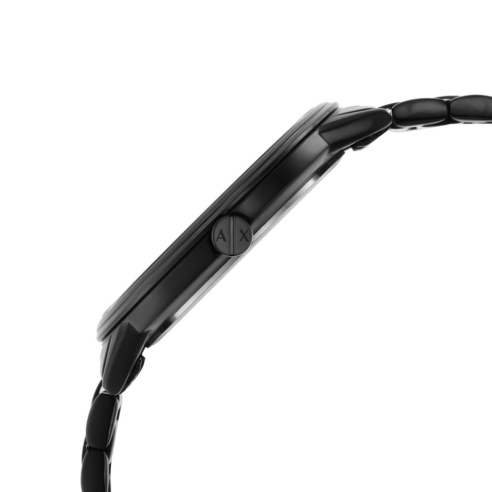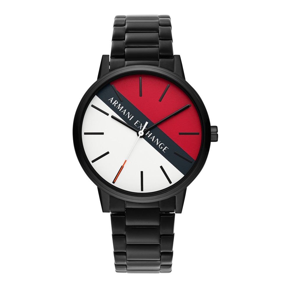 Uncomplicated and simple pieces are a favorite amongst all. Being an epitome of simplistic and minimalist design, this is exactly what makes this men’s analog watch from the House of Armani Exchange stand out. This timepiece features a logo-printed multi-color dial with stick indices and three-hand movement. The black stainless steel 3-link bracelet, which is fastened by a two pusher fold-over clasp, adds more dimension and facet to the piece.