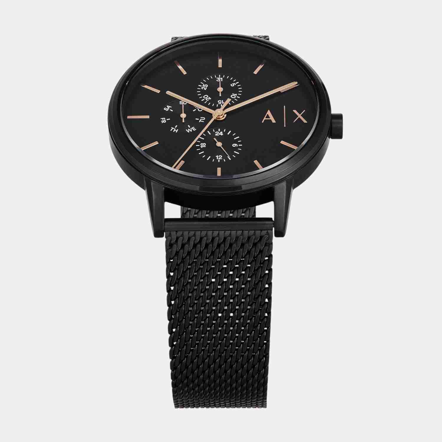 Men Quartz Black Dial Chronograph Stainless Steel Watch AX7162SET