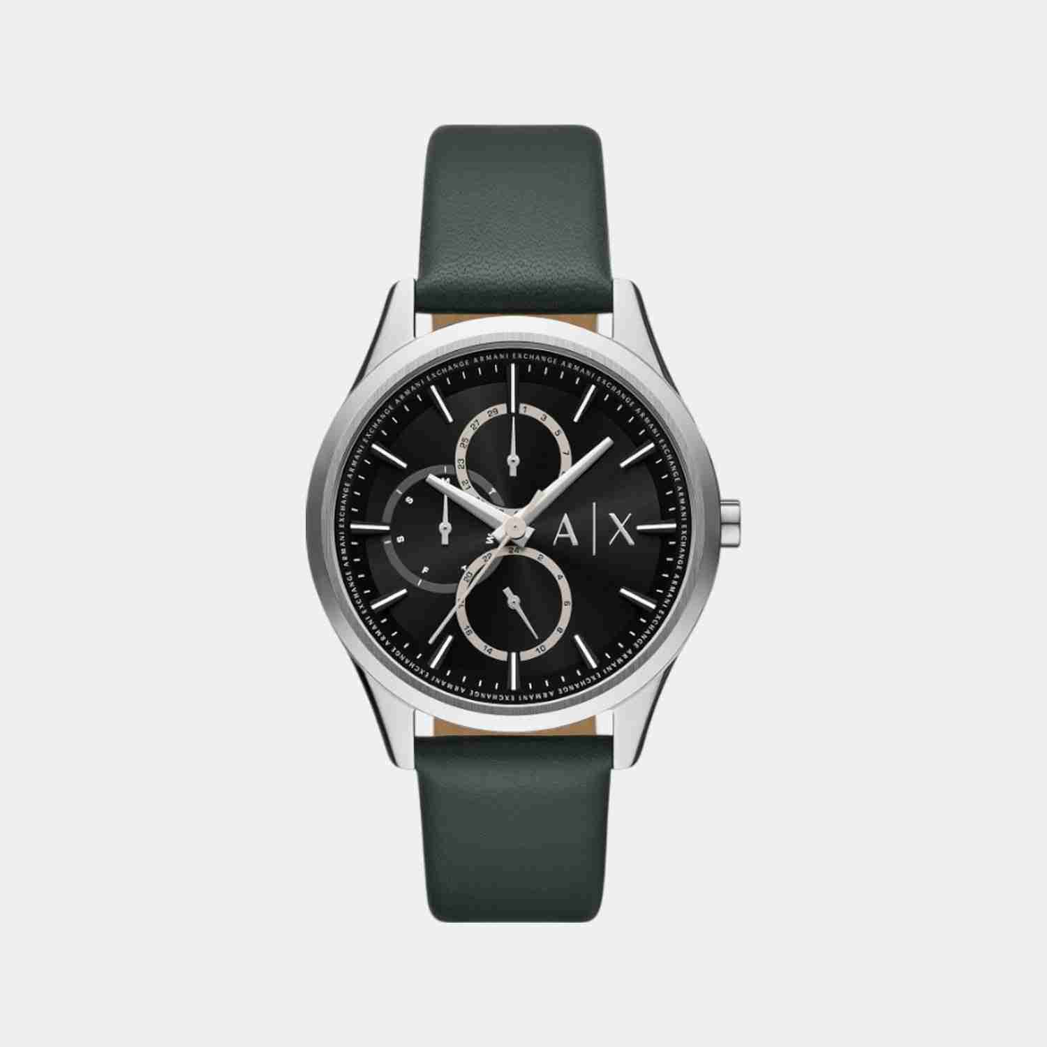 Na Men Quartz Black Dial Chronograph Leather Watch AX1883