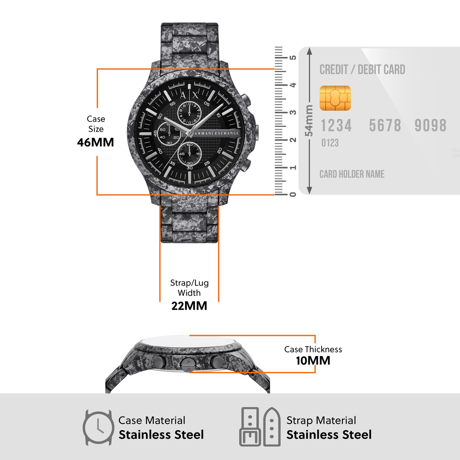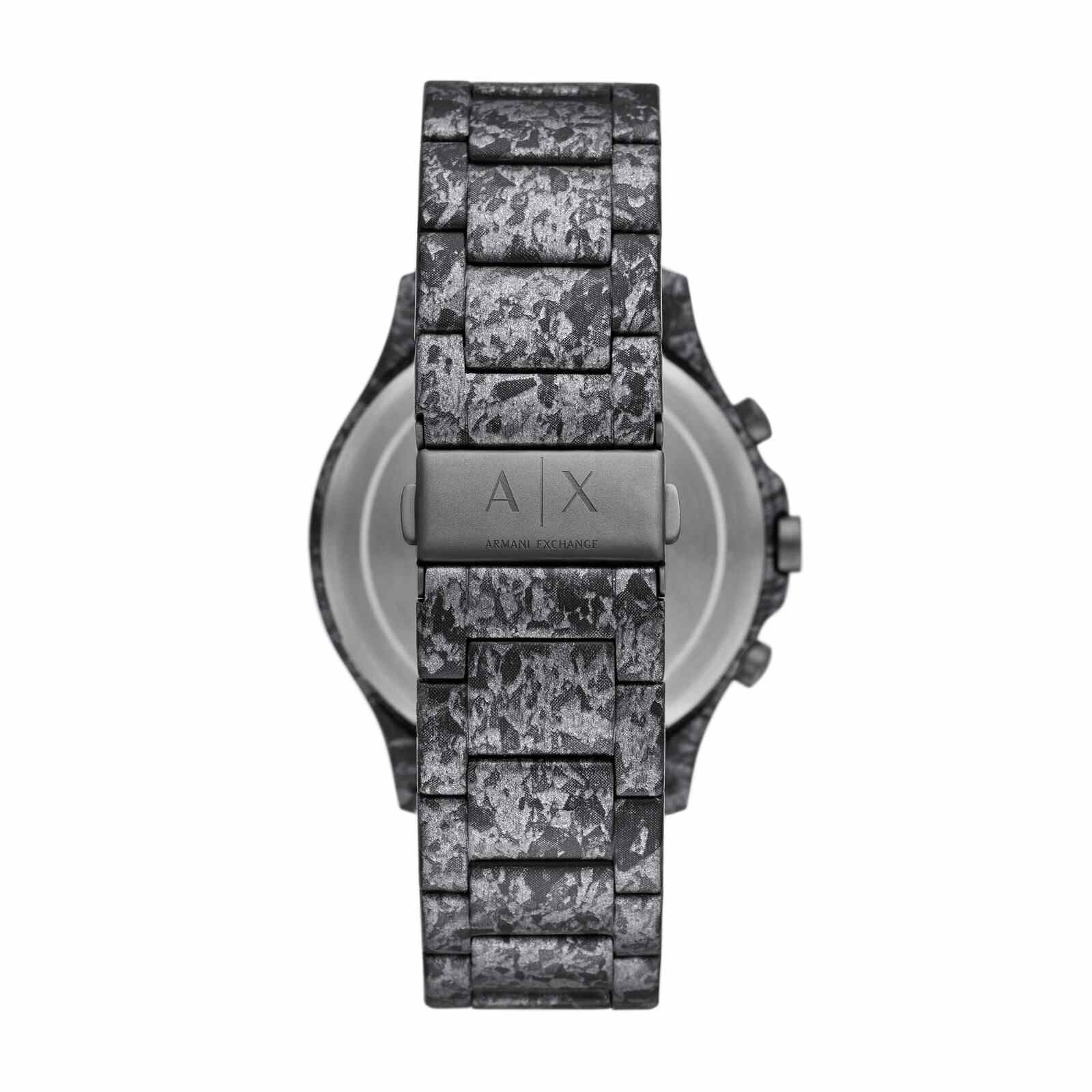 Armani Exchange's 46mm watch features a gray matte dial, chronograph movement and heathered gunmetal stainless steel bracelet.