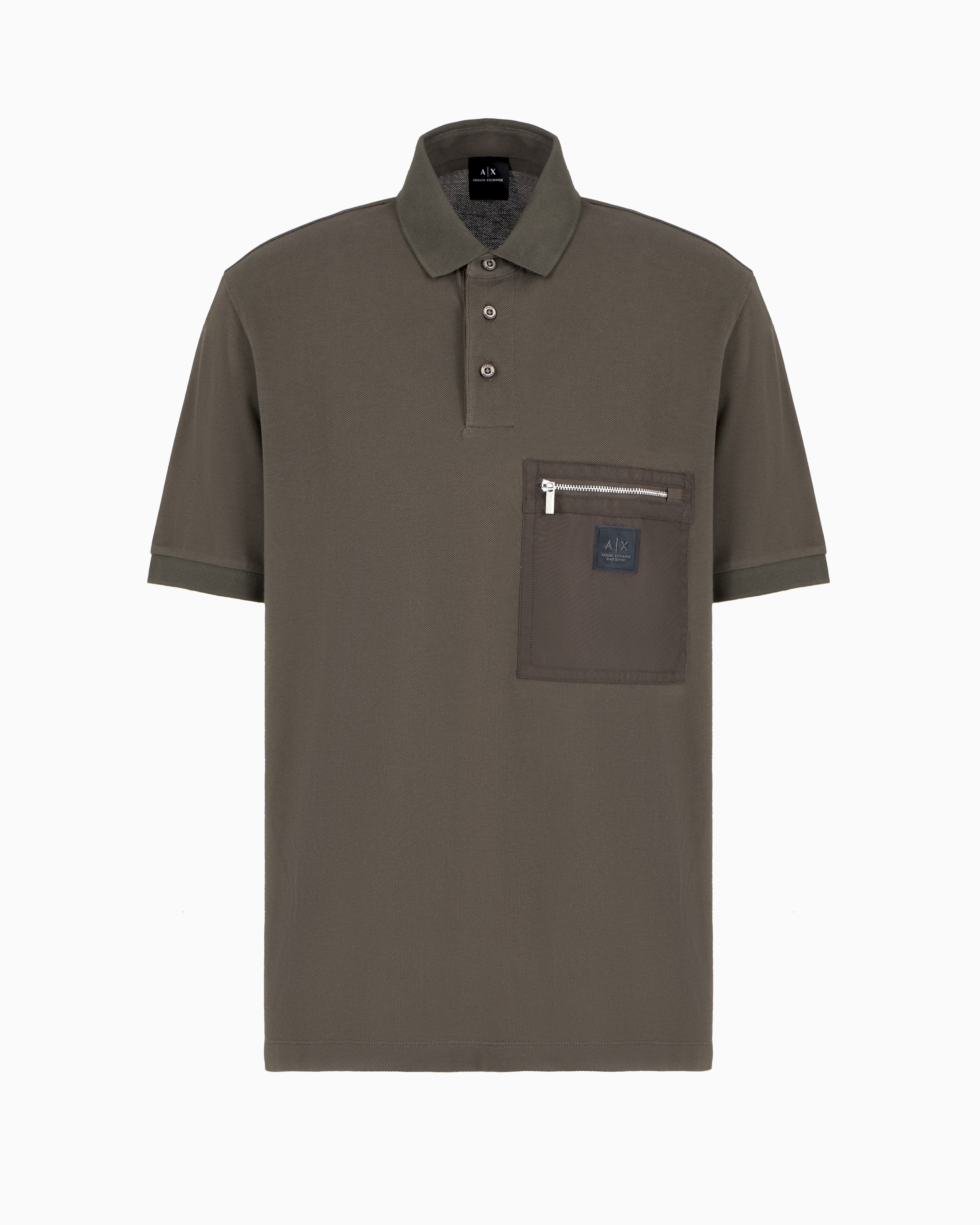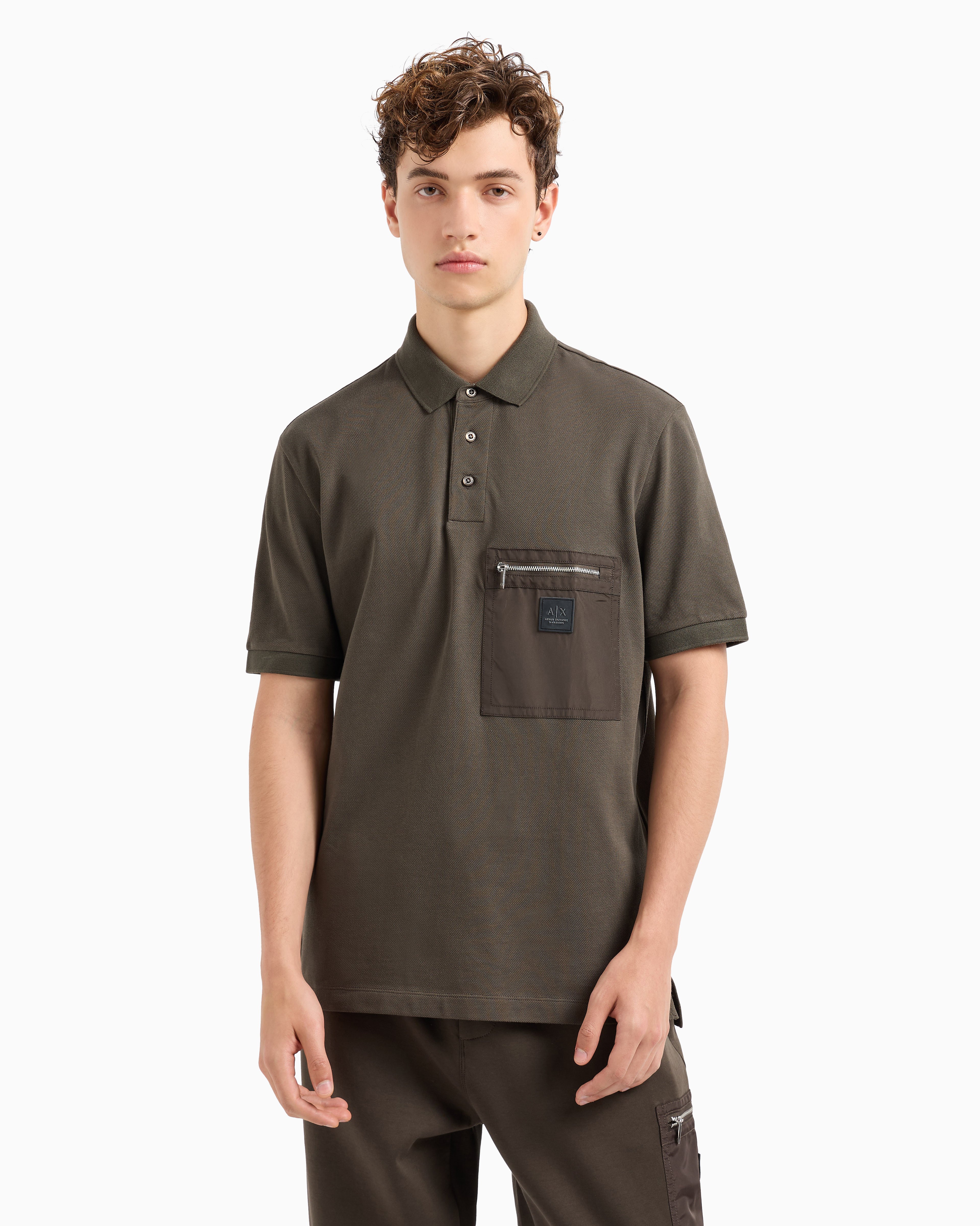 Step into contemporary style with this cross-gender polo from the Black Edition Collection. Crafted from pique cotton, it features a zipped patch pocket with a silicon logo patch, combining modern design with functional detailing for a sleek, versatile look.