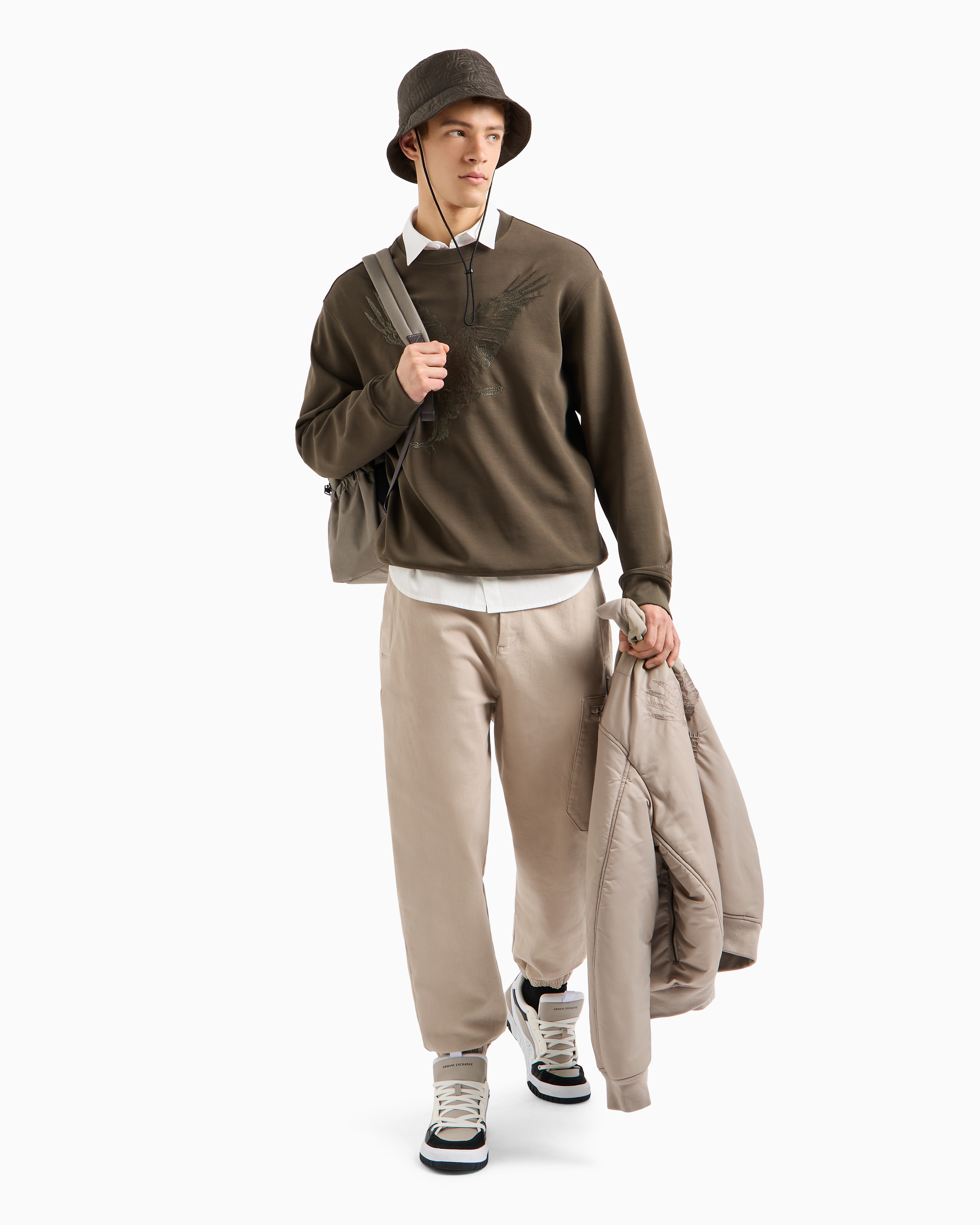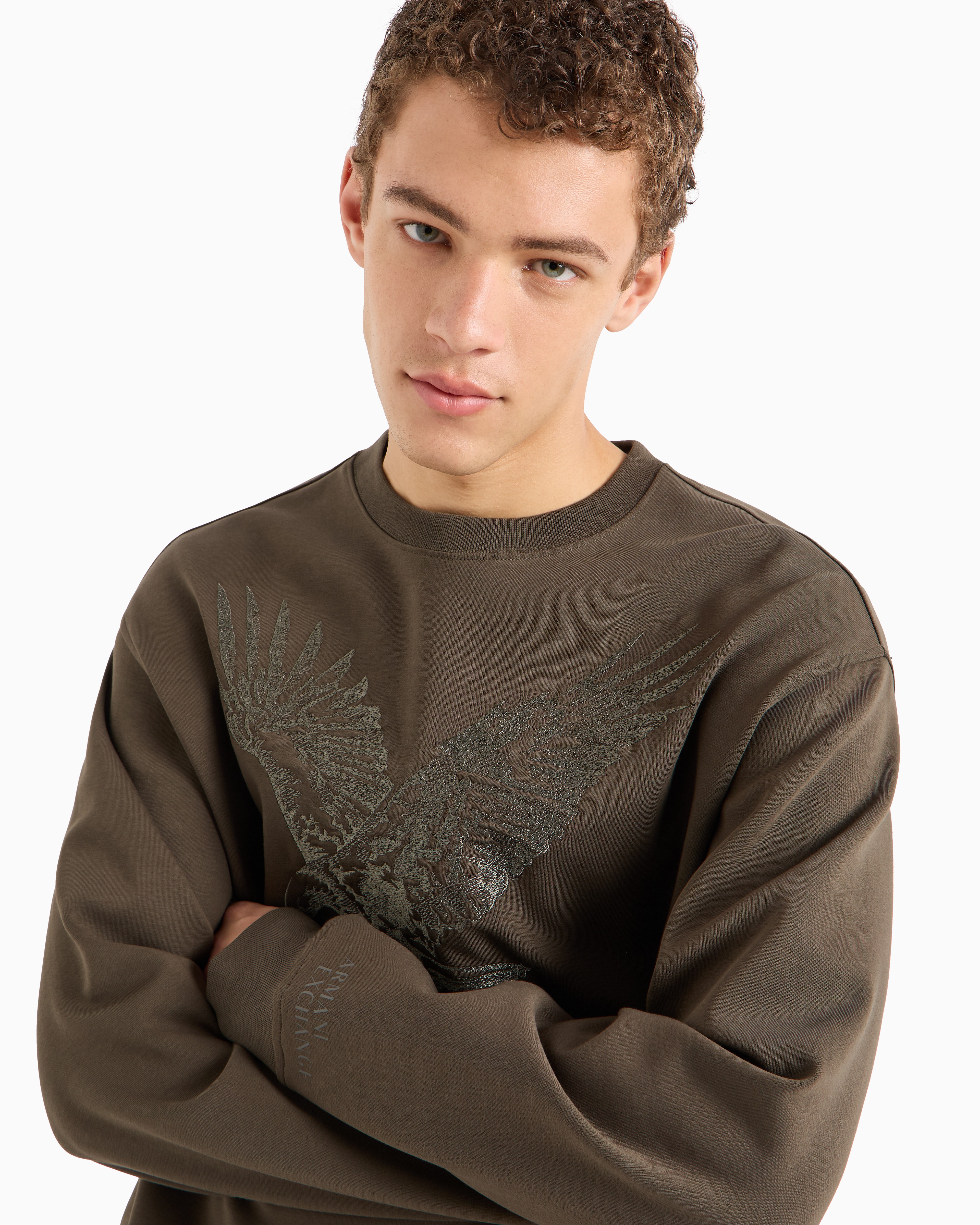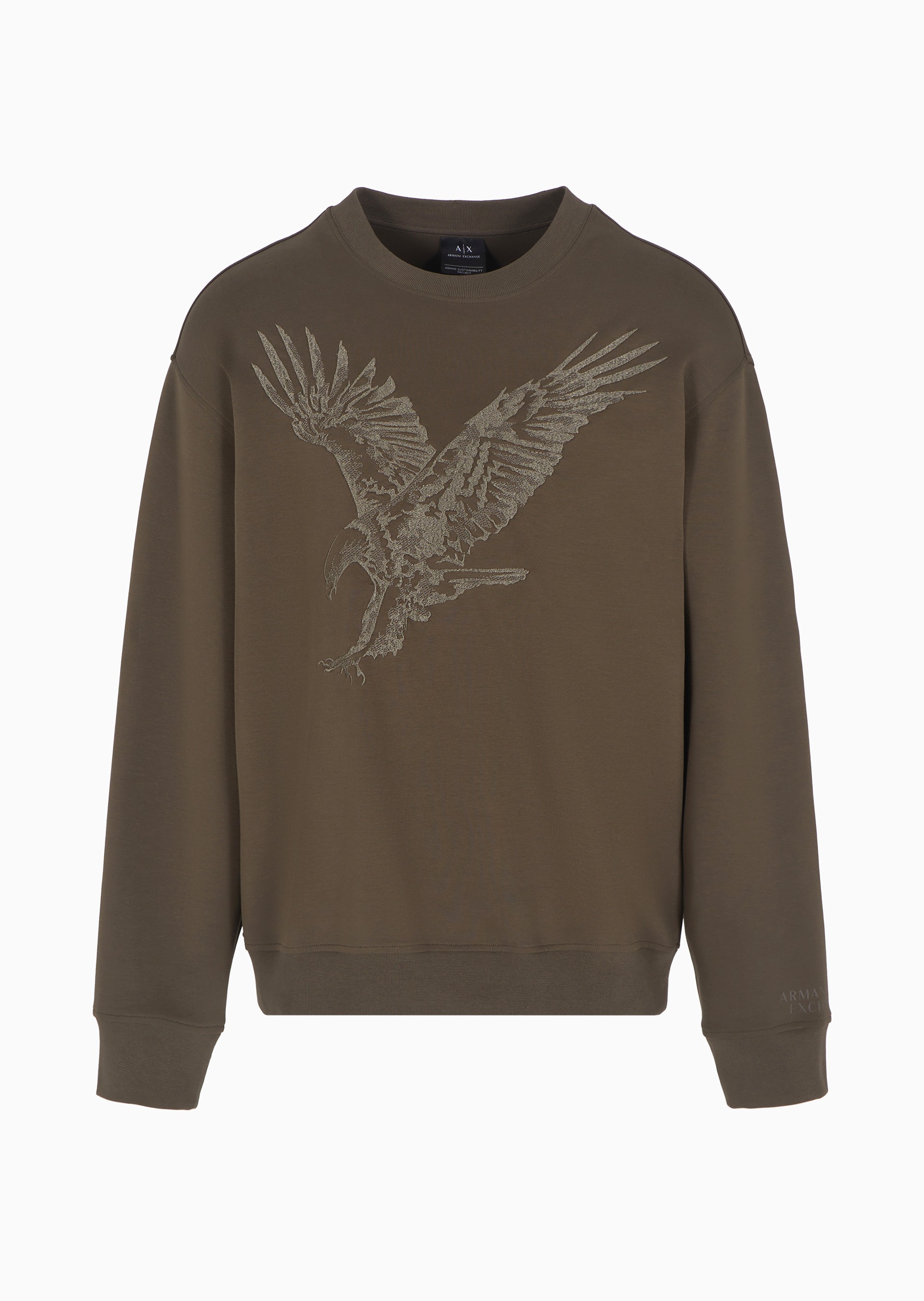 Make a bold statement with this sweatshirt from the Eagle Collection. Crafted from organic poly cotton interlock, it features dropped shoulders for a relaxed fit and a macro embroidered eagle logo, blending comfort with iconic style.