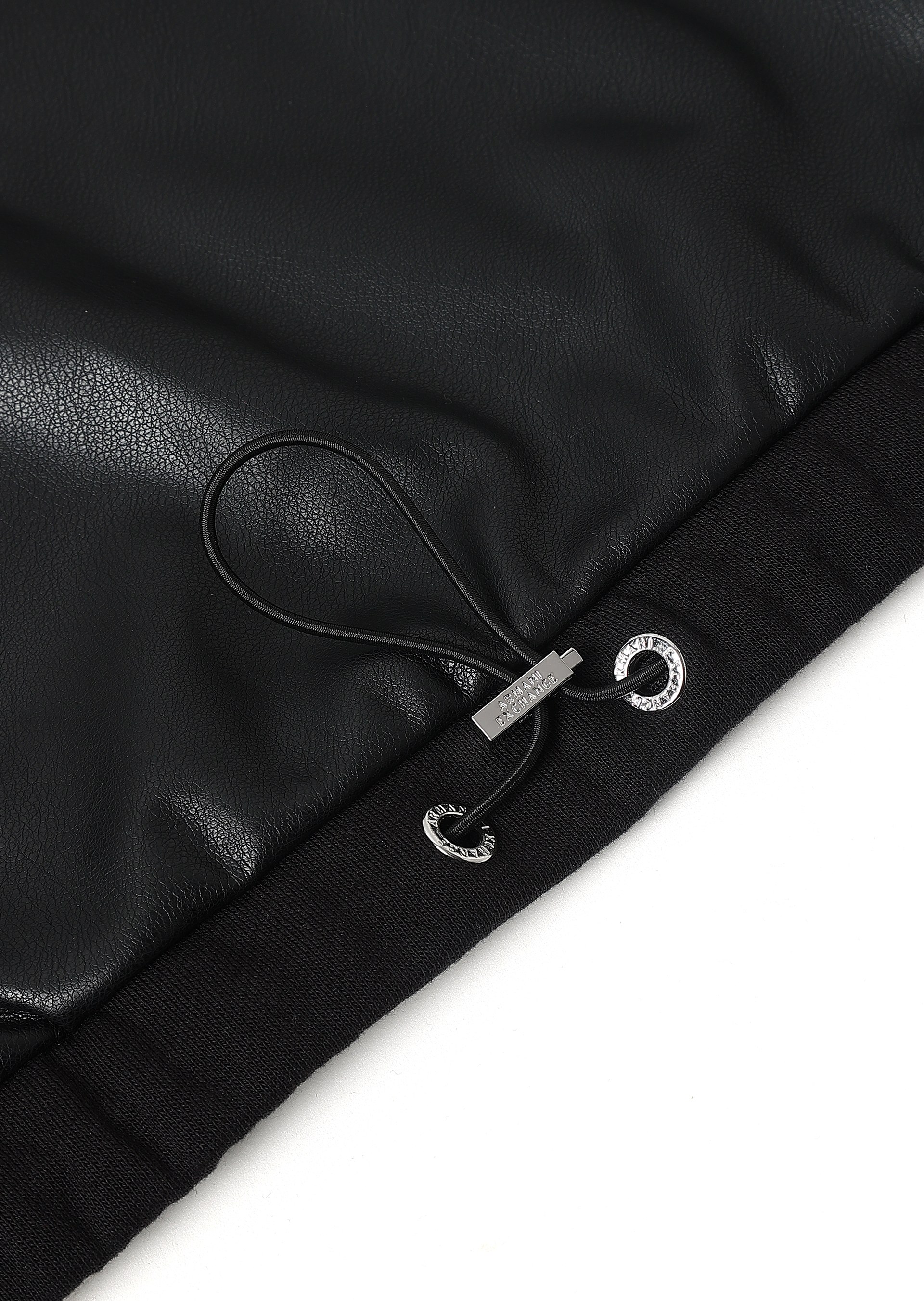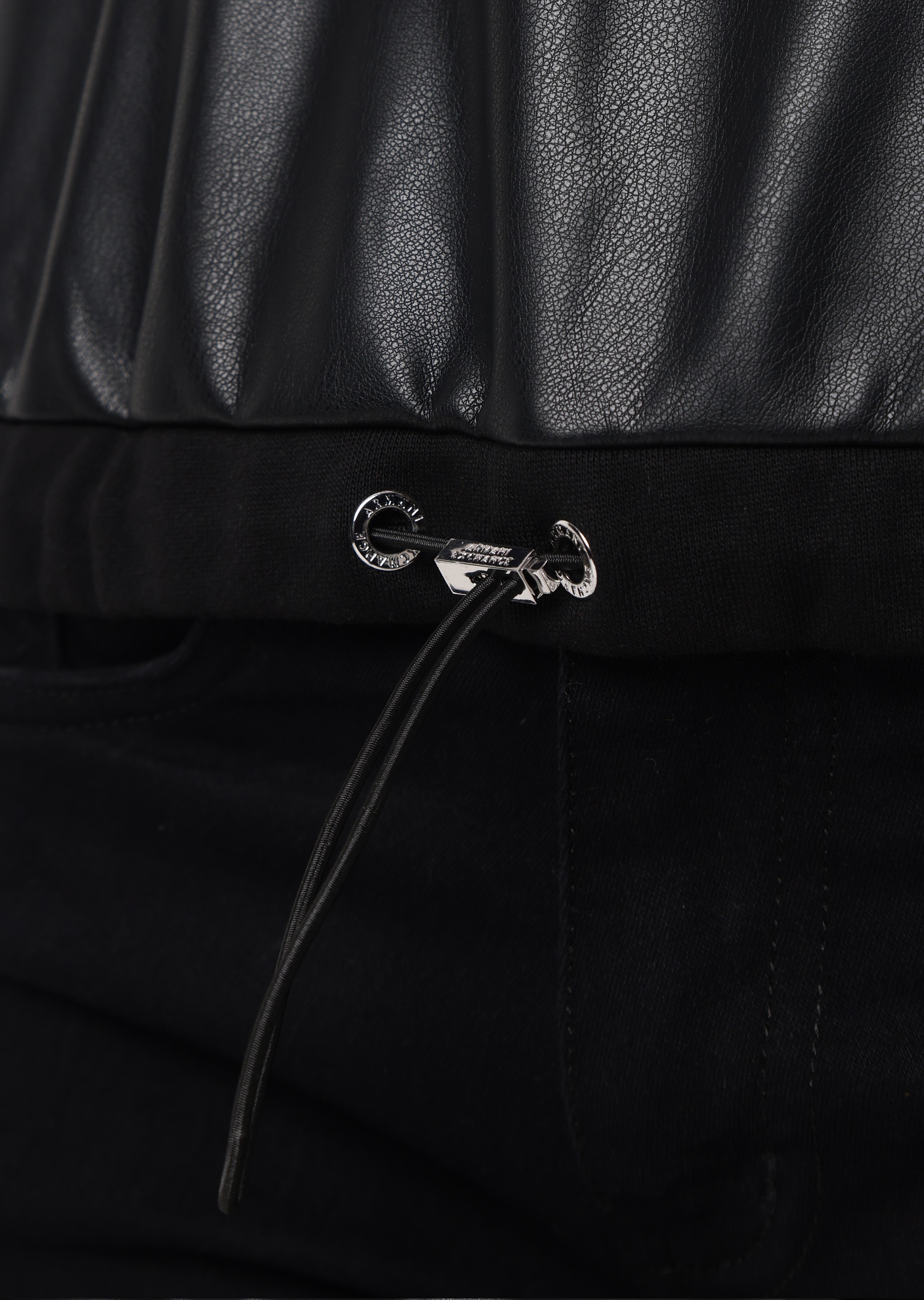 - Cropped, Dropped Shoulders, Front Part in PU Leather, Sleeves and Back in Fleece, Embossed Tonal Logo Signature