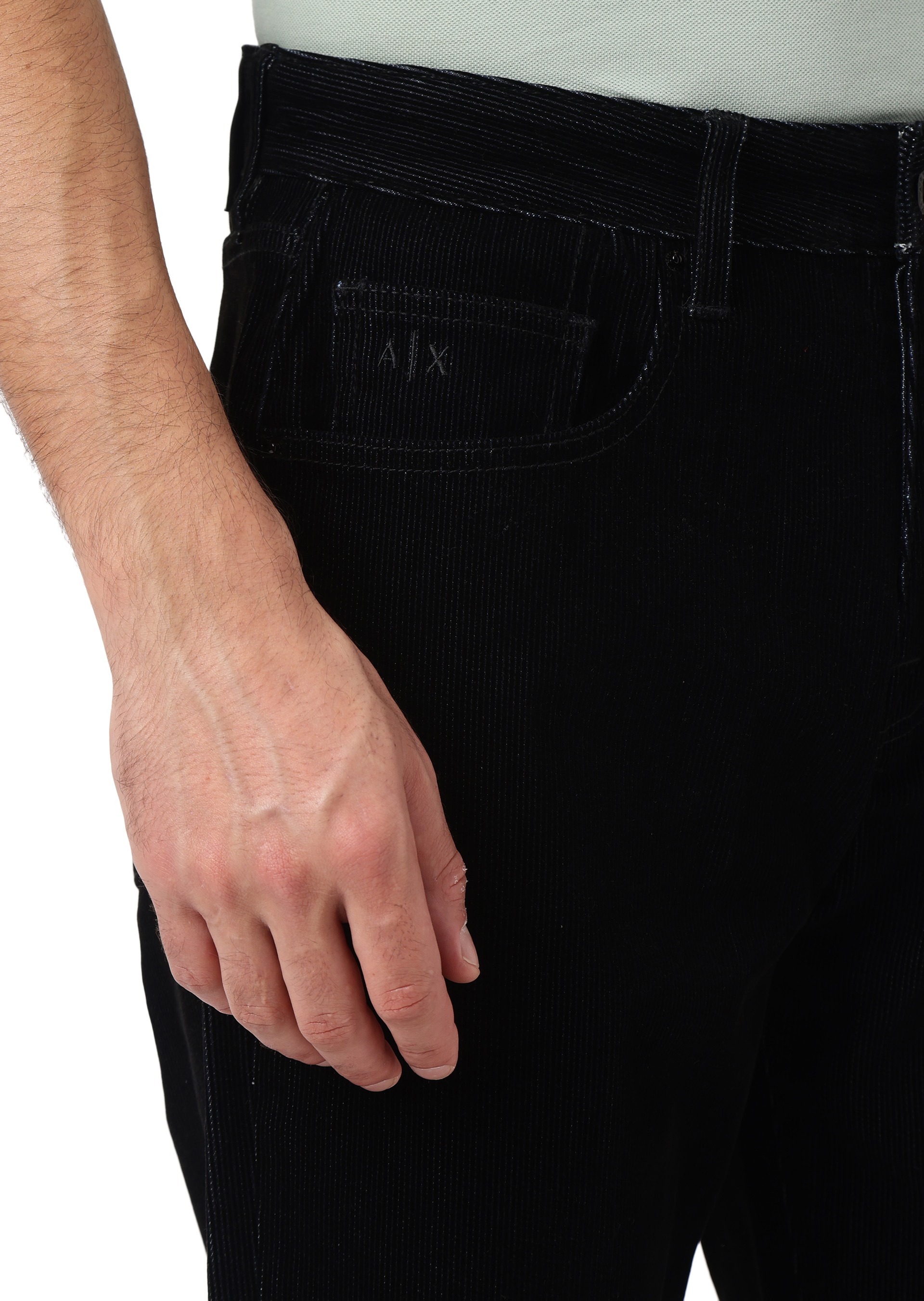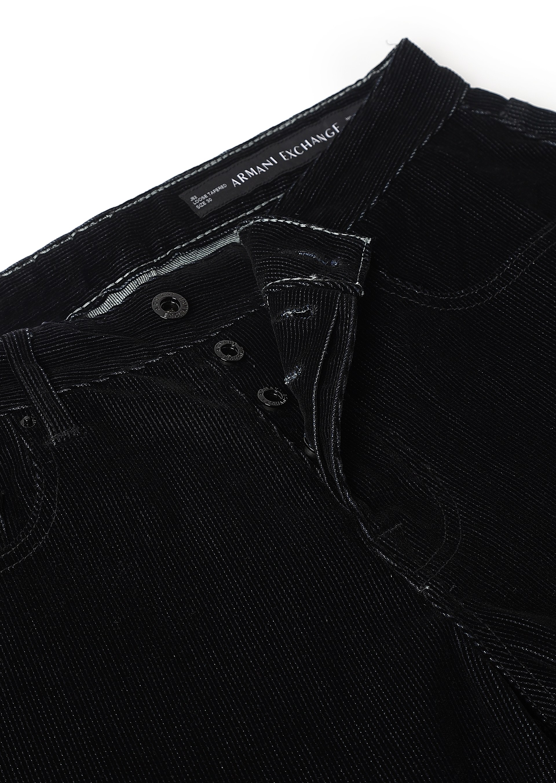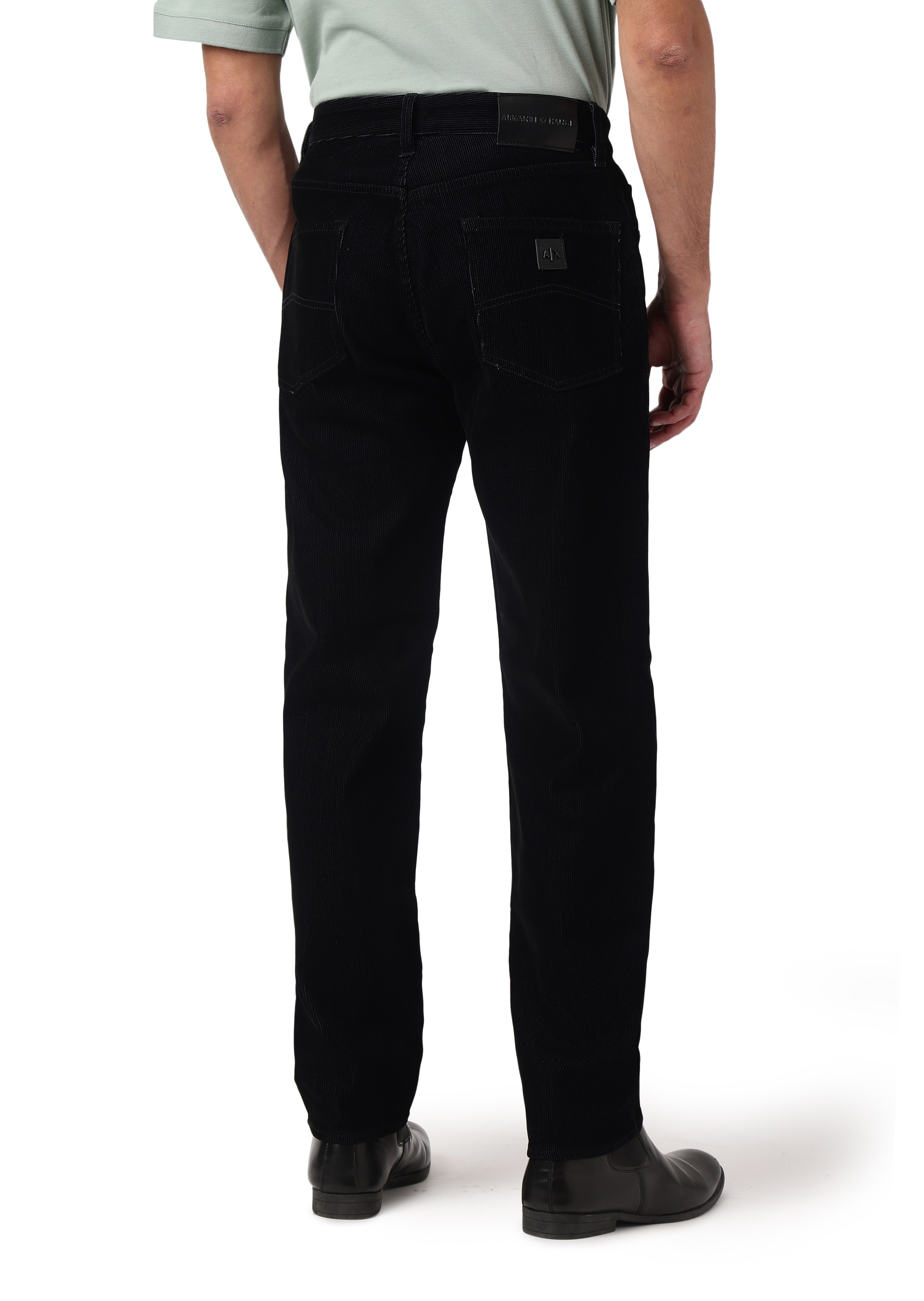 Step into style with these special wash jeans, crafted from comfort flock cotton denim for a soft yet durable feel. Featuring shiny black trims, tone-on-tone stitching, and a black leather patch on the back, these jeans offer a sleek, modern look with a touch of sophistication.