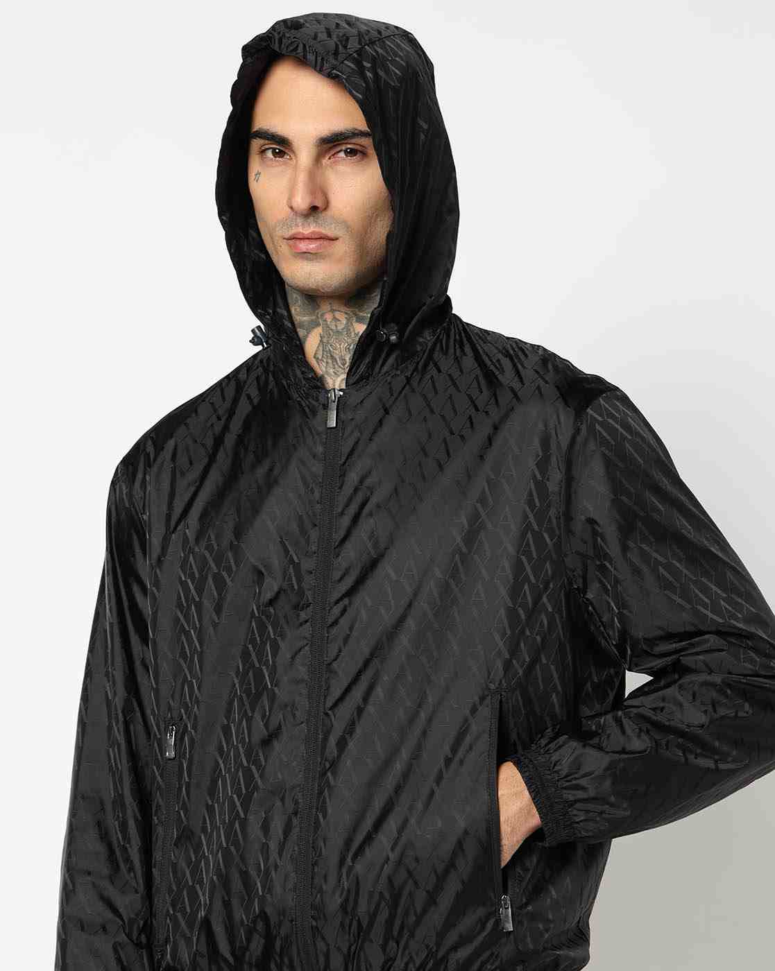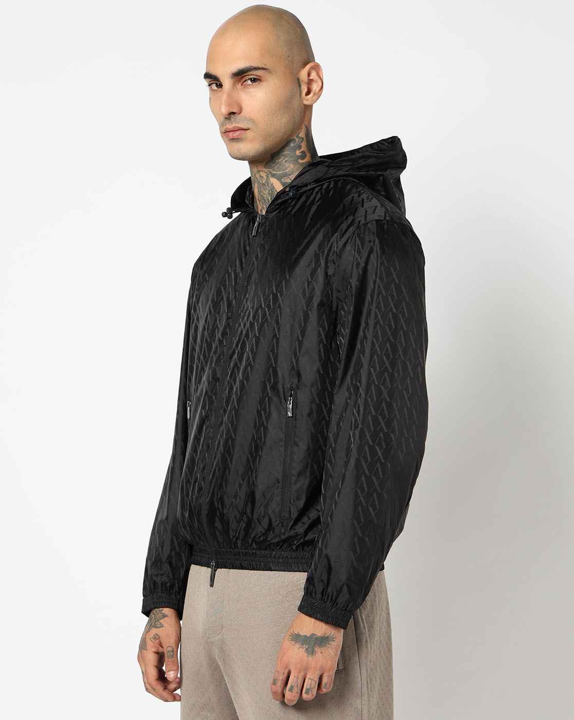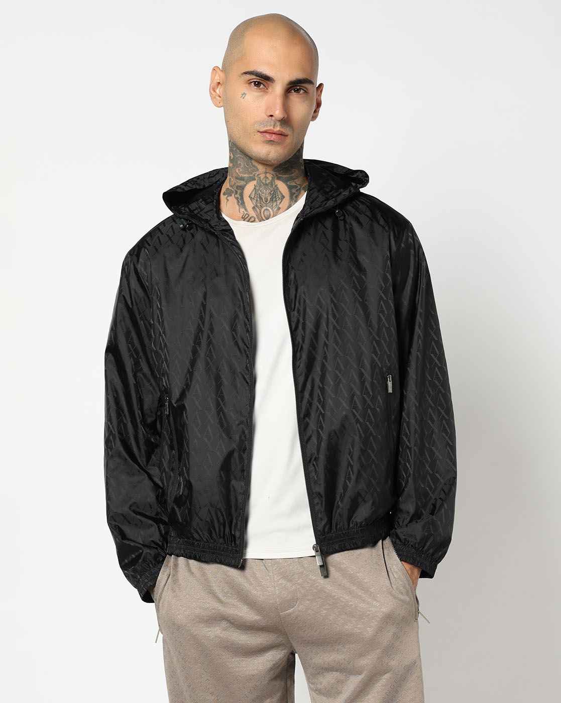 Men Blue Allover Logo Regular Fit Front Open Jackets