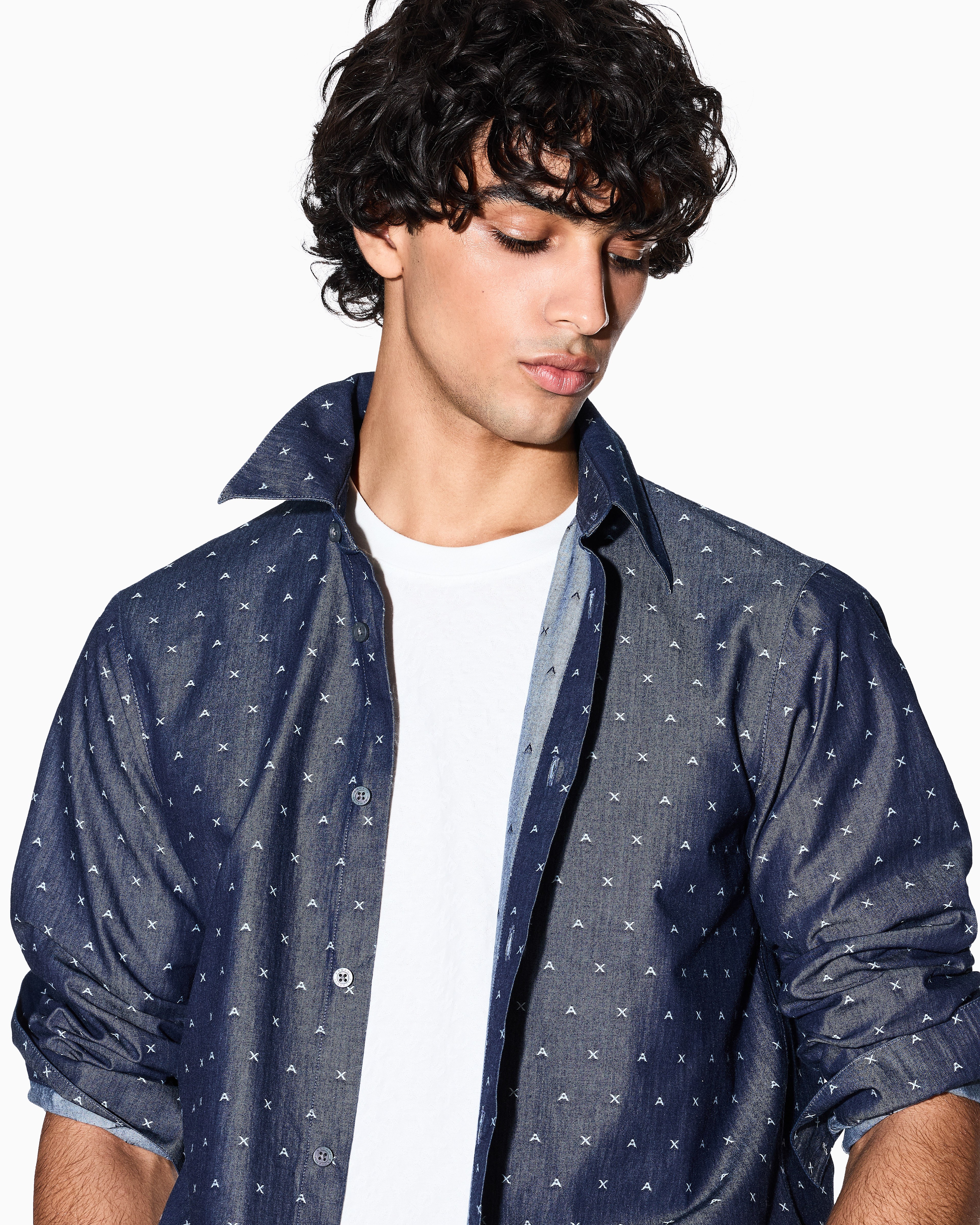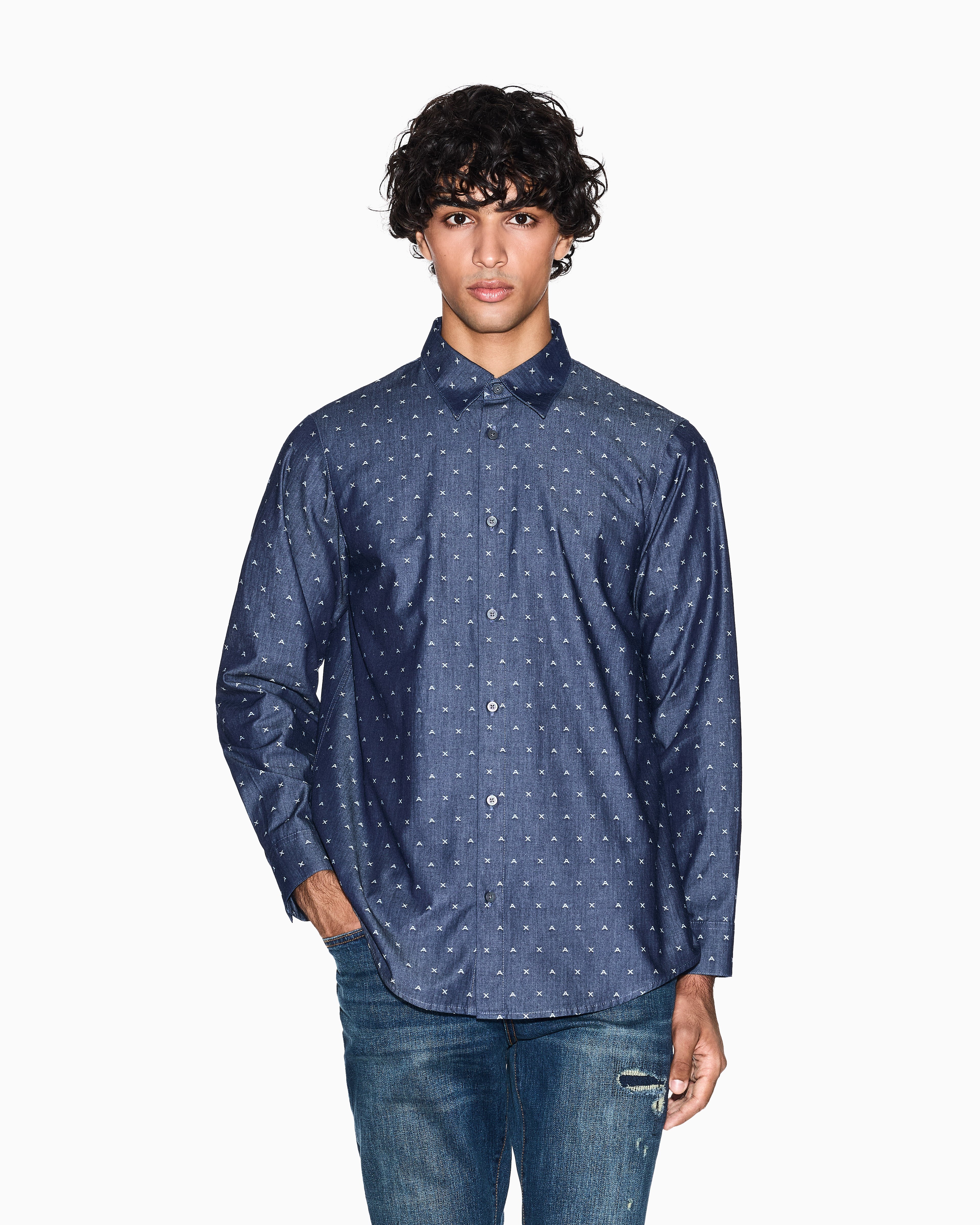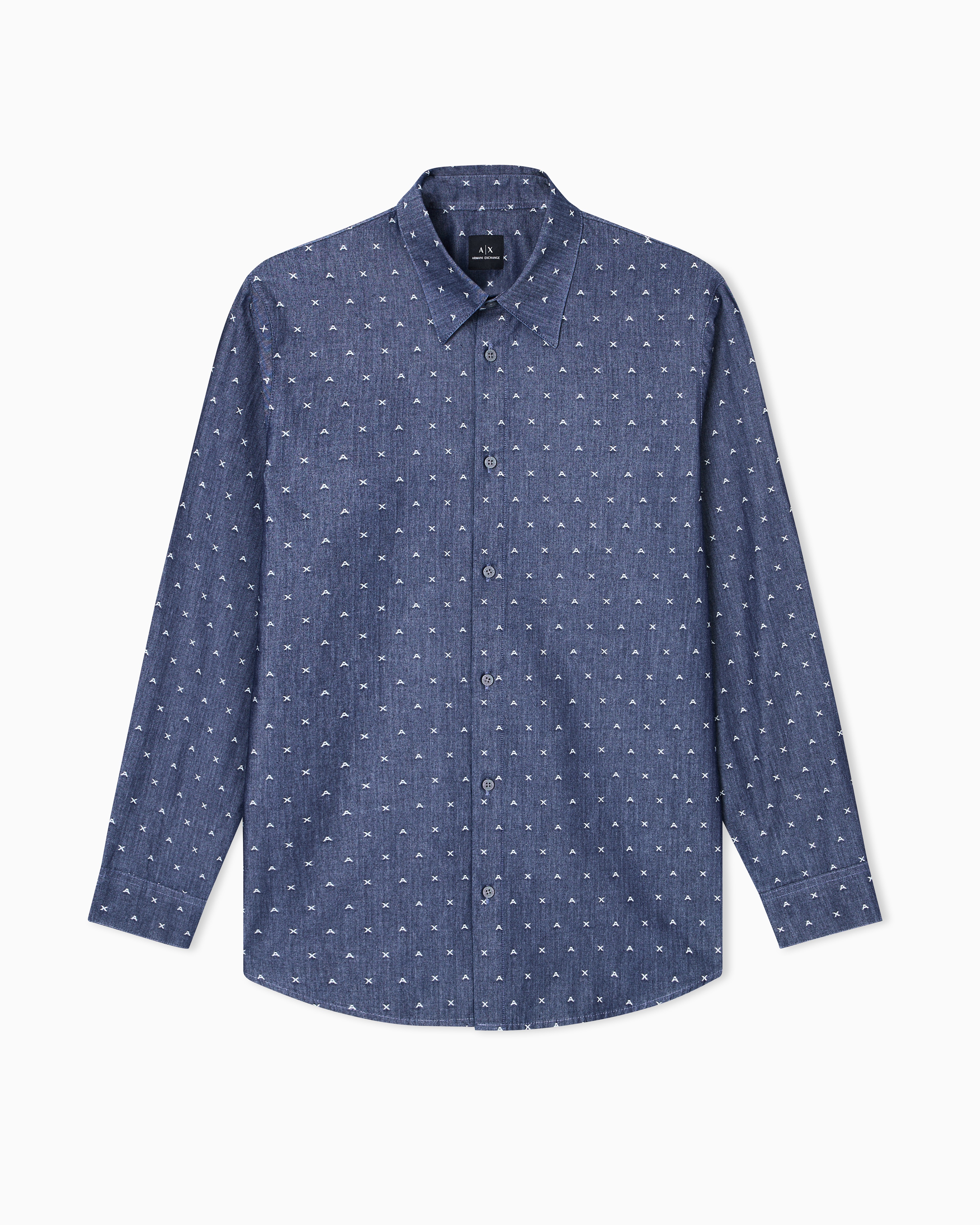 Men Blue Armani Classics Regular + Fit Casual Shirts