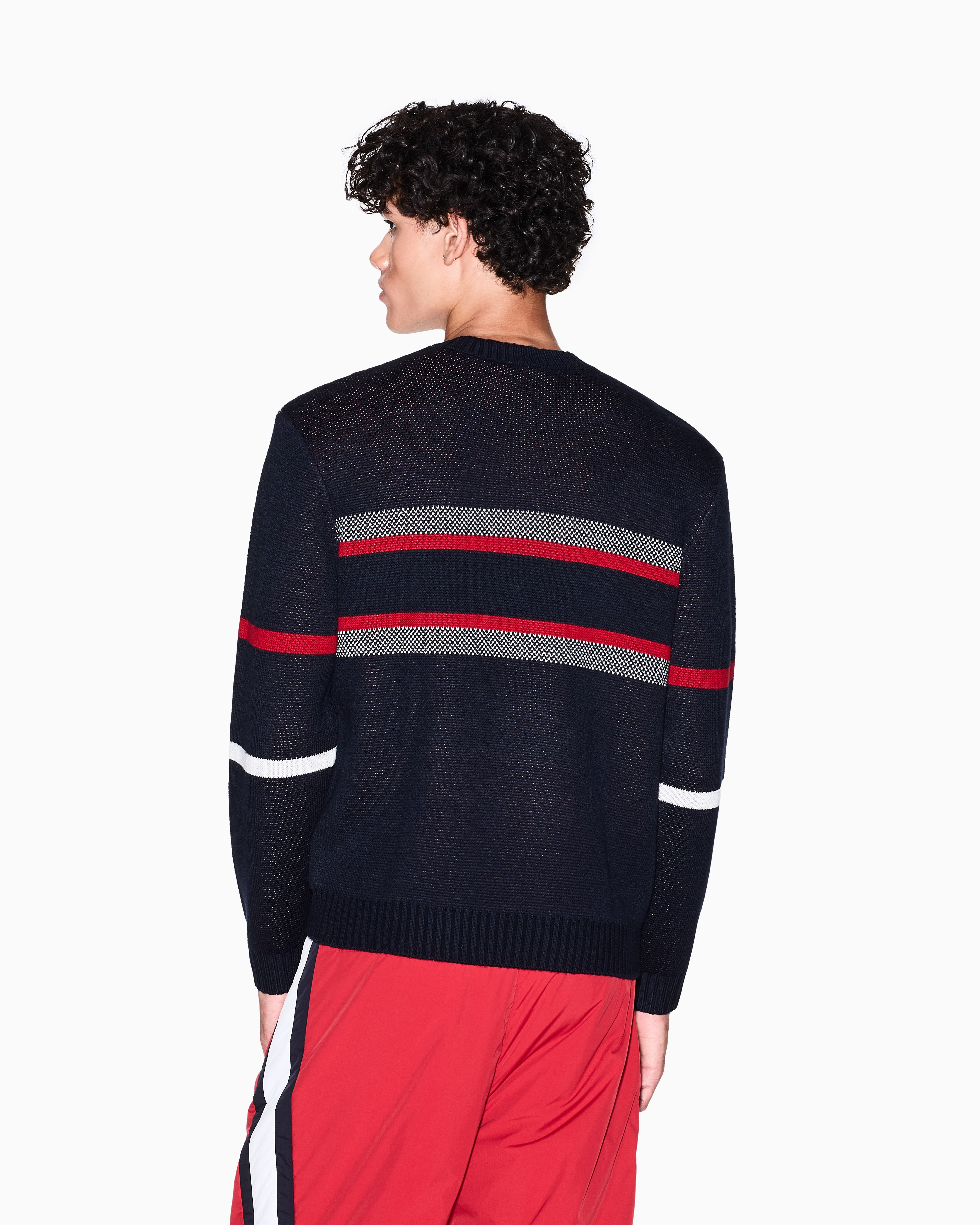 Men Blue Retro Sports Regular Fit Sweaters