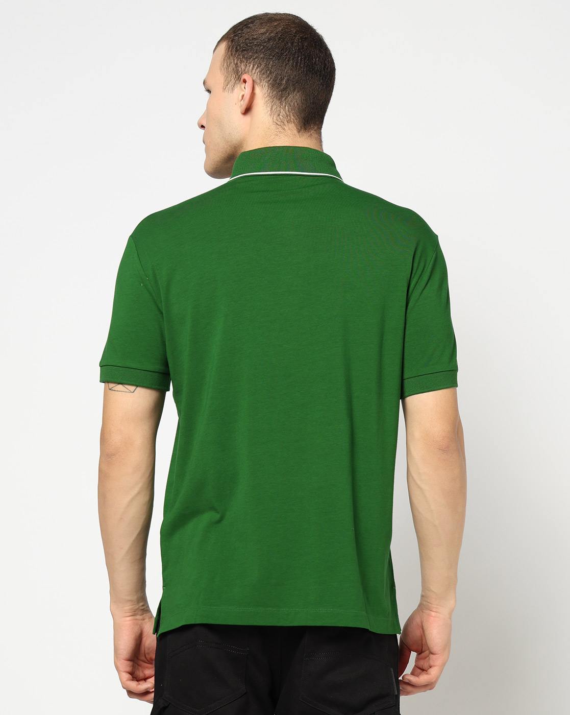 Men Green Basics Slim Fit Polos