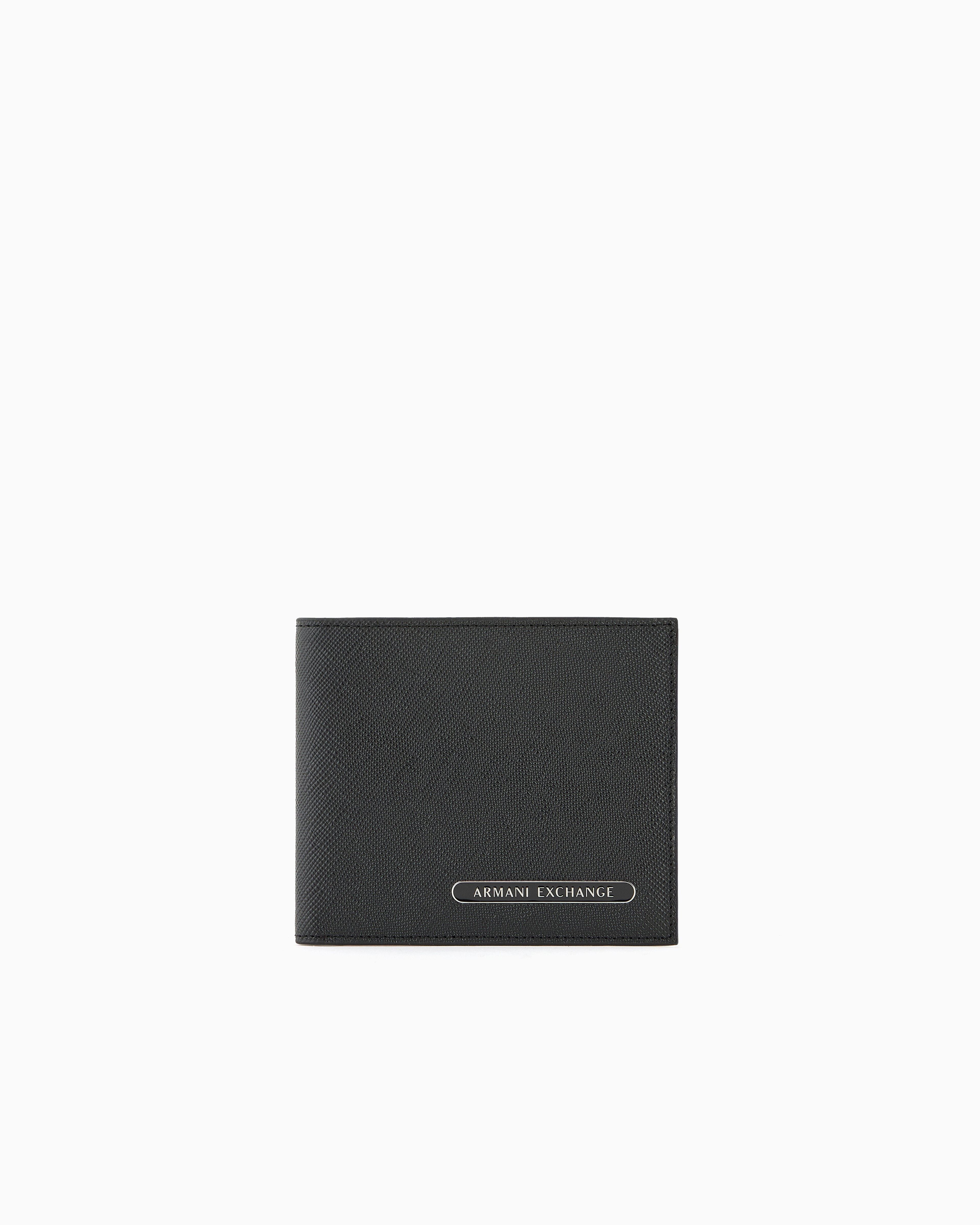 - Saffiano leather, modern and contemporary, enameled metal badge with AX lettering