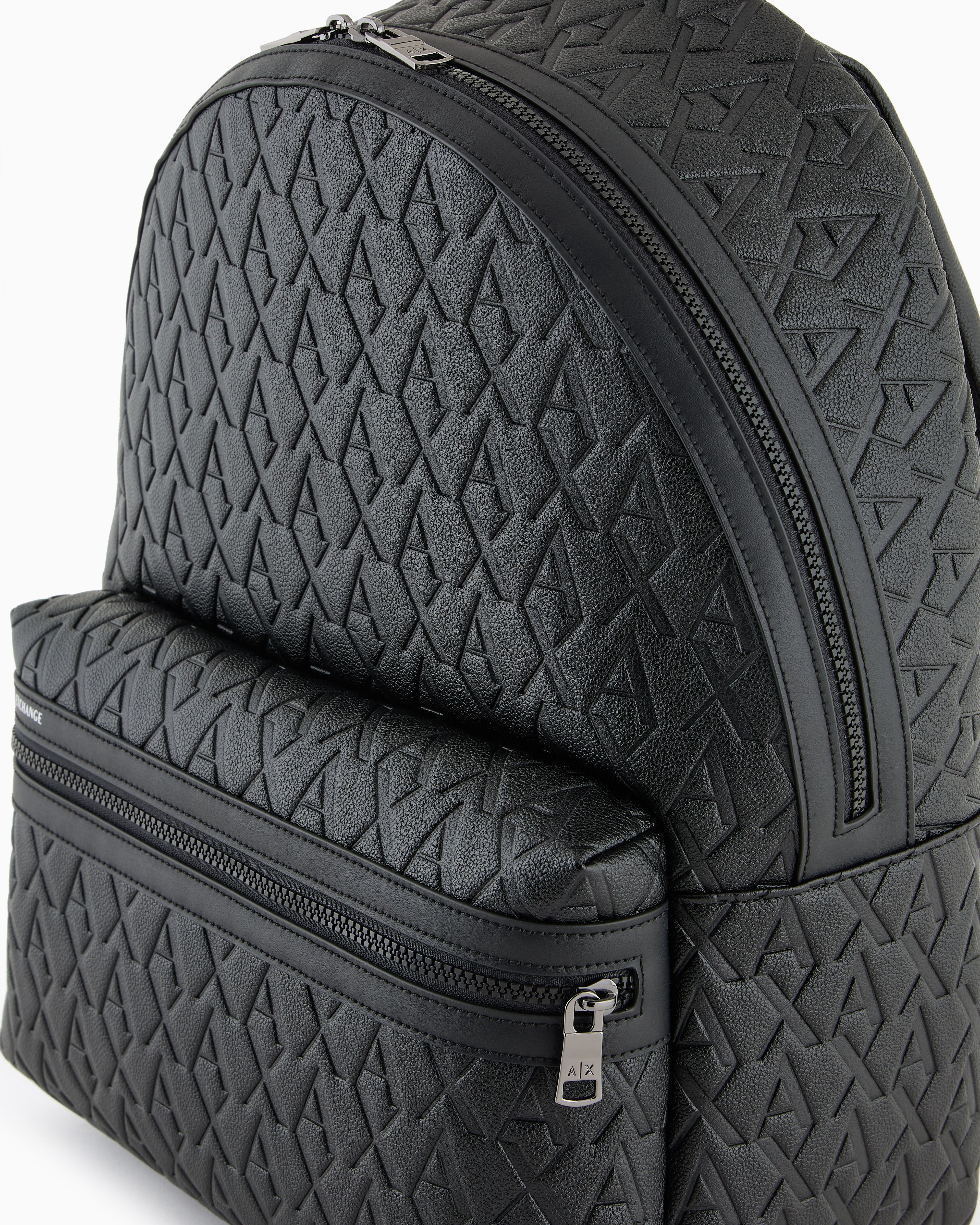 - Emblematic AX pattern in a maxi version with allover embossed logo, discreet yet striking effect, rugged looking hardwearing faux leather. Perfect combination of practicality and style, can be co-ordinated with all styles. Deerskin effect faux leather.