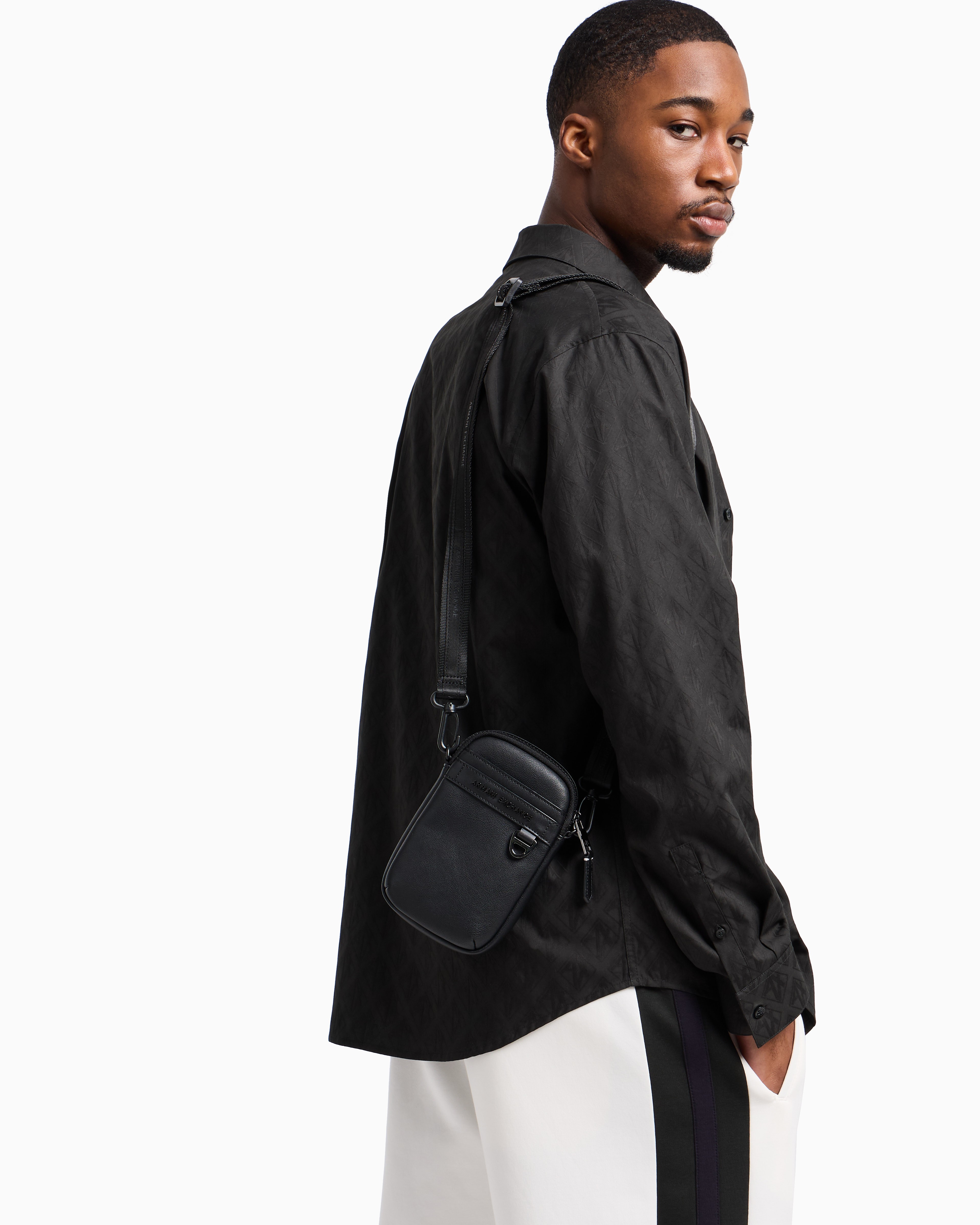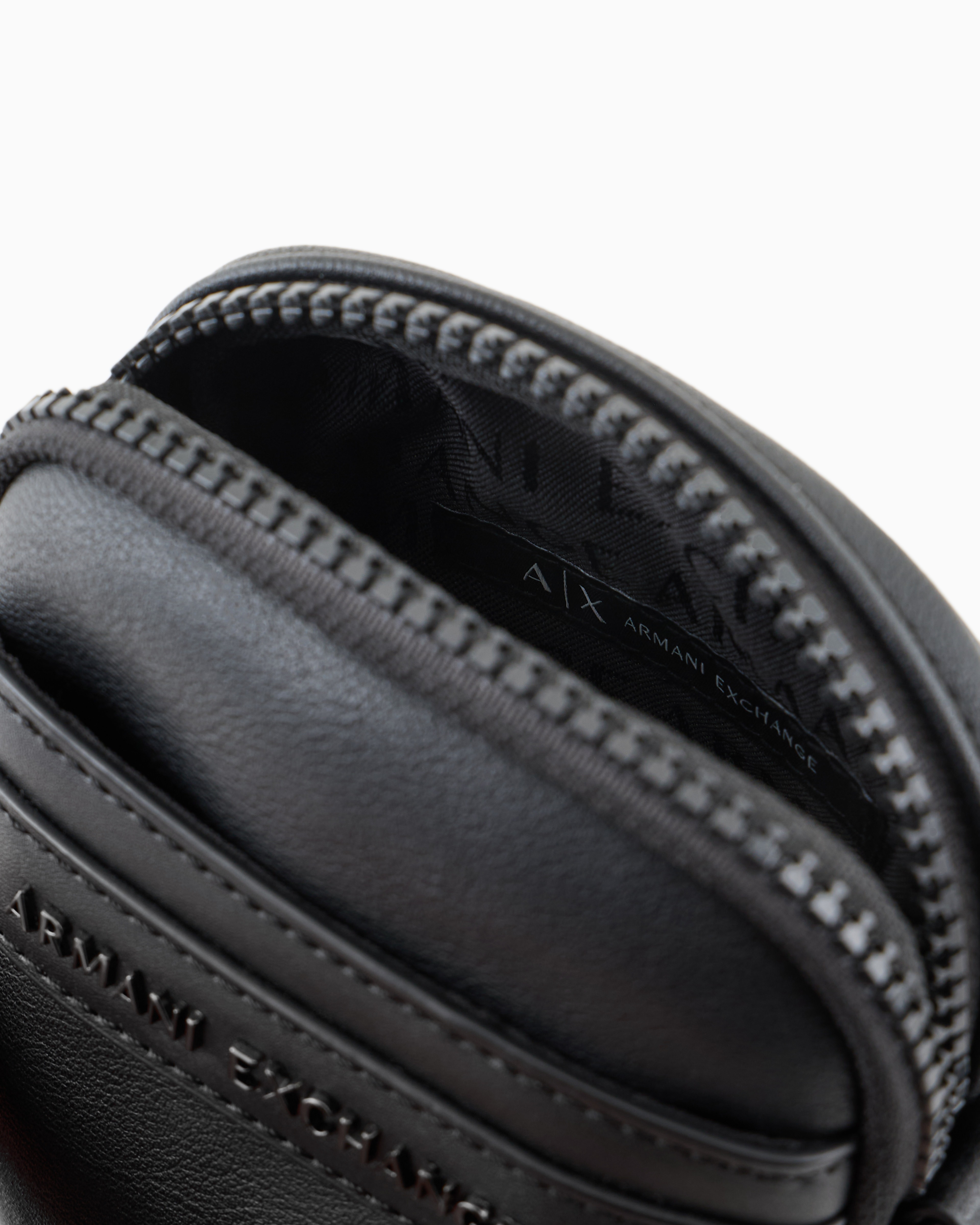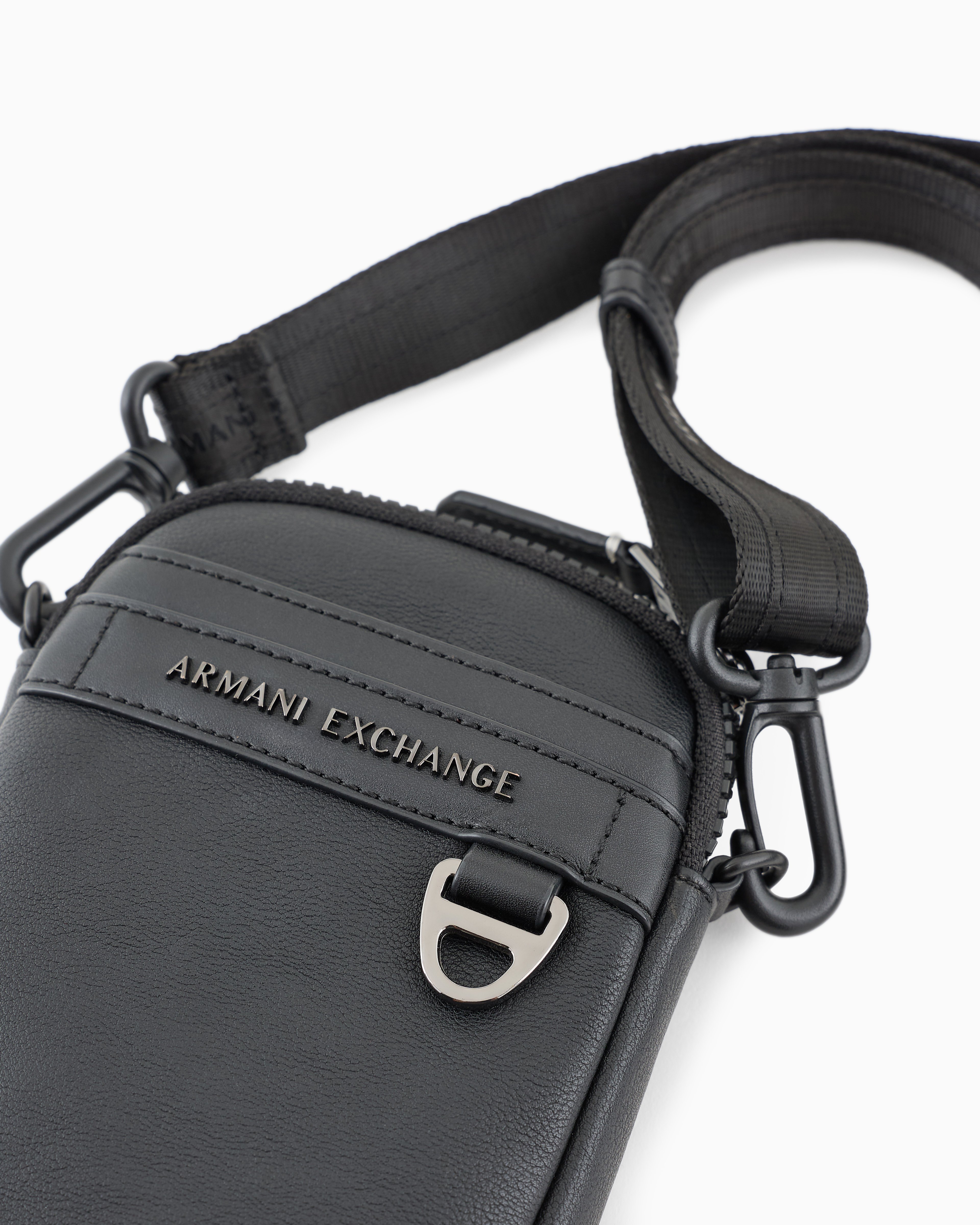Stay organized in style with the A|X Tulum Phone Case Bag. Designed for everyday use, it features a modern look with metal details that blend functionality and premium aesthetics. The faux leather stripe, logo lettering applique, and slight grain effect with a galvanic gunmetal finish make it the perfect accessory for the modern man.