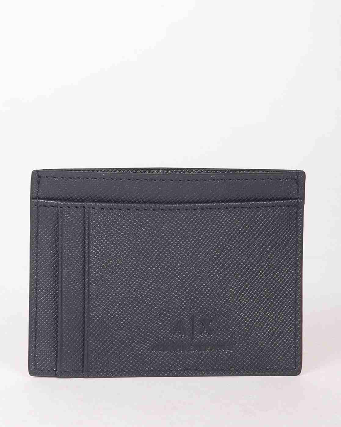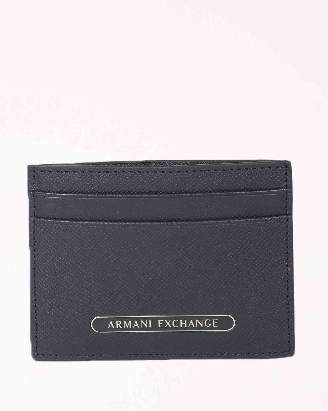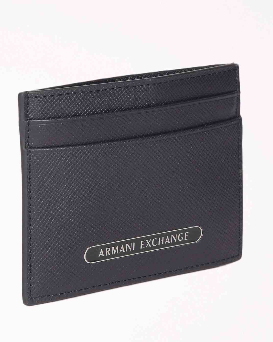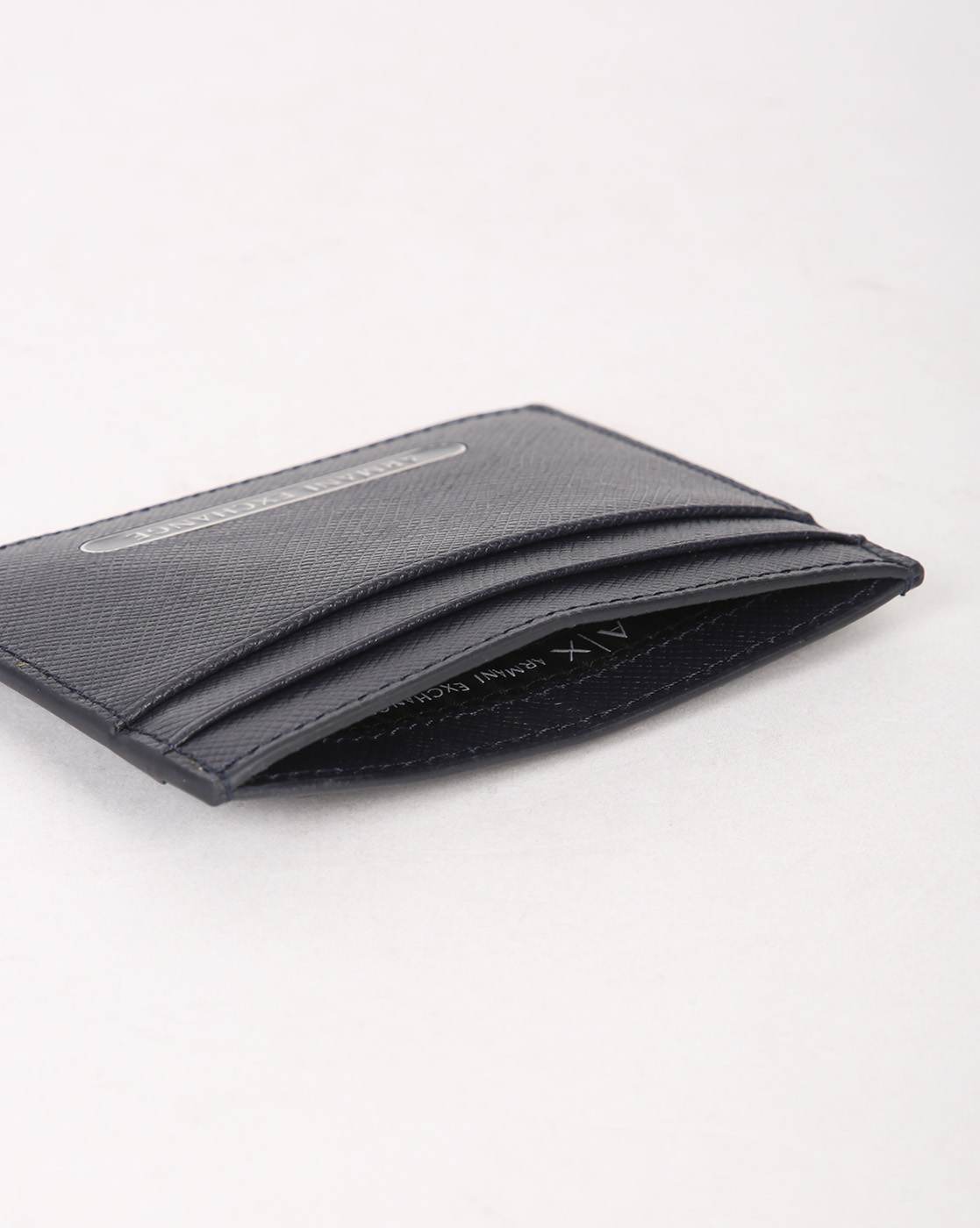 - Saffiano leather, modern and contemporary, enameled metal badge with AX lettering