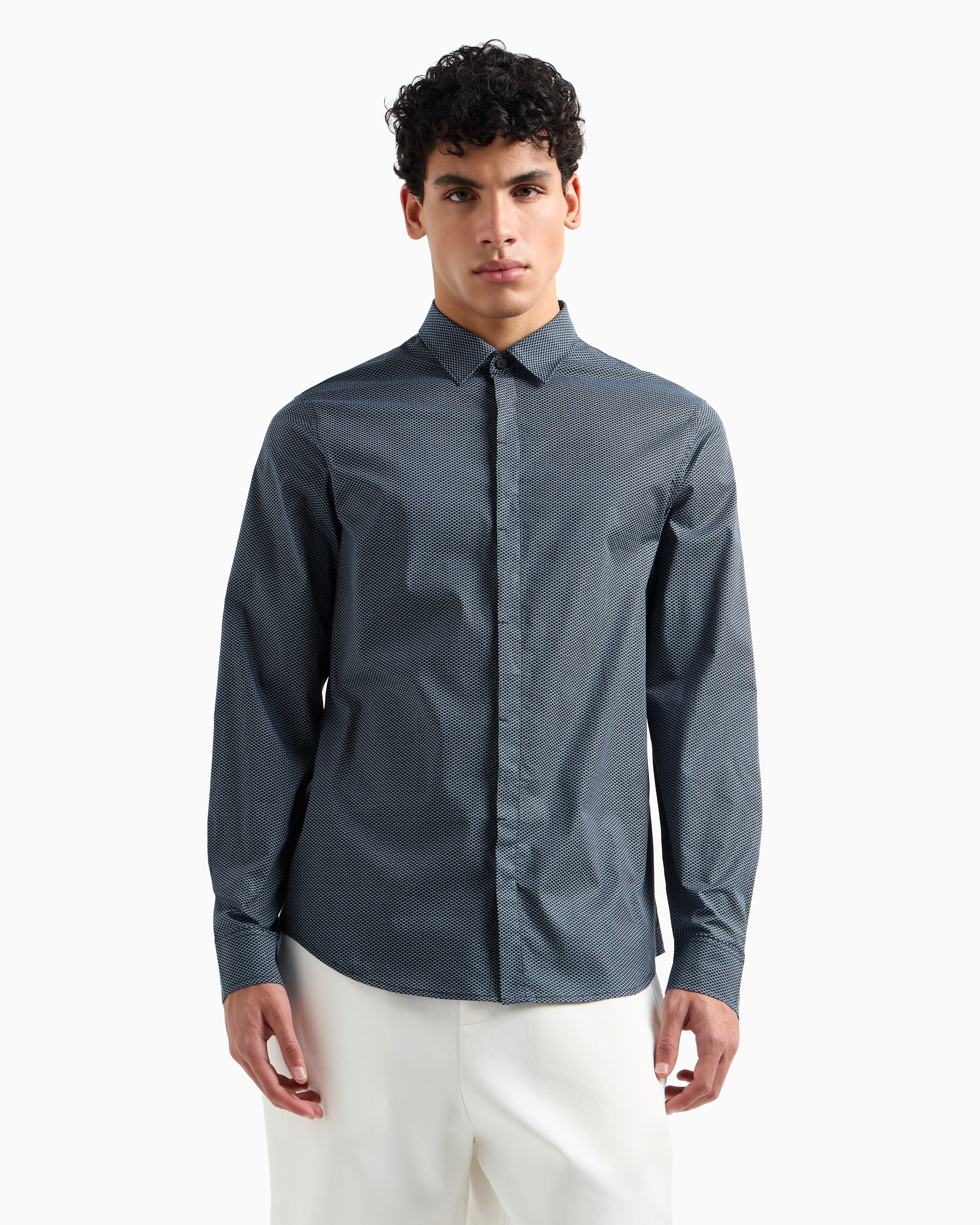 Upgrade your everyday rotation with this stretch cotton shirt from Armani Classics. The hidden placket offers a refined, streamlined look, while a subtle logo tab adds distinctive brand flair. Designed for comfort and versatility, it transitions effortlessly from work to weekend gatherings.