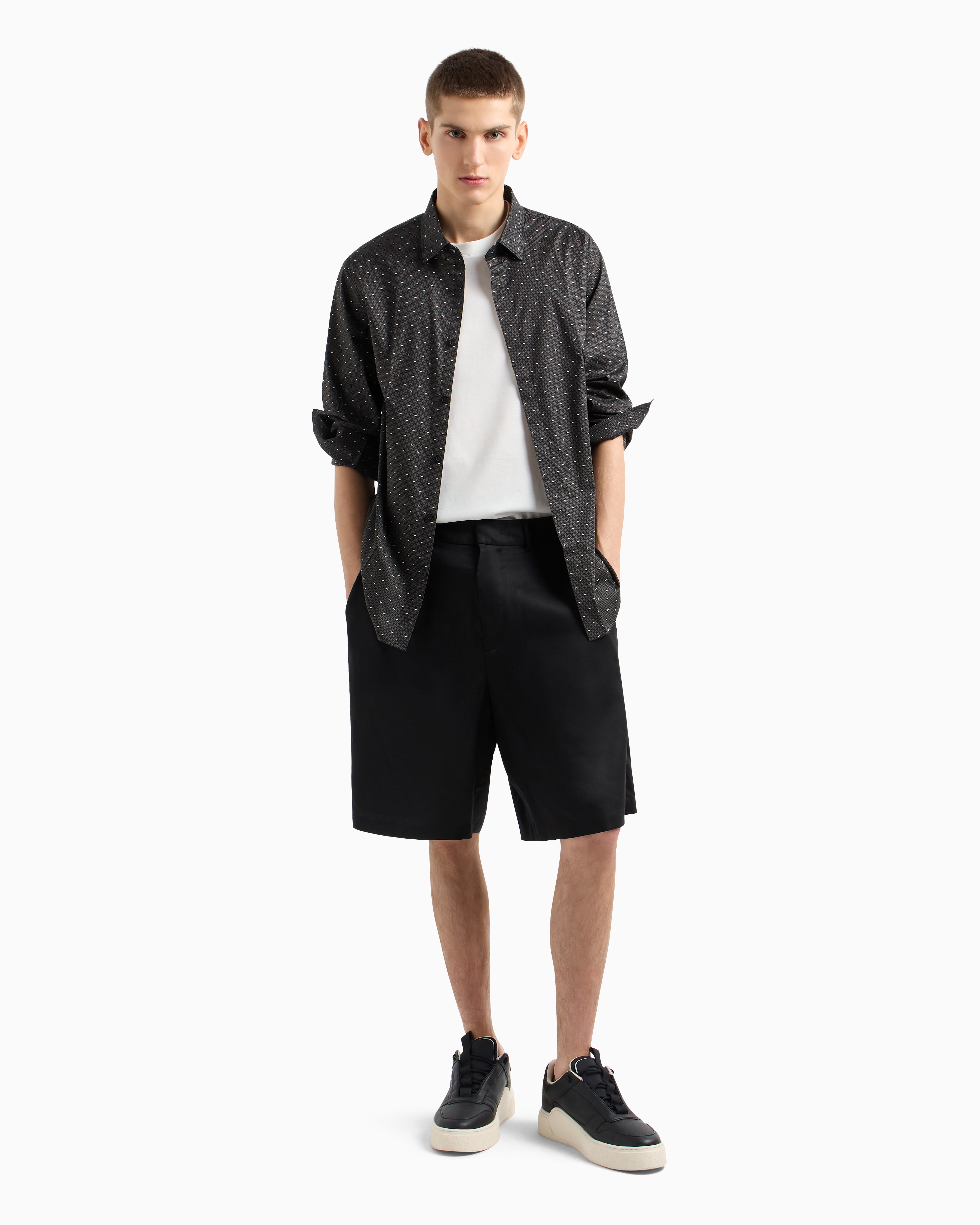 Upgrade your everyday rotation with this stretch cotton shirt from Armani Classics. The hidden placket offers a refined, streamlined look, while a subtle logo tab adds distinctive brand flair. Designed for comfort and versatility, it transitions effortlessly from work to weekend gatherings.