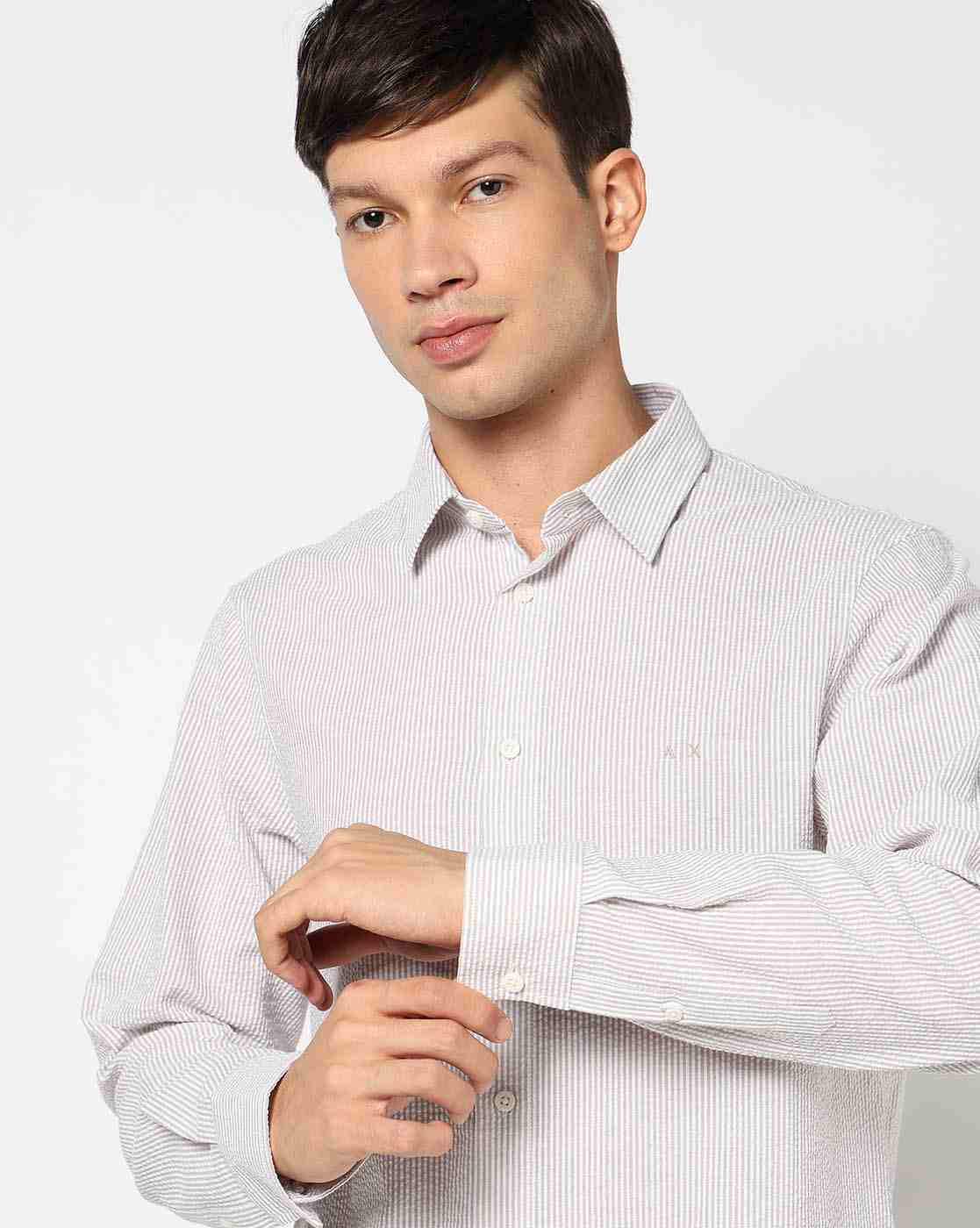 Elevate your wardrobe with this yarn-dyed cotton seersucker shirt from the Geometrical Seersucker collection. Its textured design ensures a breathable, breezy feel—perfect for warm-weather occasions. Finished with a subtle embroidered logo on the chest, it delivers both contemporary flair and everyday comfort