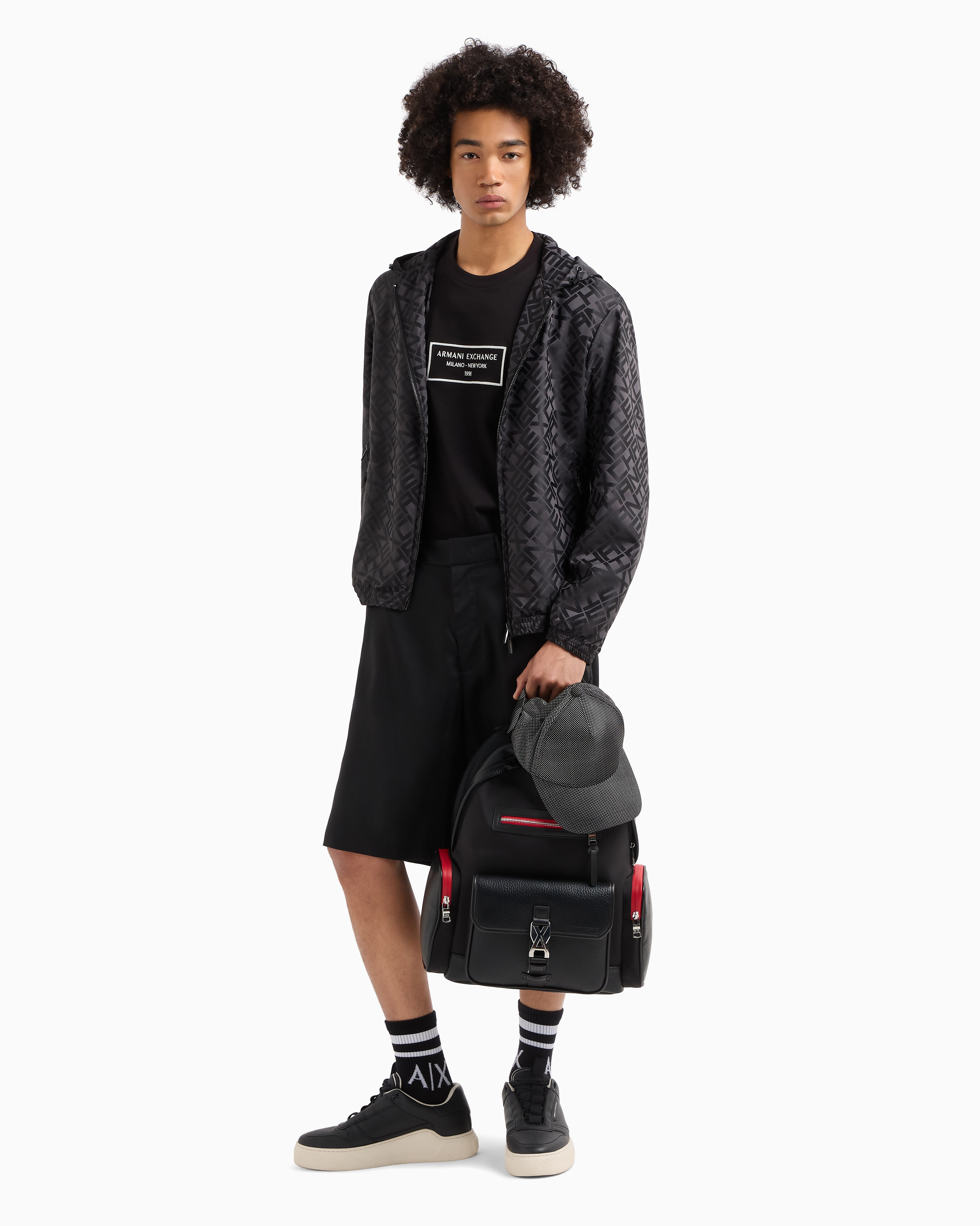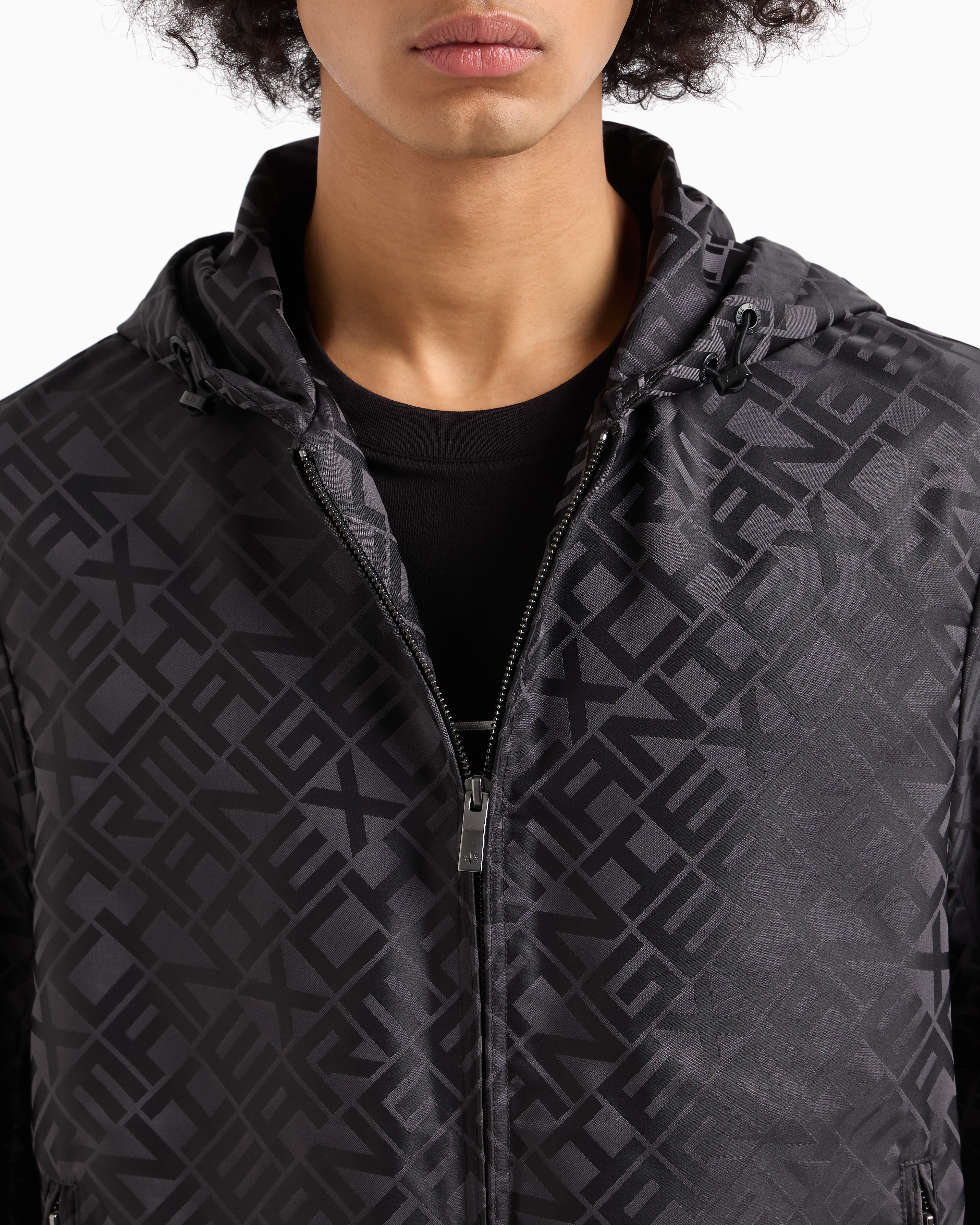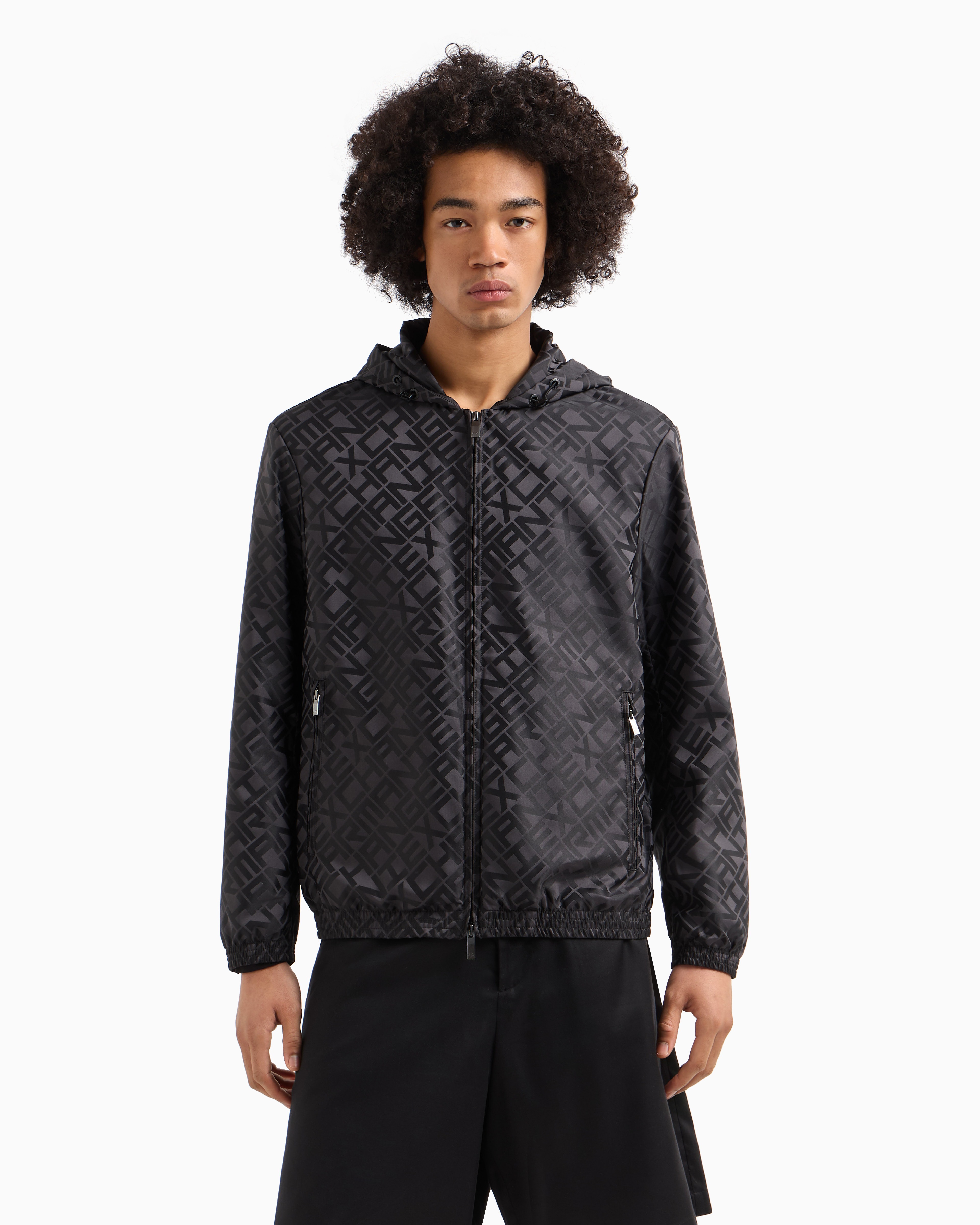 Embrace bold style with the A|X Logomania Hooded Windbreaker. Crafted from lightweight polyester jacquard with an allover logo design, it features a full zip, zipped pockets, and an unlined finish for effortless versatility. Perfect for adding a modern edge to your casual look.