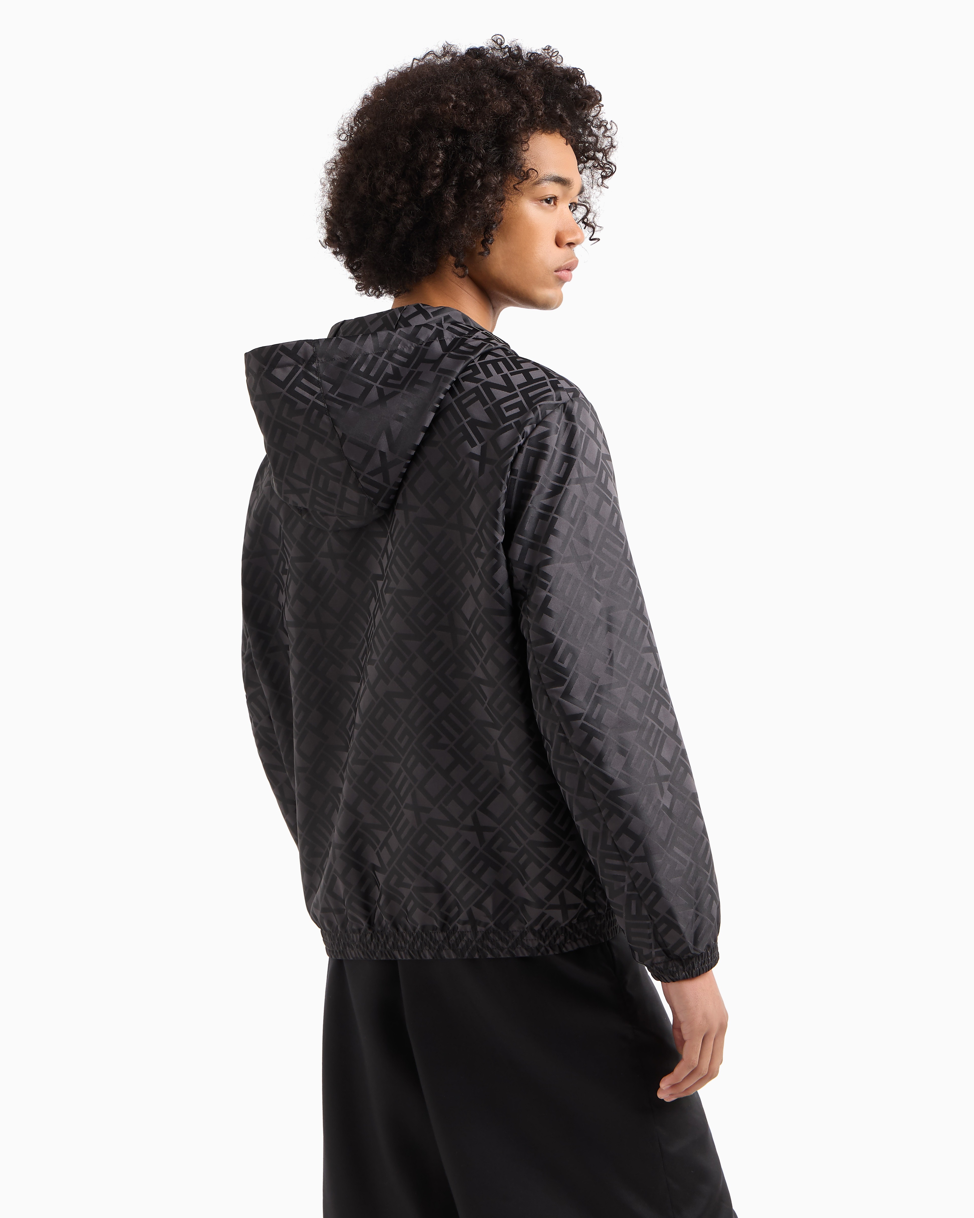 - Full zip, hooded, windbreaker, polyester jacquard, zipped pockets, allover logo jacquard, unlined