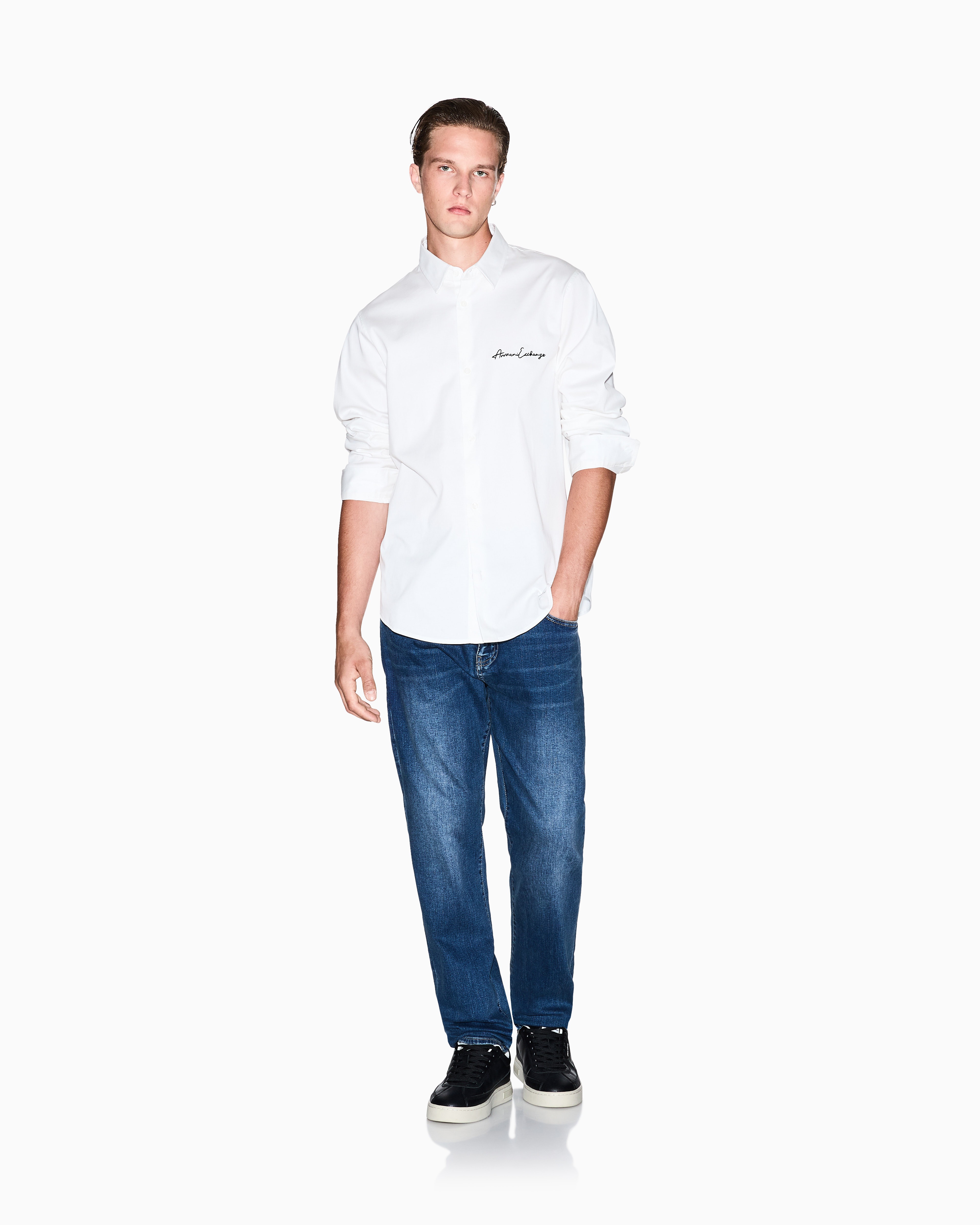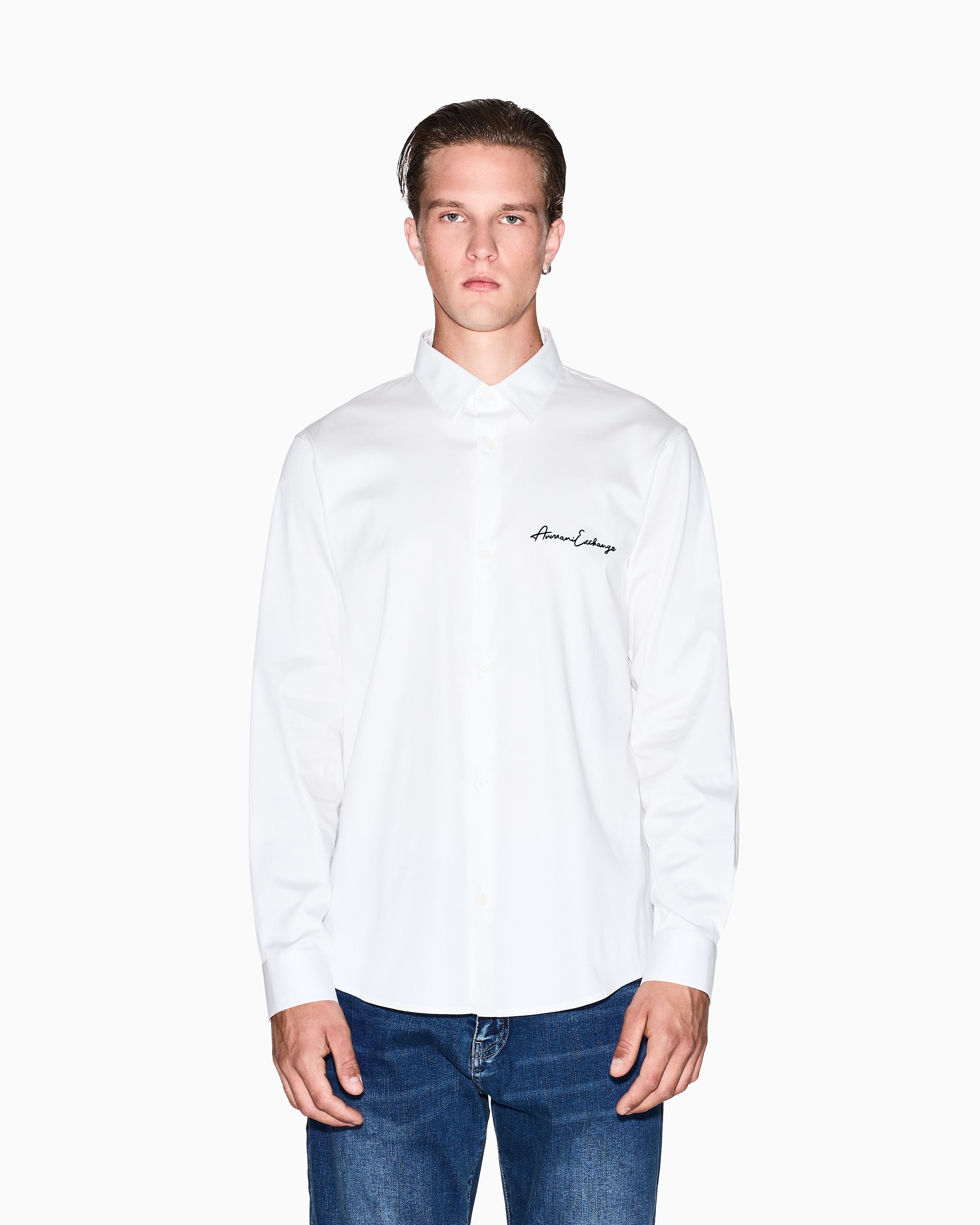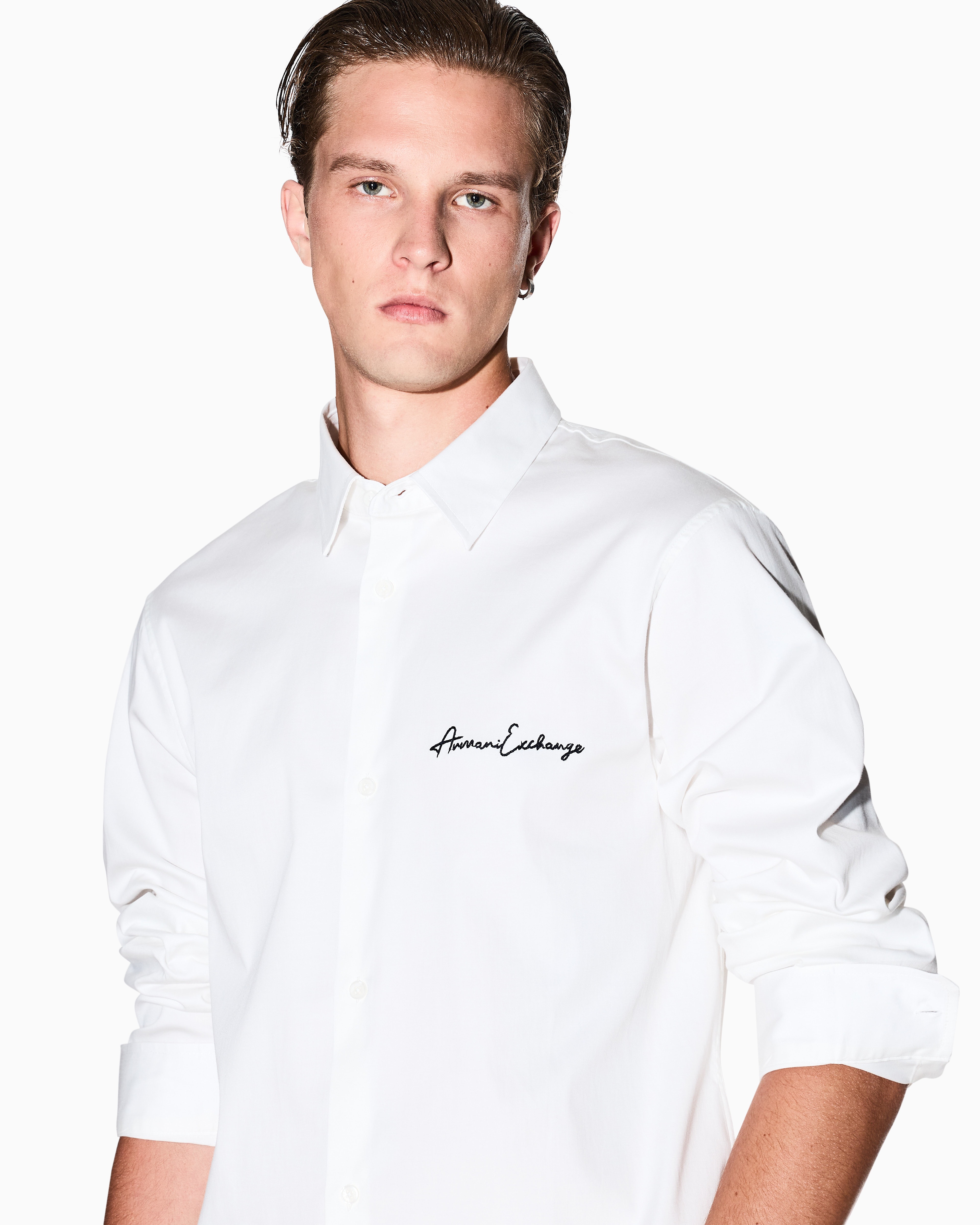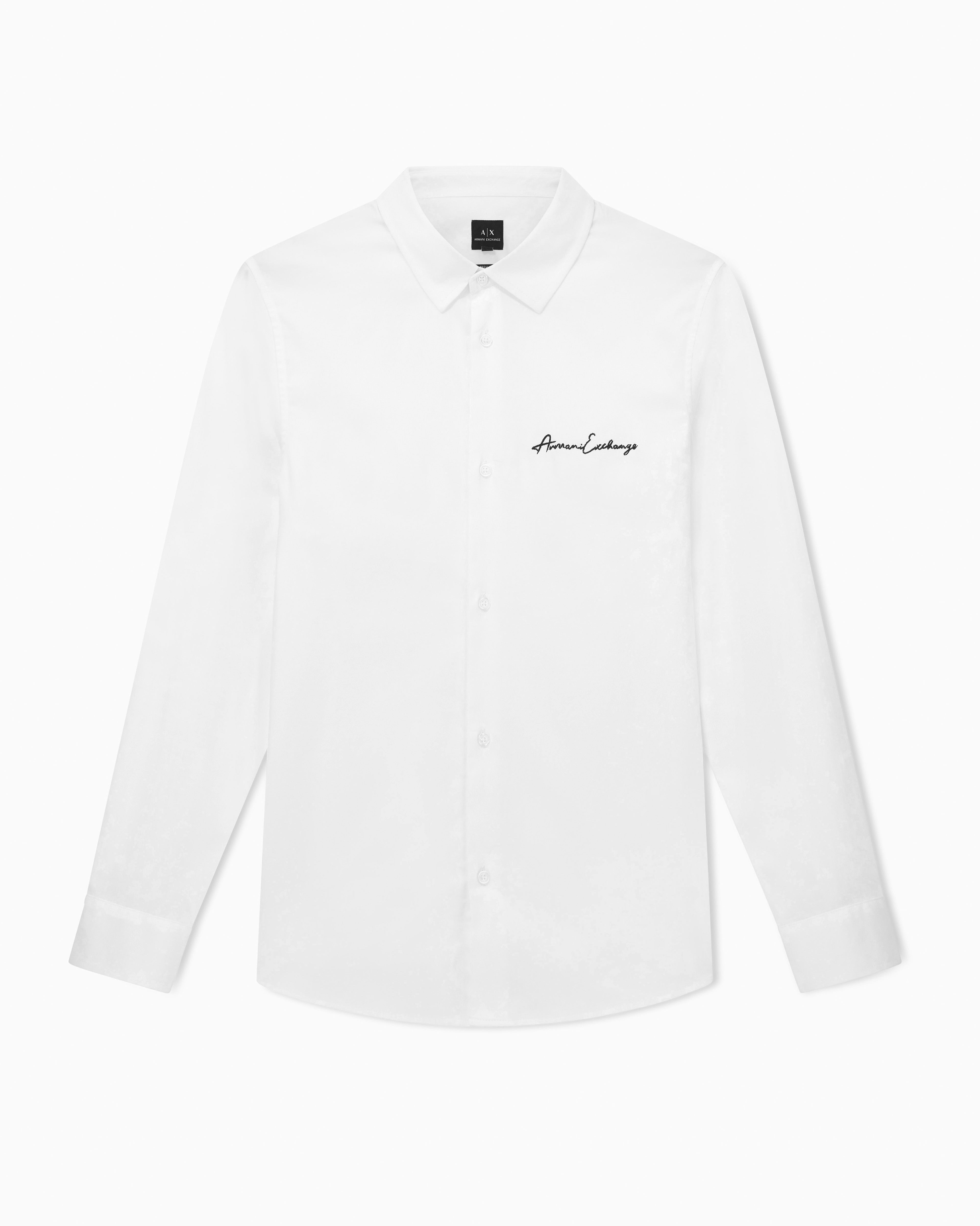 Elevate your rotation with this stretch cotton satin piece from the Signature collection. Blending a subtle sheen with supremely comfortable movement, it slips seamlessly into any contemporary wardrobe. Topped off with the iconic Armani Exchange logo on the chest, it’s the epitome of sleek, timeless style.