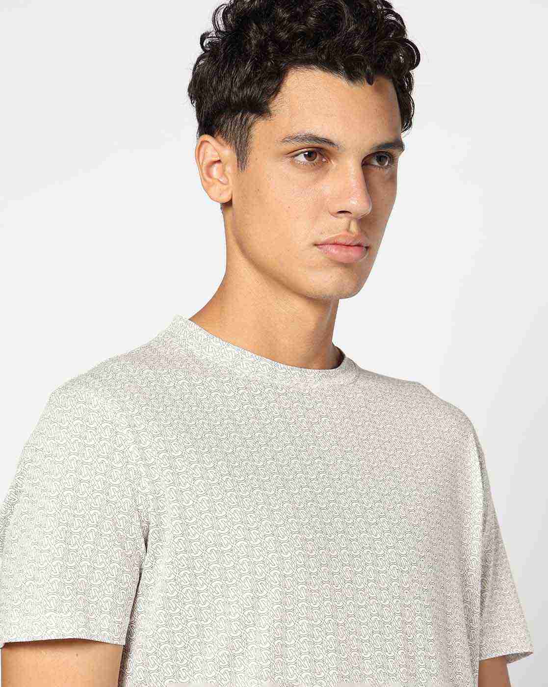 Make a statement with this cotton jersey piece from Armani Classics. Featuring an allover printed logo design, it offers a bold yet refined look. Lightweight and comfortable, it’s the perfect blend of signature style and everyday wearability.