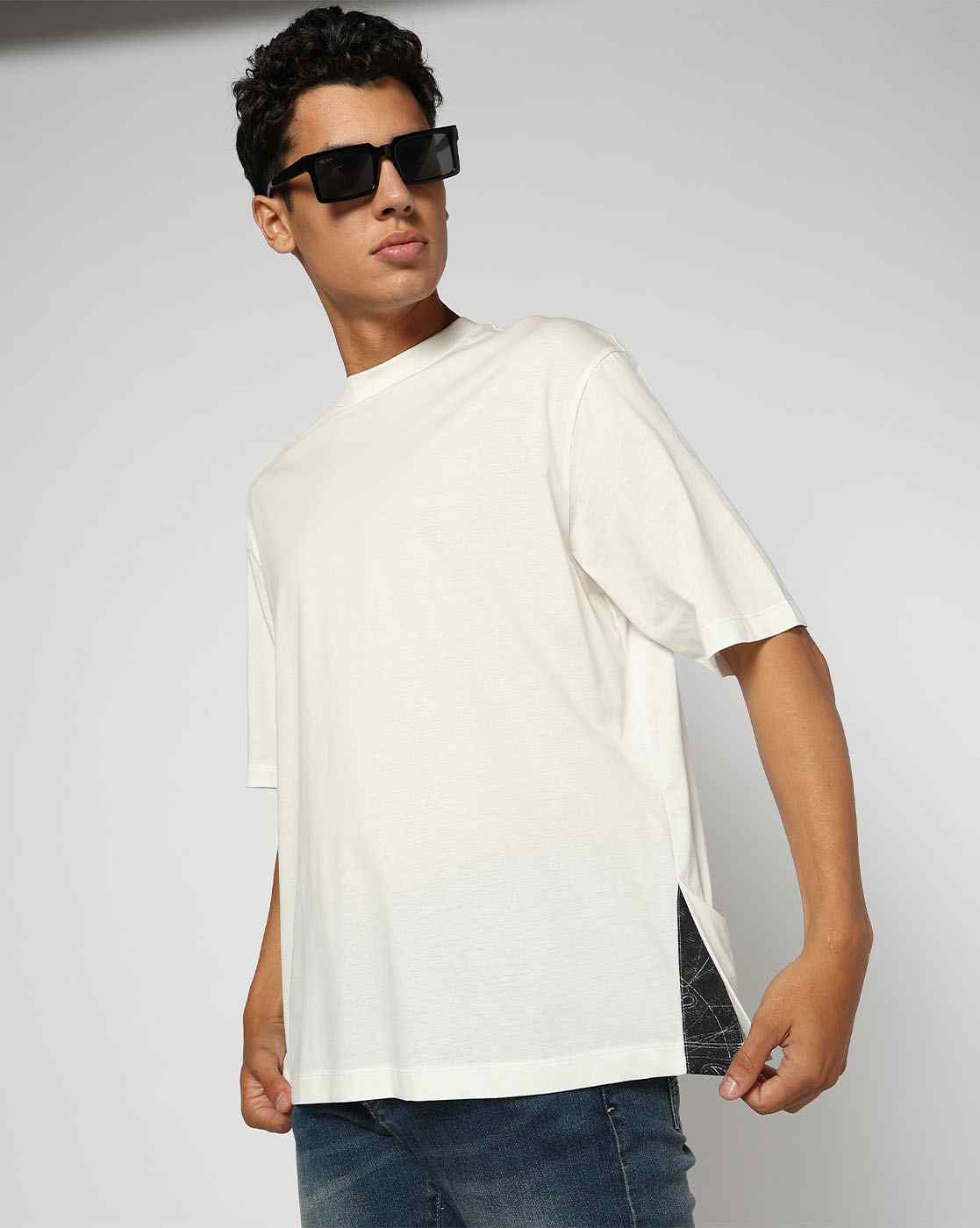 - mercerized cotton jersey, dropped shoulders, slits on hem