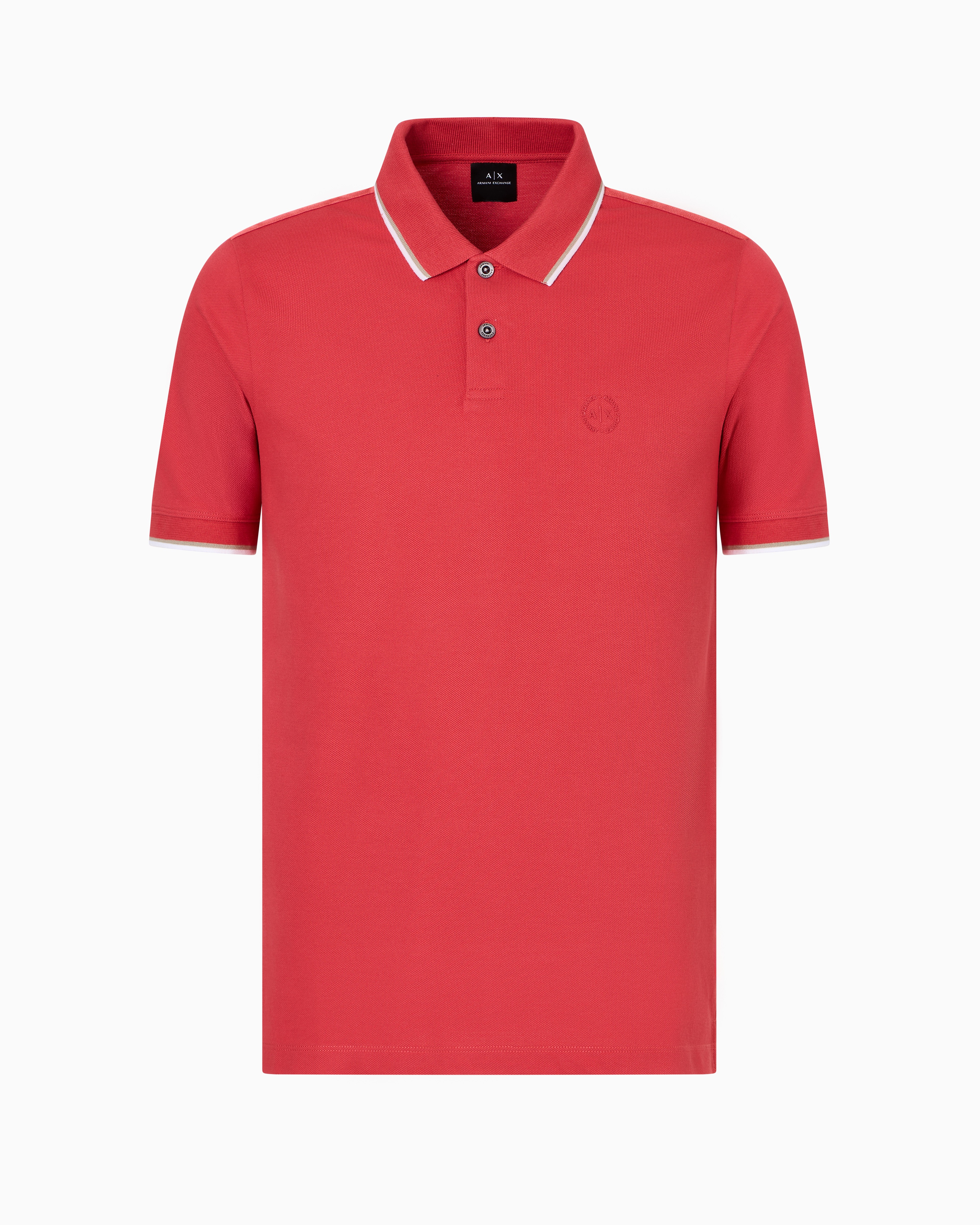 Refine your casual style with the A|X Essentials Polo, crafted from breathable cotton pique. Featuring contrast color piping on the collar and sleeves, this polo adds a subtle yet striking touch to your everyday look