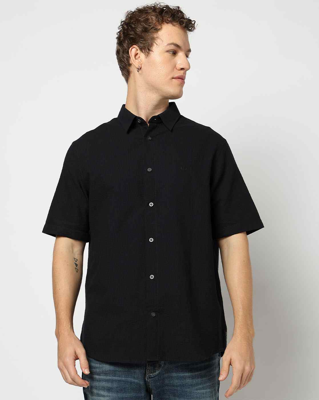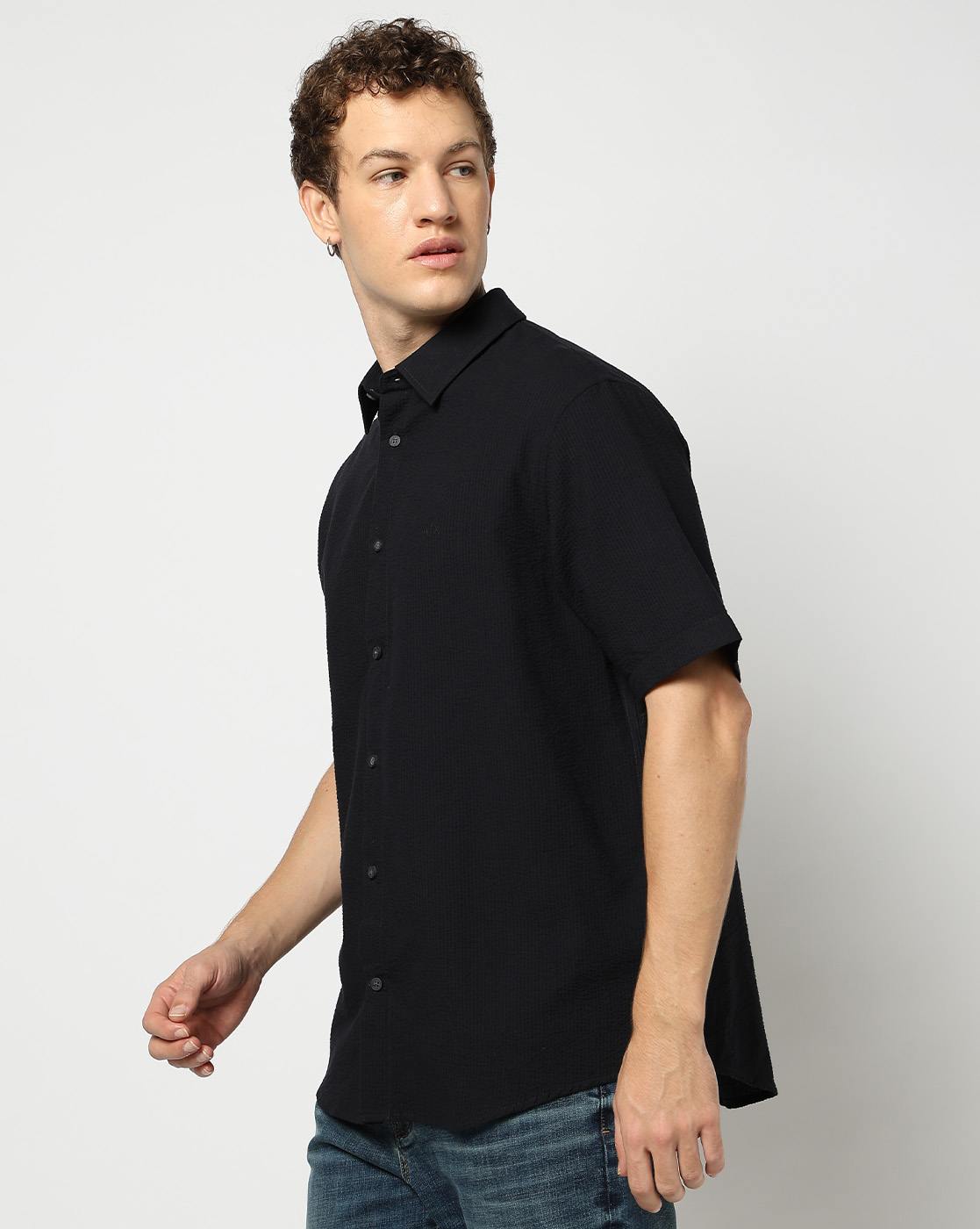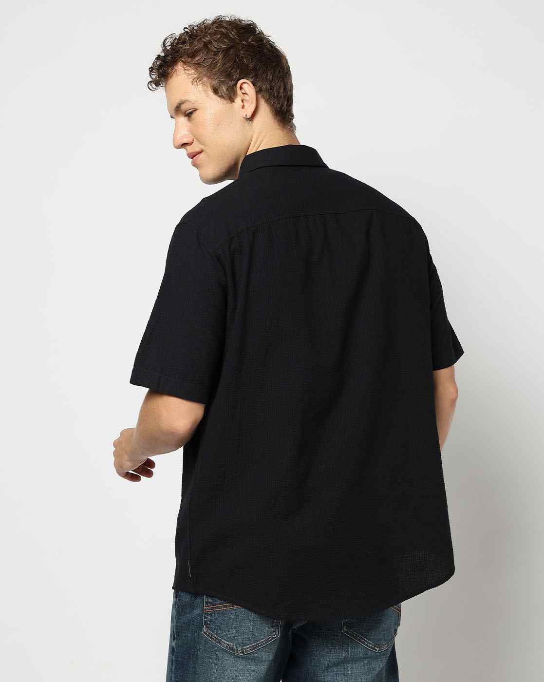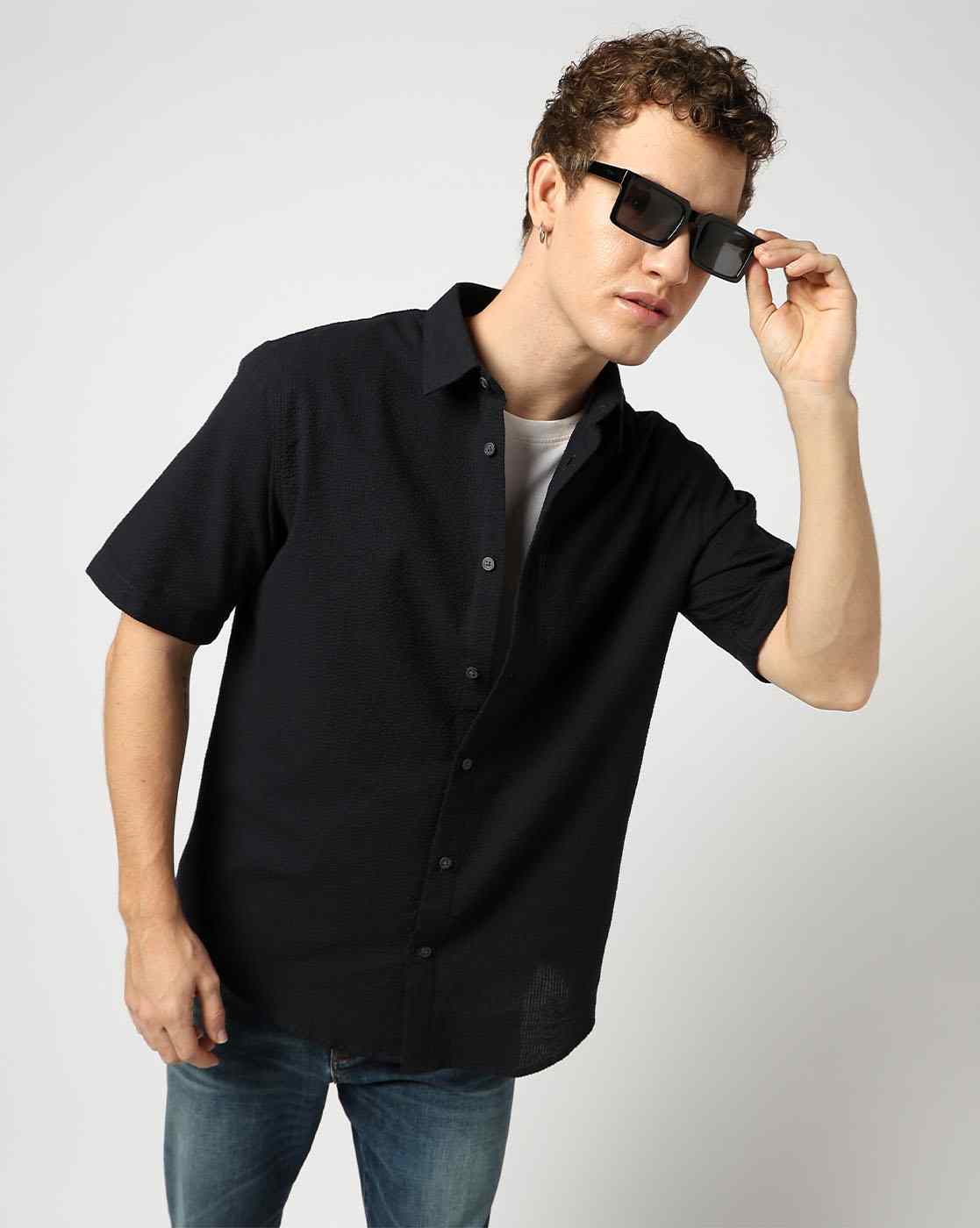 Men's Half Sleeves Geometrical Seersucker Shirt
