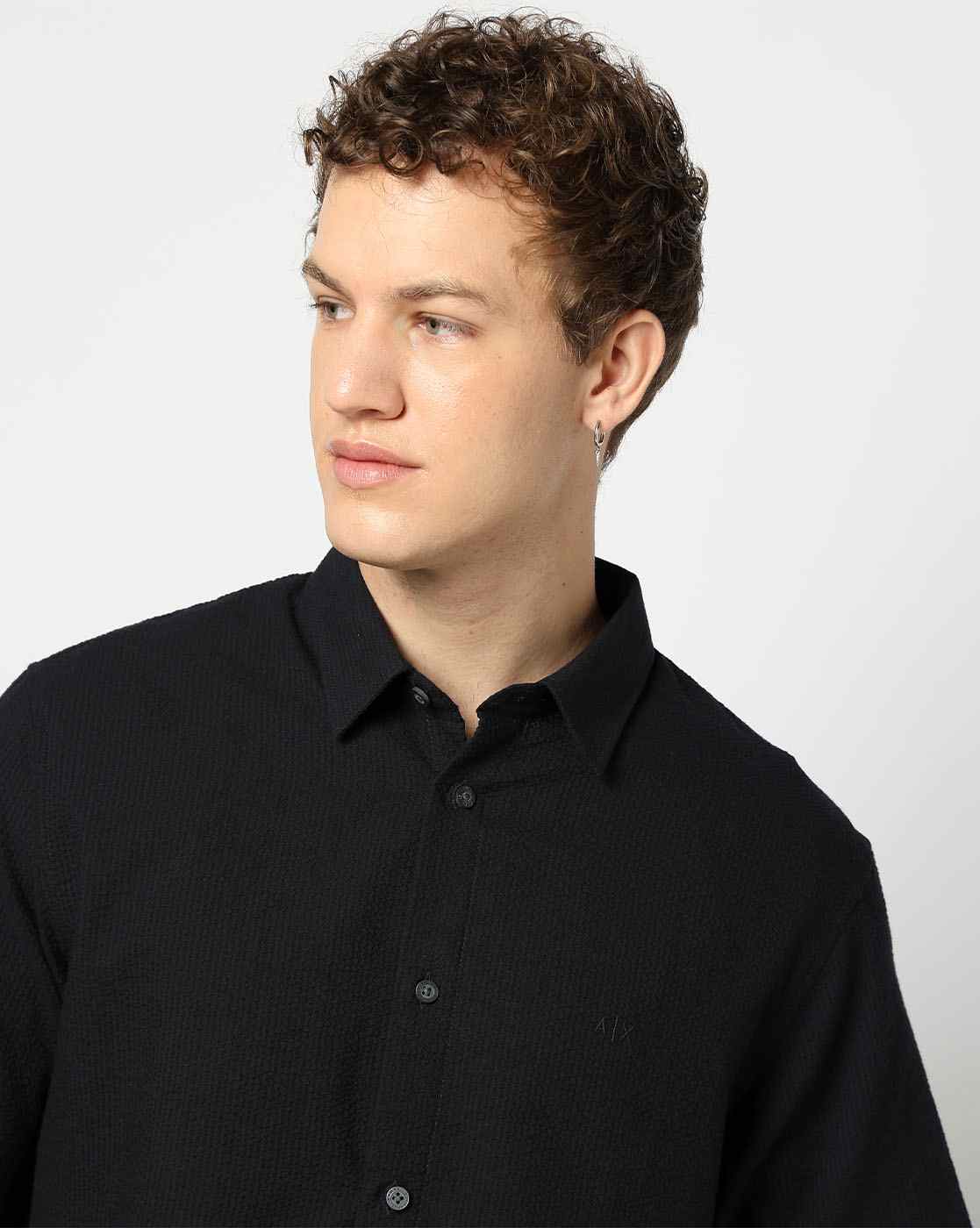 - Yarn dyed cotton seersucker, embroidered logo on chest