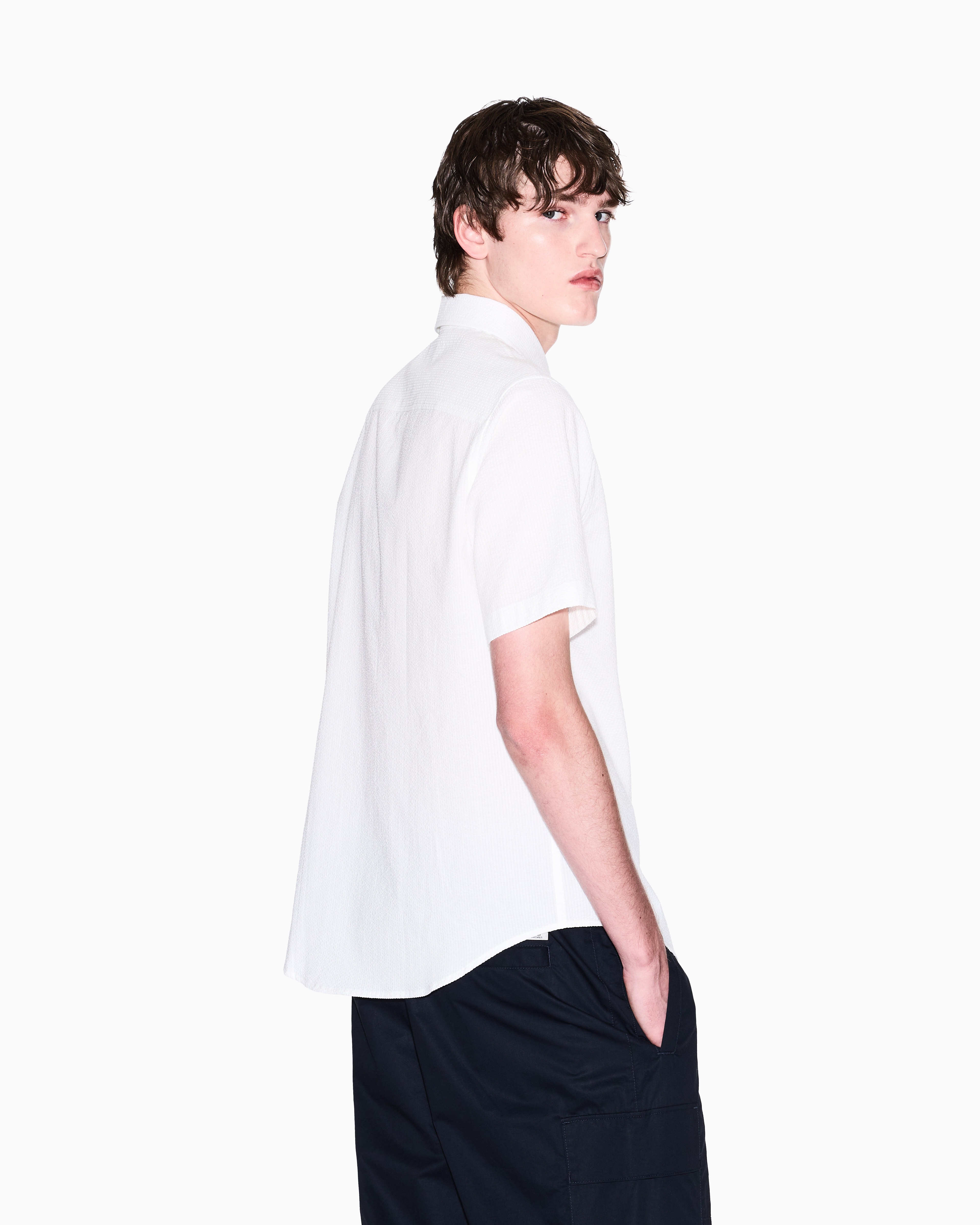 Elevate your wardrobe with this yarn-dyed cotton seersucker shirt from the Geometrical Seersucker collection. Its textured design ensures a breathable, breezy feel—perfect for warm-weather occasions. Finished with a subtle embroidered logo on the chest, it delivers both contemporary flair and everyday comfort