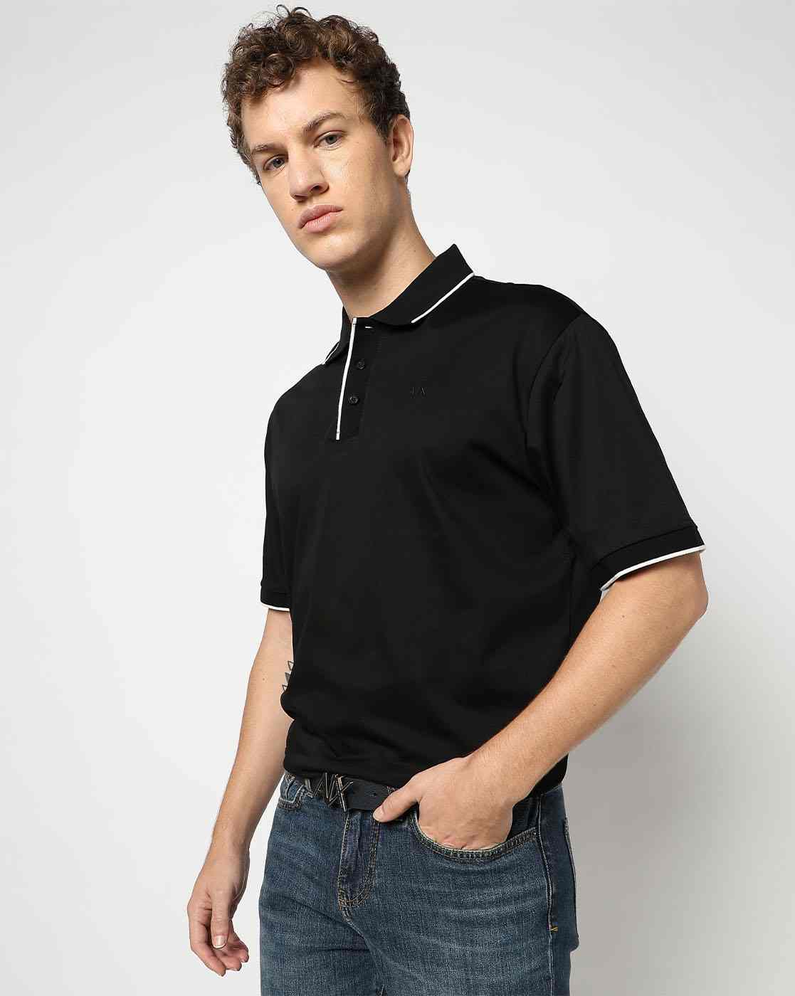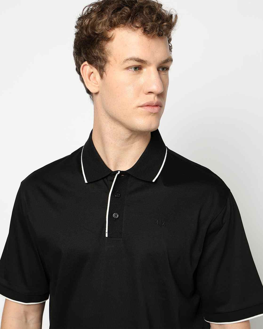 Immerse yourself in style with the A|X Lost in Sounds Polo, crafted from mercerized cotton for a smooth, luxurious feel. Contrasting color details on the sleeves and collar create a striking accent, while the embroidered logo on the chest completes this elevated wardrobe essential.
