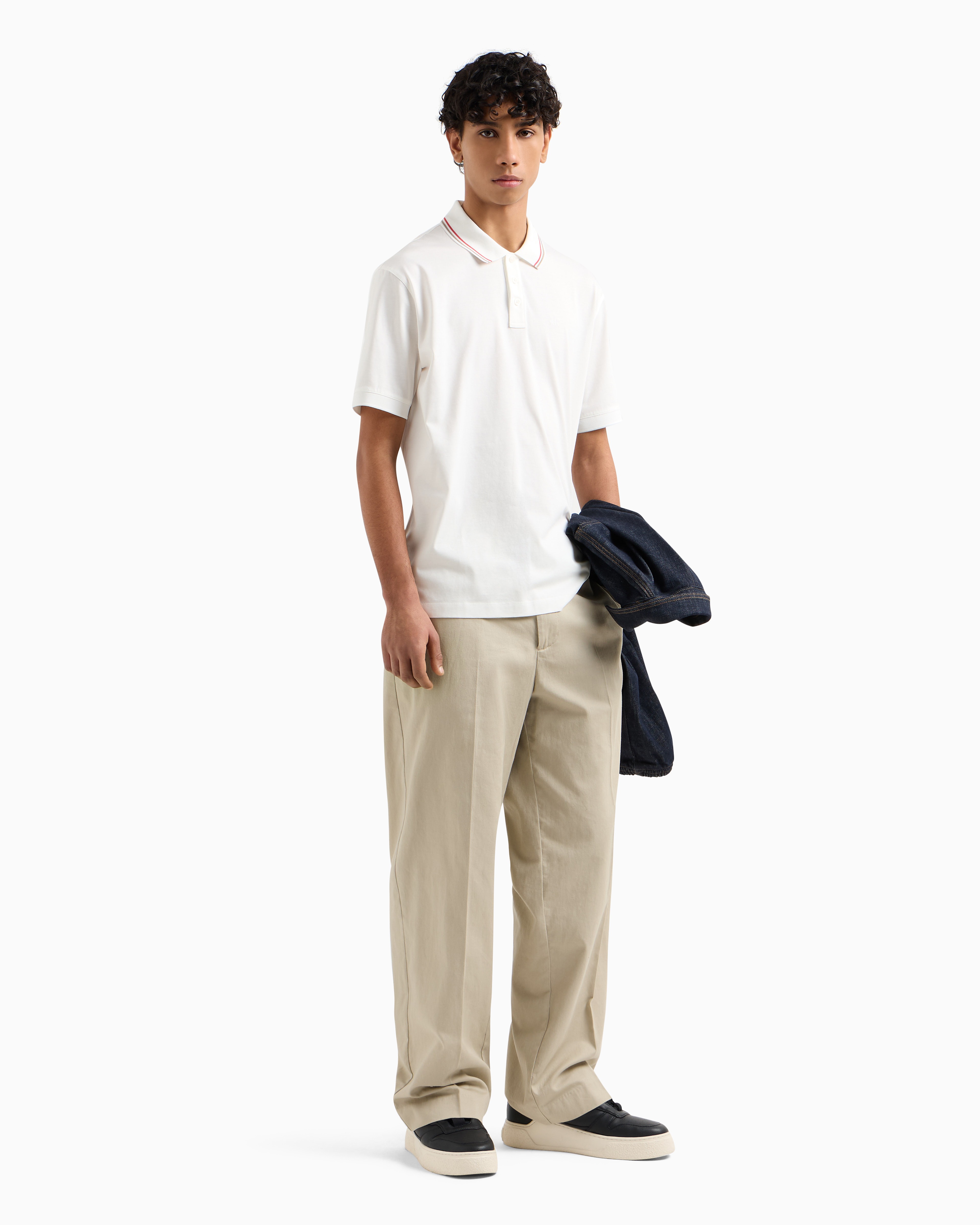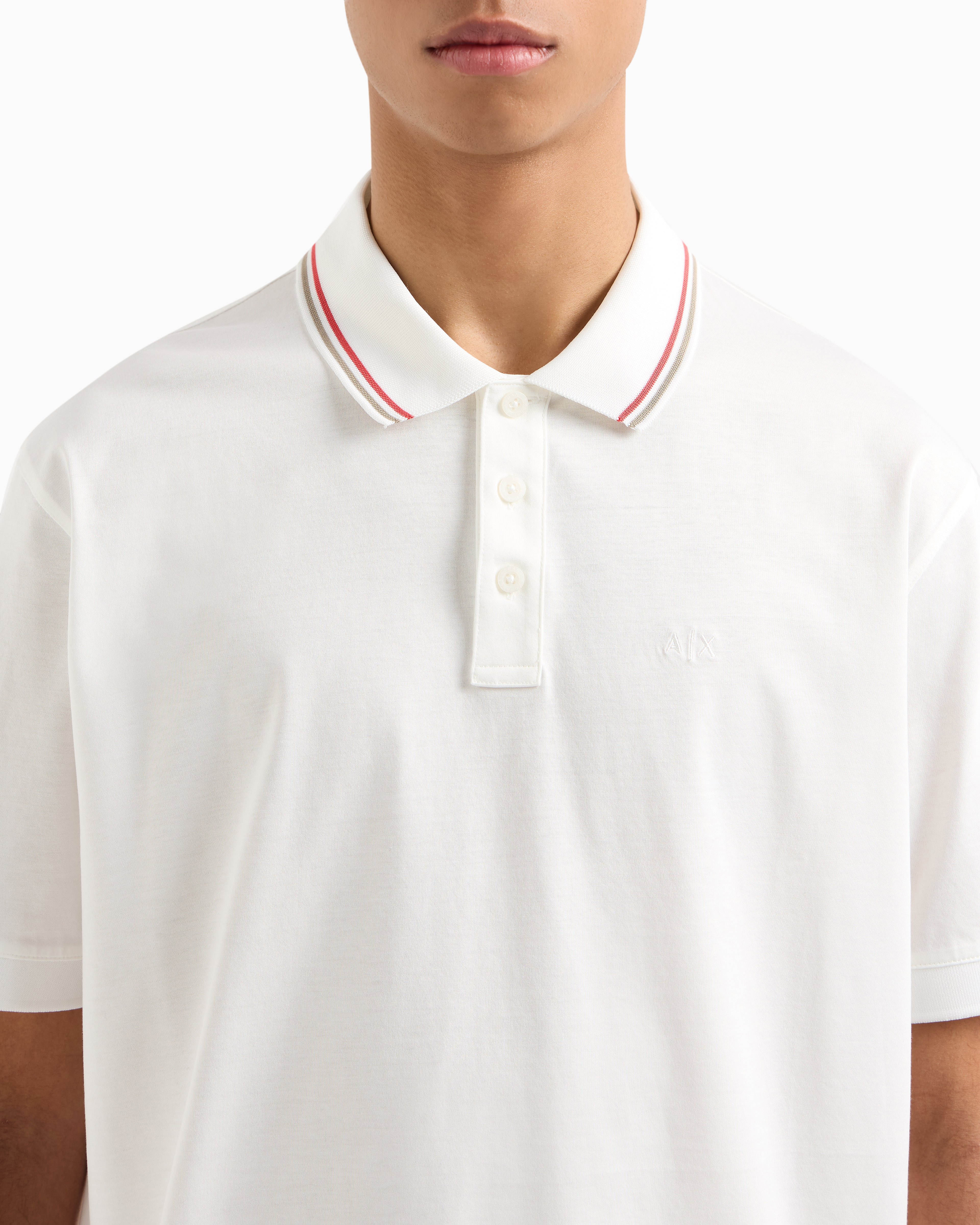 Experience understated elegance with the A|X Refined Sportswear Polo. Made from mercerized cotton jersey jacquard, it features an embroidered logo, blending premium craftsmanship with modern style.