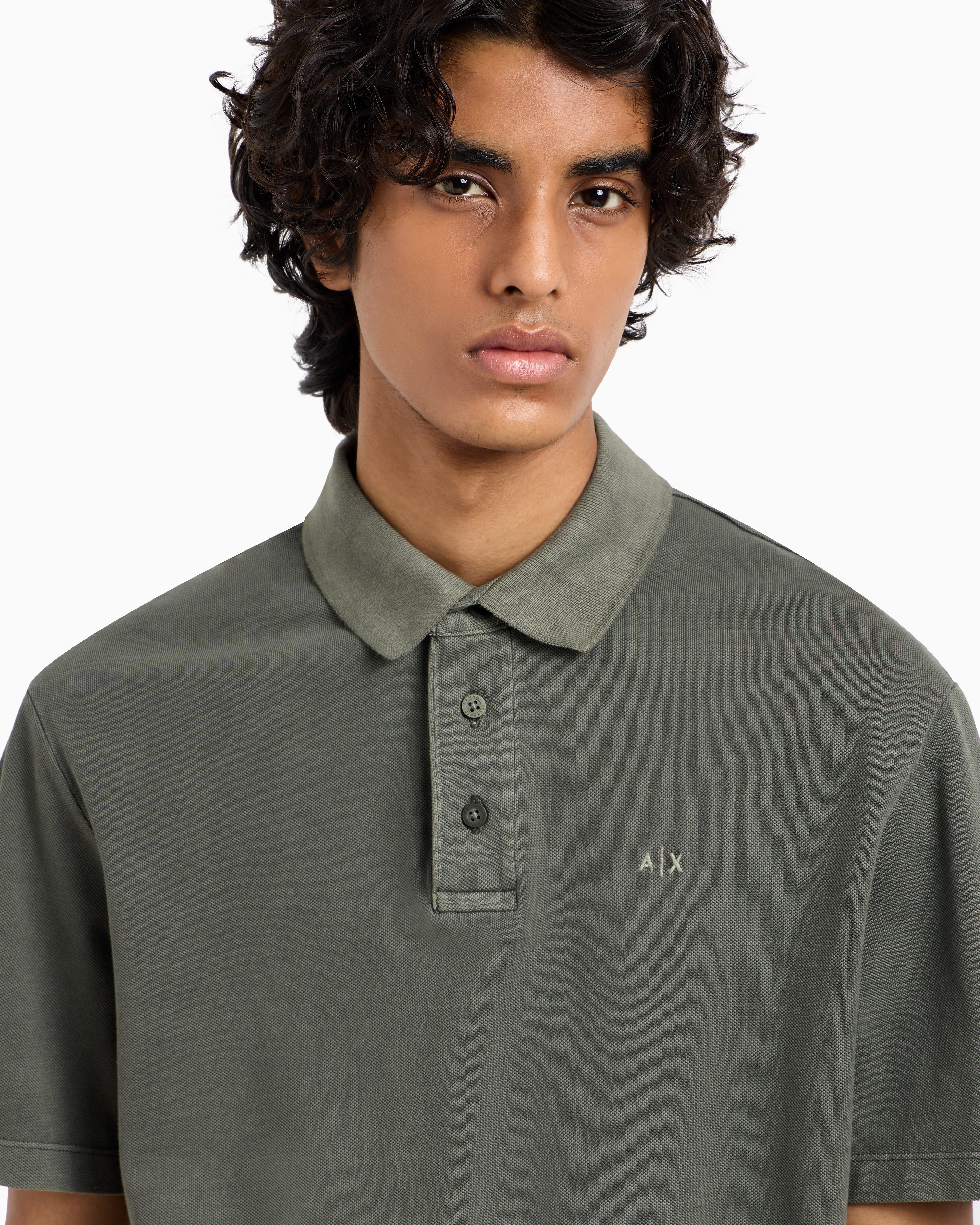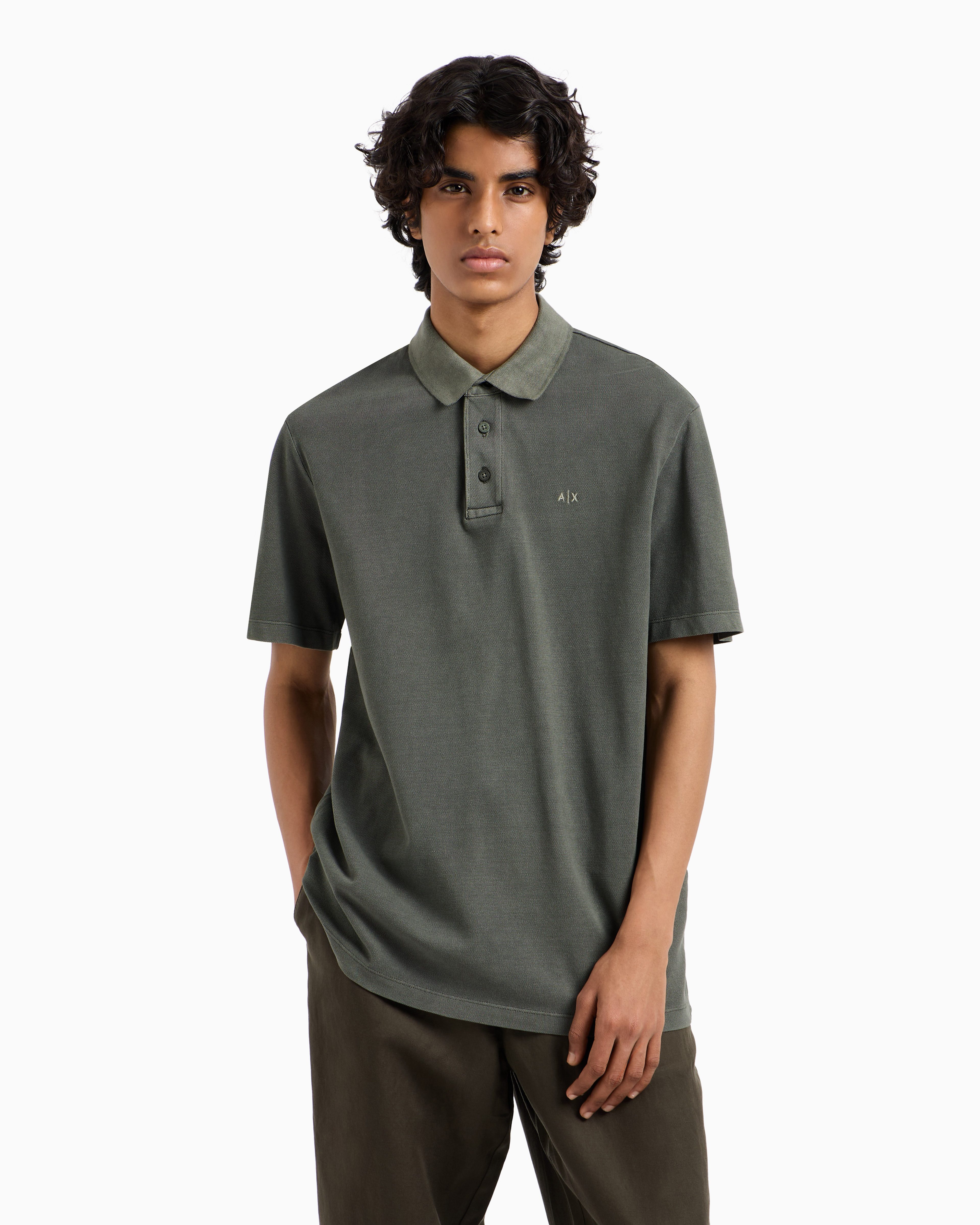 Elevate your casual look with the A|X Refined Sportswear Polo, made from garment-dyed cotton piqué. Featuring an embroidered logo on the chest, this polo effortlessly blends sporty appeal with refined style.