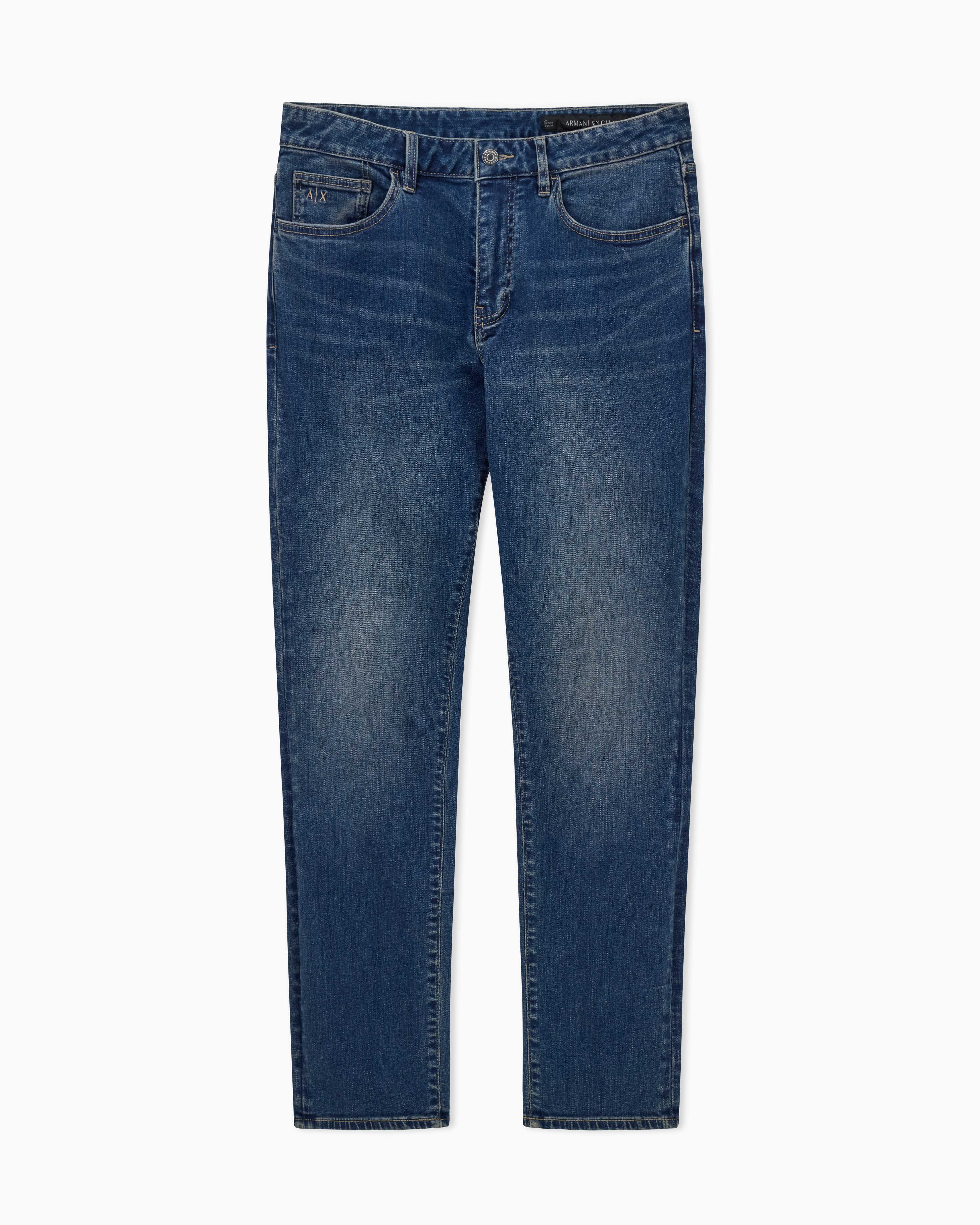 Experience timeless style with A|X Comfort Cotton Denim Jeans. Designed for everyday ease, they feature a sleek leather patch on the back for a signature touch. A perfect blend of comfort and sophistication for the modern wardrobe.