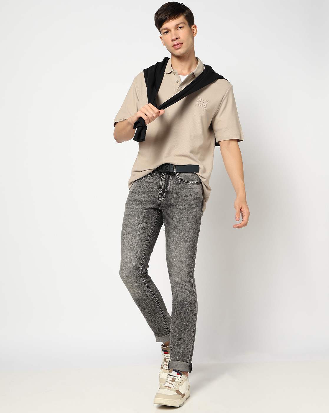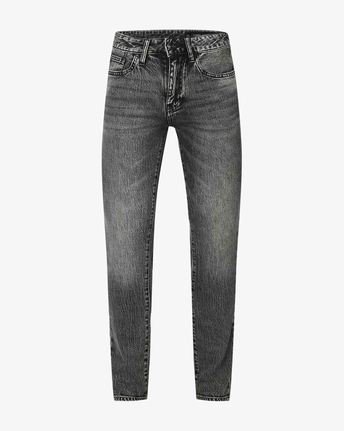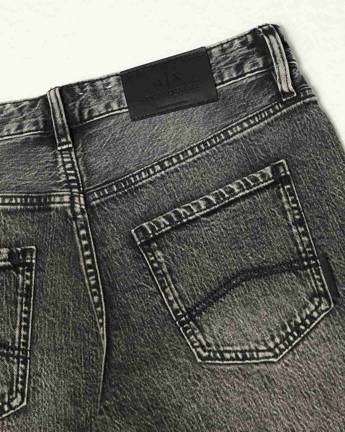 Stand out with A|X Non-Stretch Cotton Denim, featuring a scraped effect, random bleach detailing, and a bold marbling effect. Heavy whiskers on the top block add depth, while shiny black trims and a black leather patch on the back complete the edgy, contemporary look