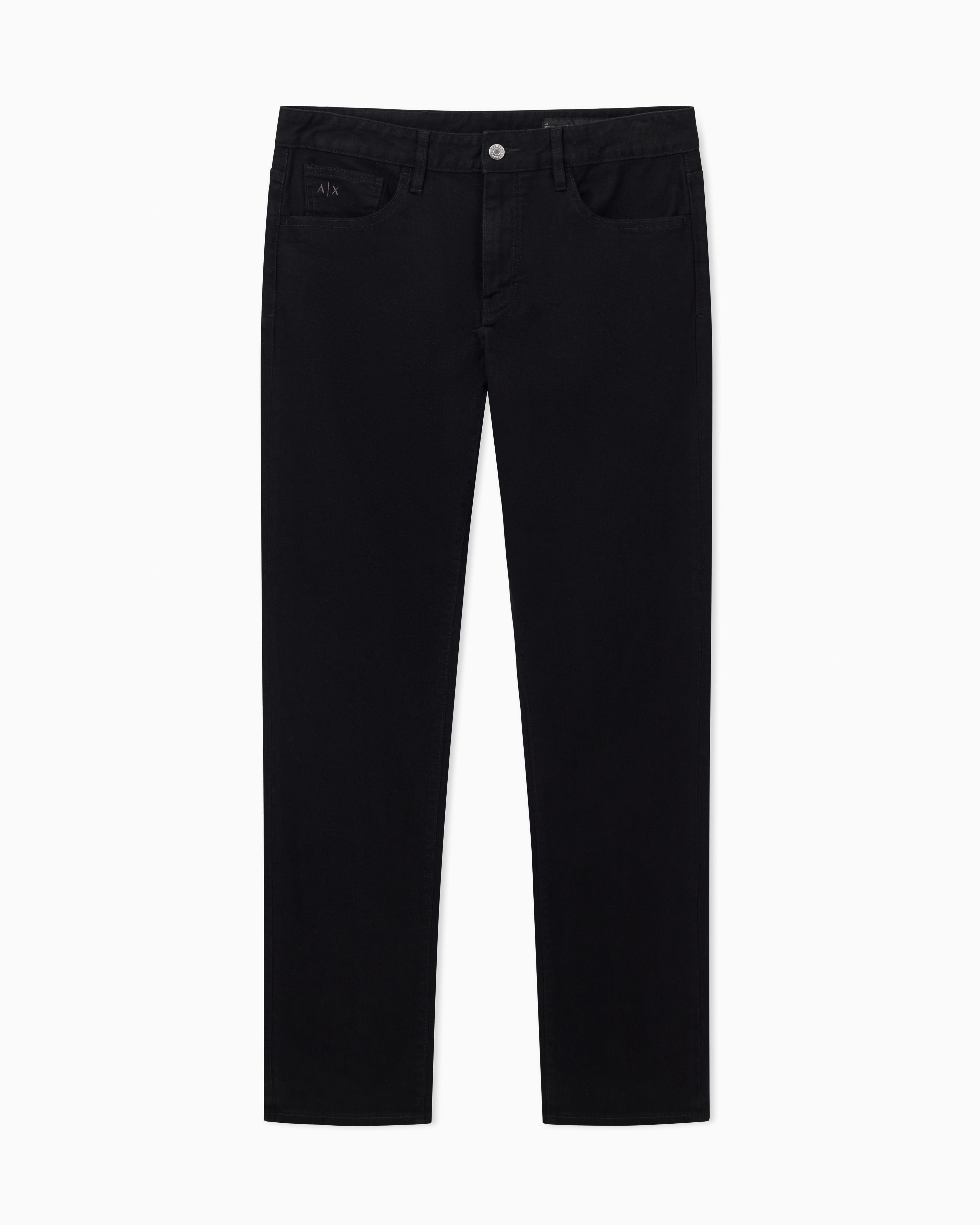 Experience durability with style in A|X Stretch Cotton Bull Denim. Crafted for comfort and resilience, these jeans feature a sleek leather patch on the back, adding a refined touch to their versatile design.