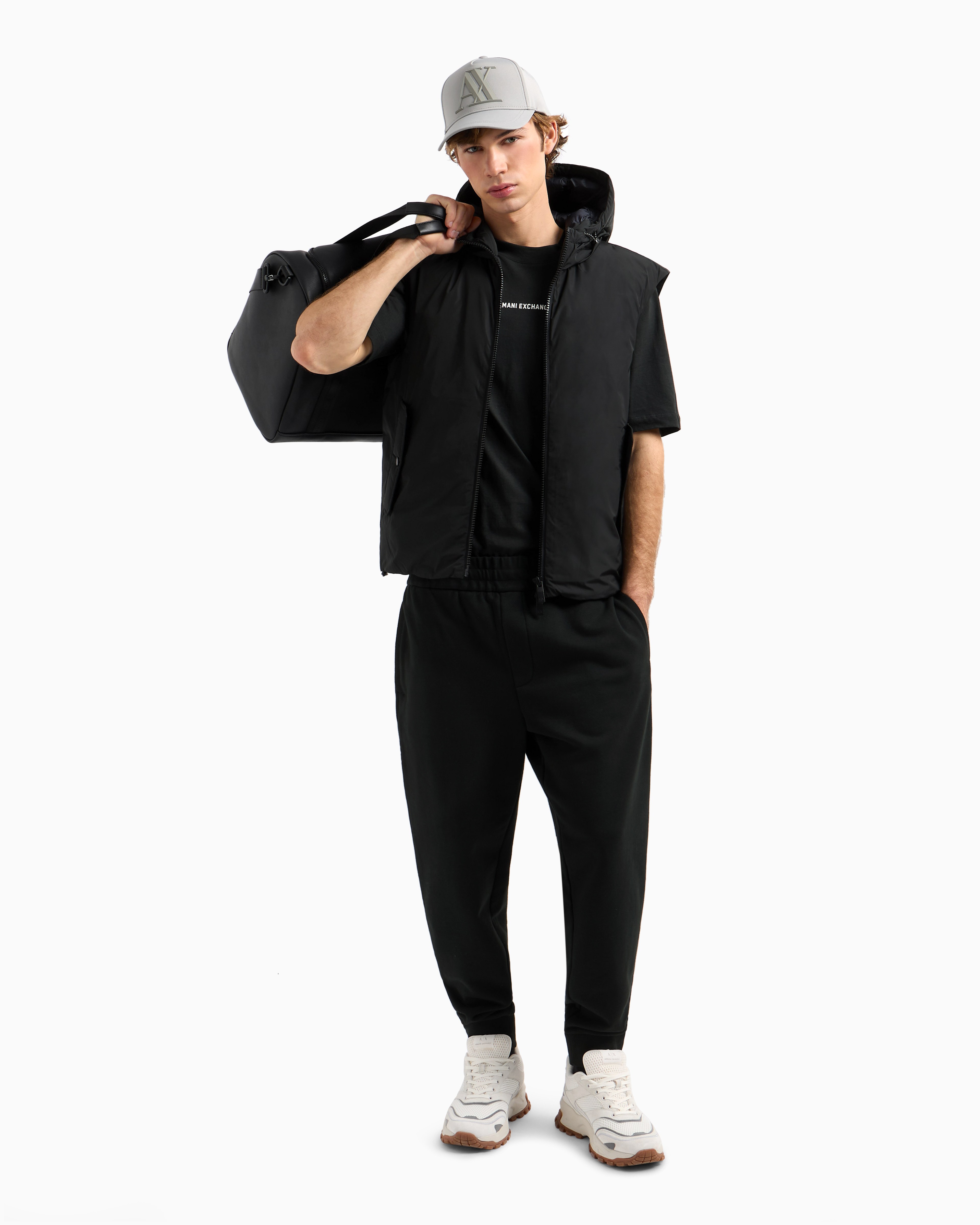 - Joggers, carbonized cotton french terry, Elastic waistband with drawstrings, welt and patch pockets, silicon AX Logo patch on back