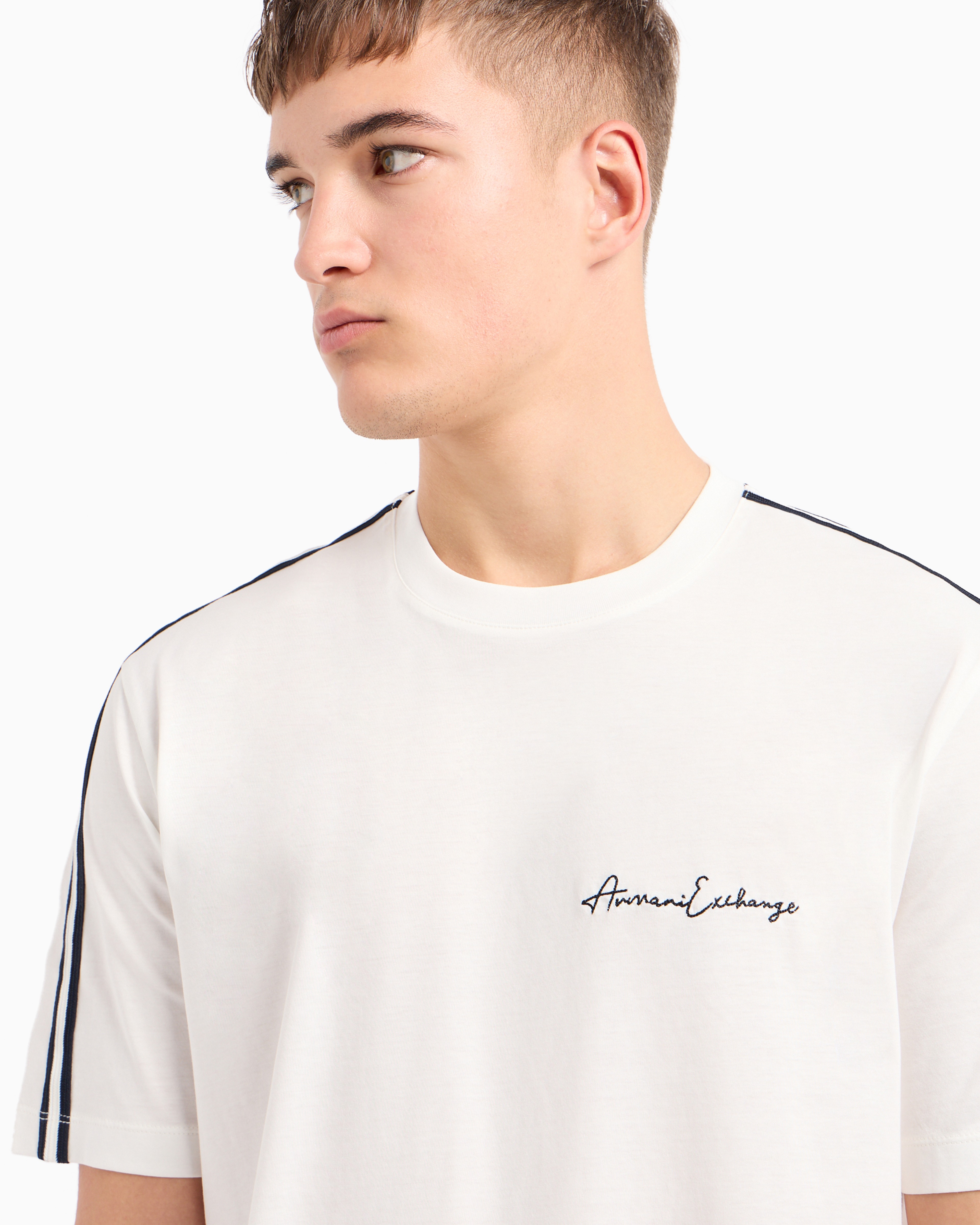 - Contrast piping on tee, signature embroidered logo on chest