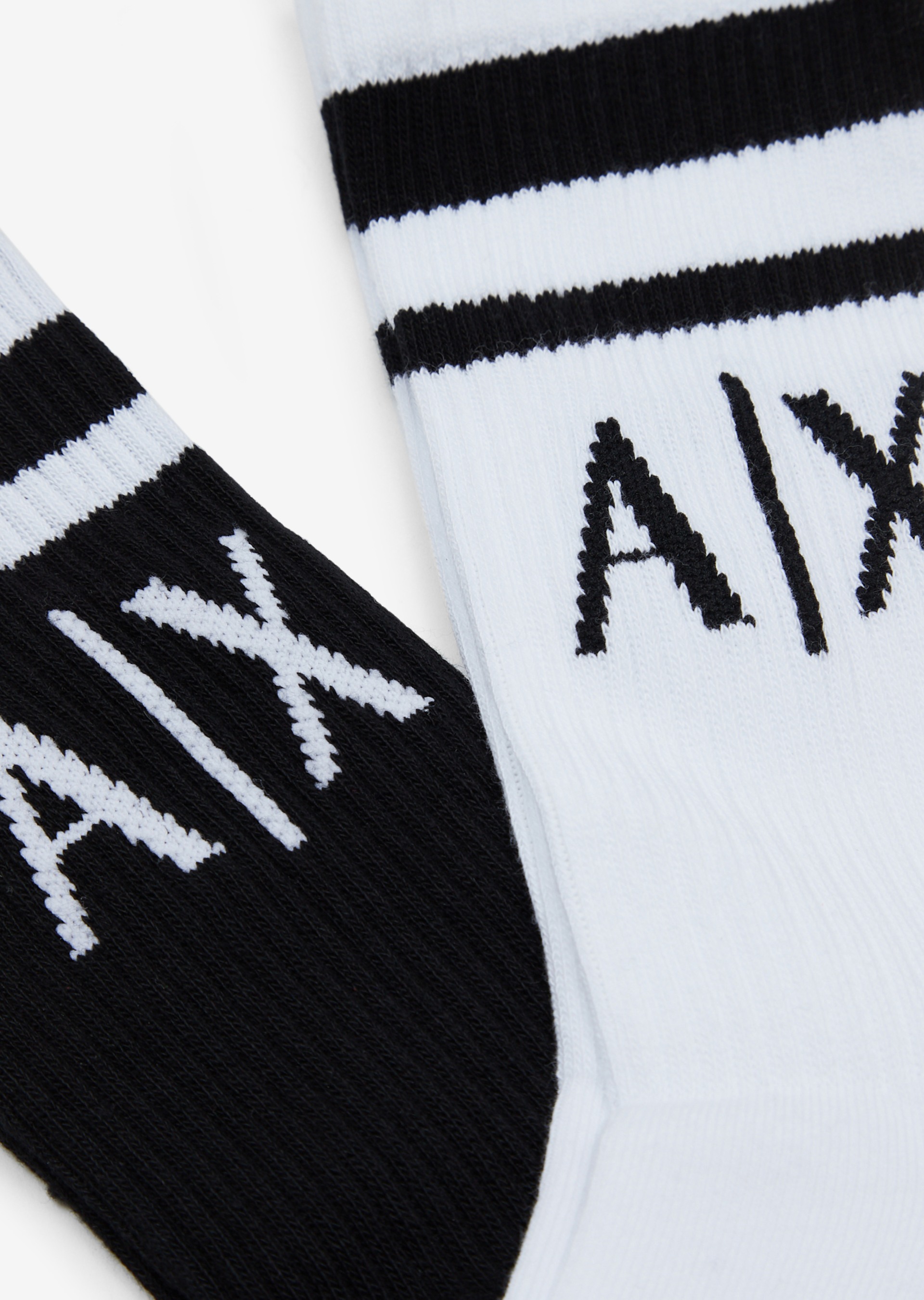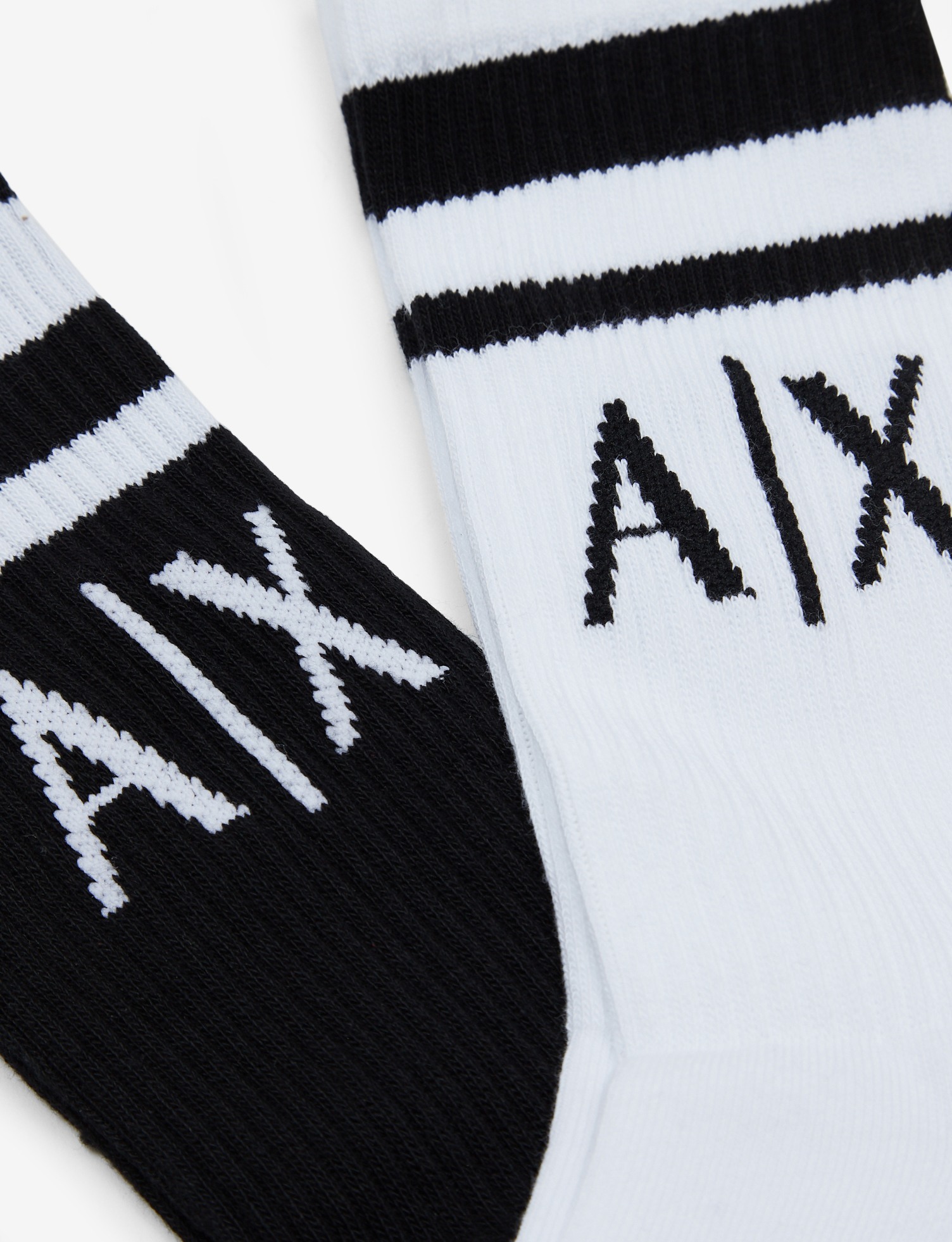 Pack of 2 - Black & White Ribbed Socks with Logo
