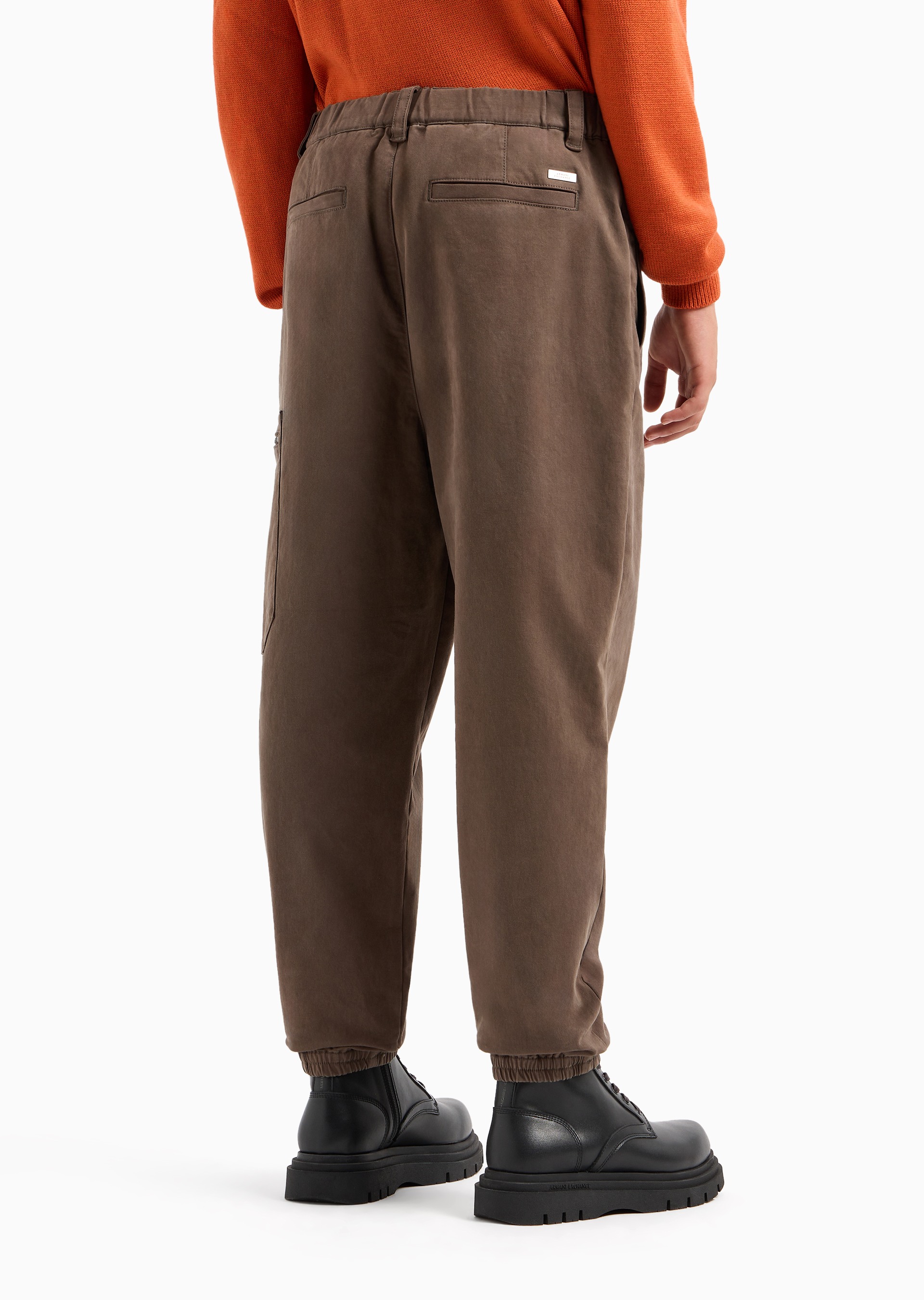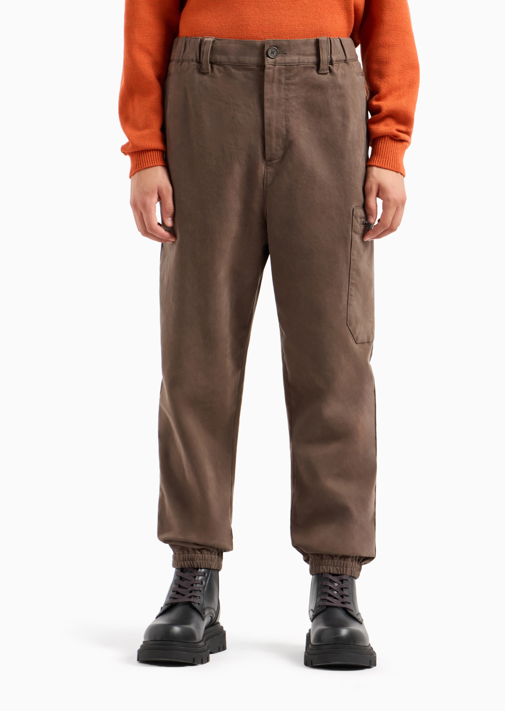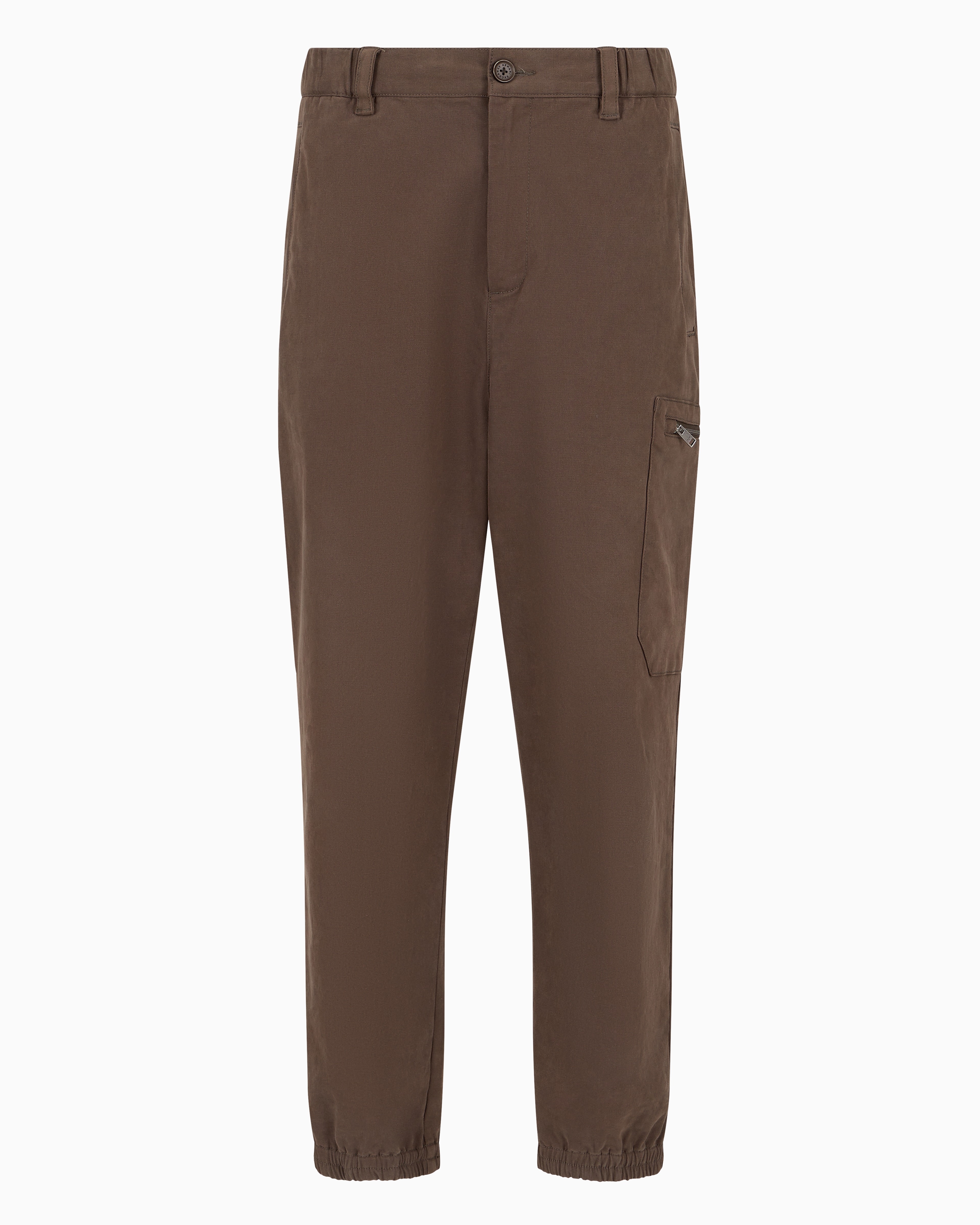 - Chino Cargo Jogger Pants, Stretch Poly Dobby with Drawstrings and Zip, Cuffed, Metal Logo Plate on Back
