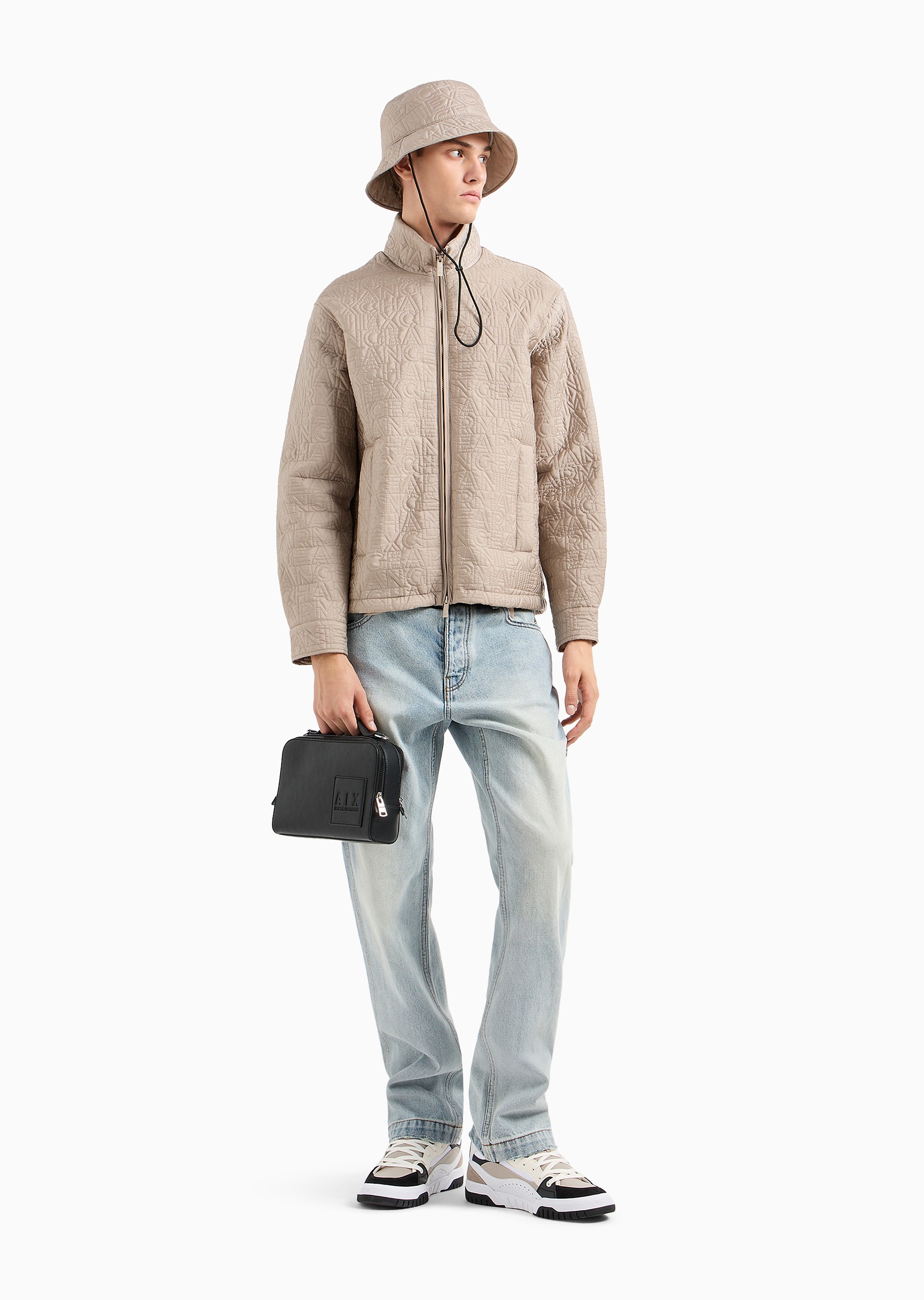 - Recycled Nylon, Allover Quilted Logo, Zipped Welt Pockets, Coulisse on Hem