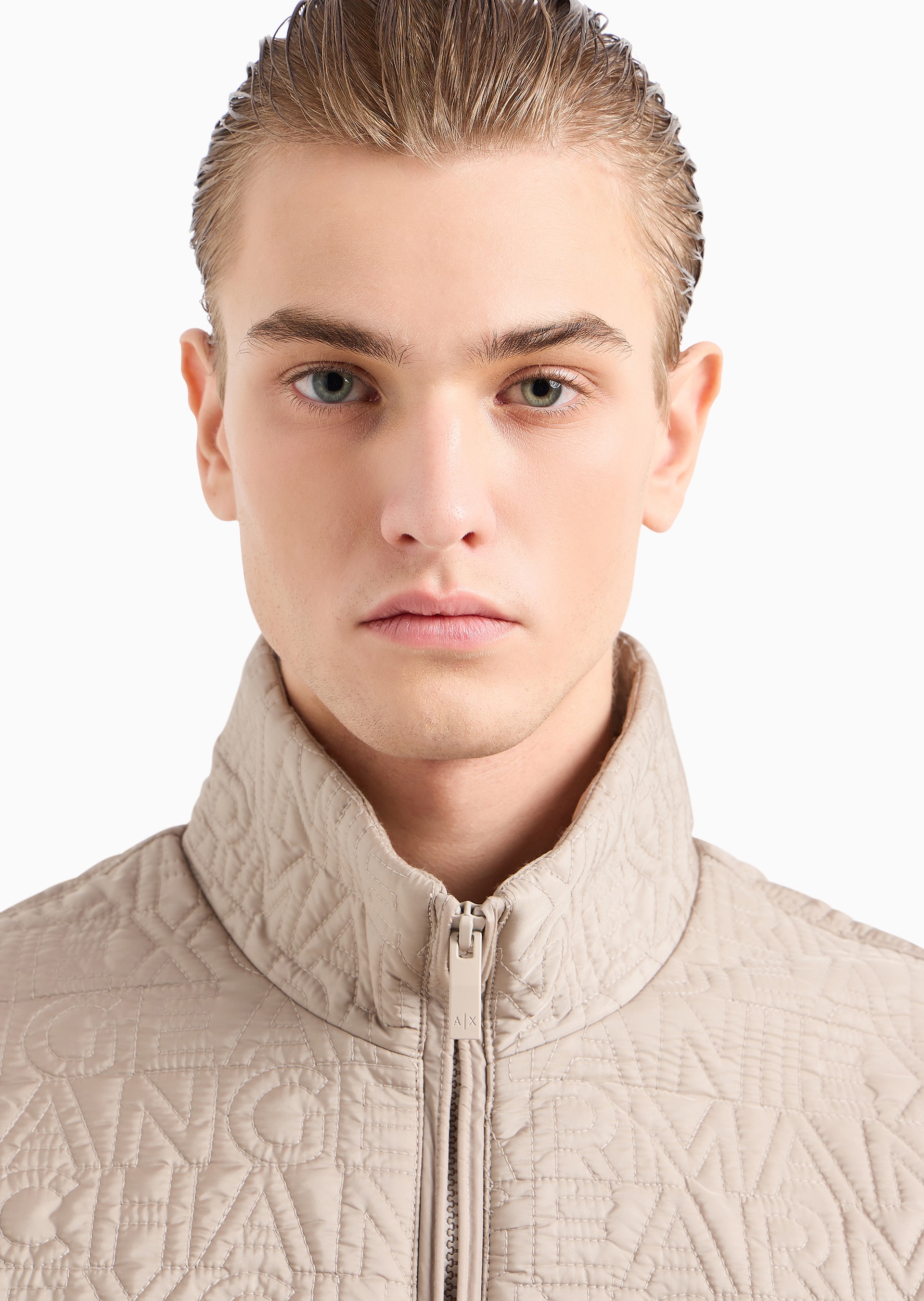 Stay warm and stylish with this jacket from the Quilted Logo Collection. Made from recycled nylon, it features an allover quilted logo design, zipped welt pockets, and a coulisse on the hem for a customizable fit, blending sustainability with modern design.